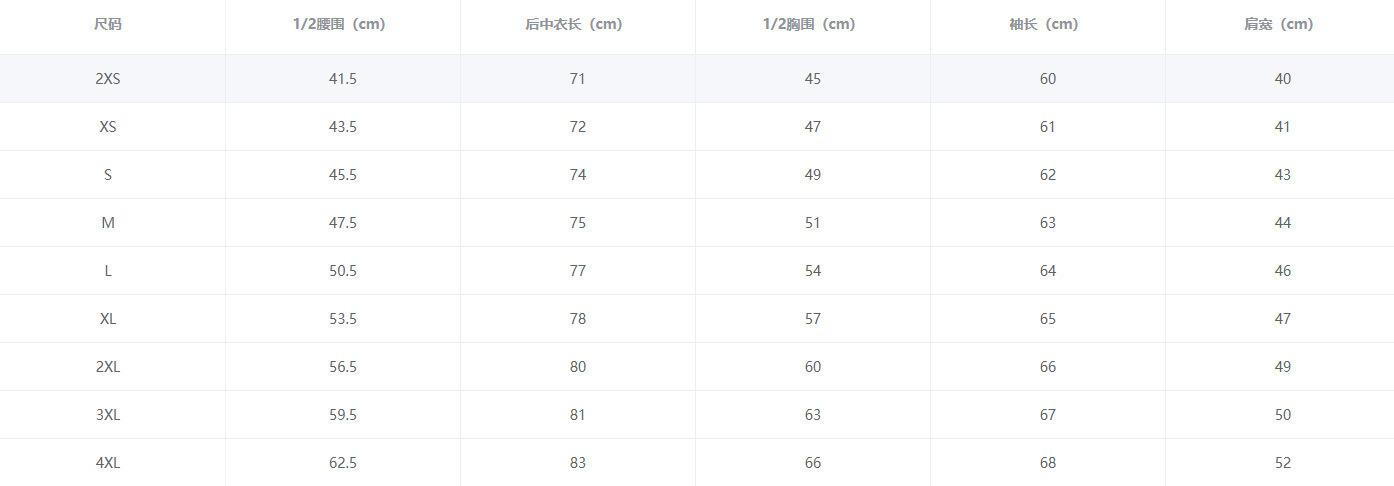 XXS, XS, S, M, L, XL, 2XL, 3XL, 4XL, 5XL