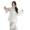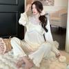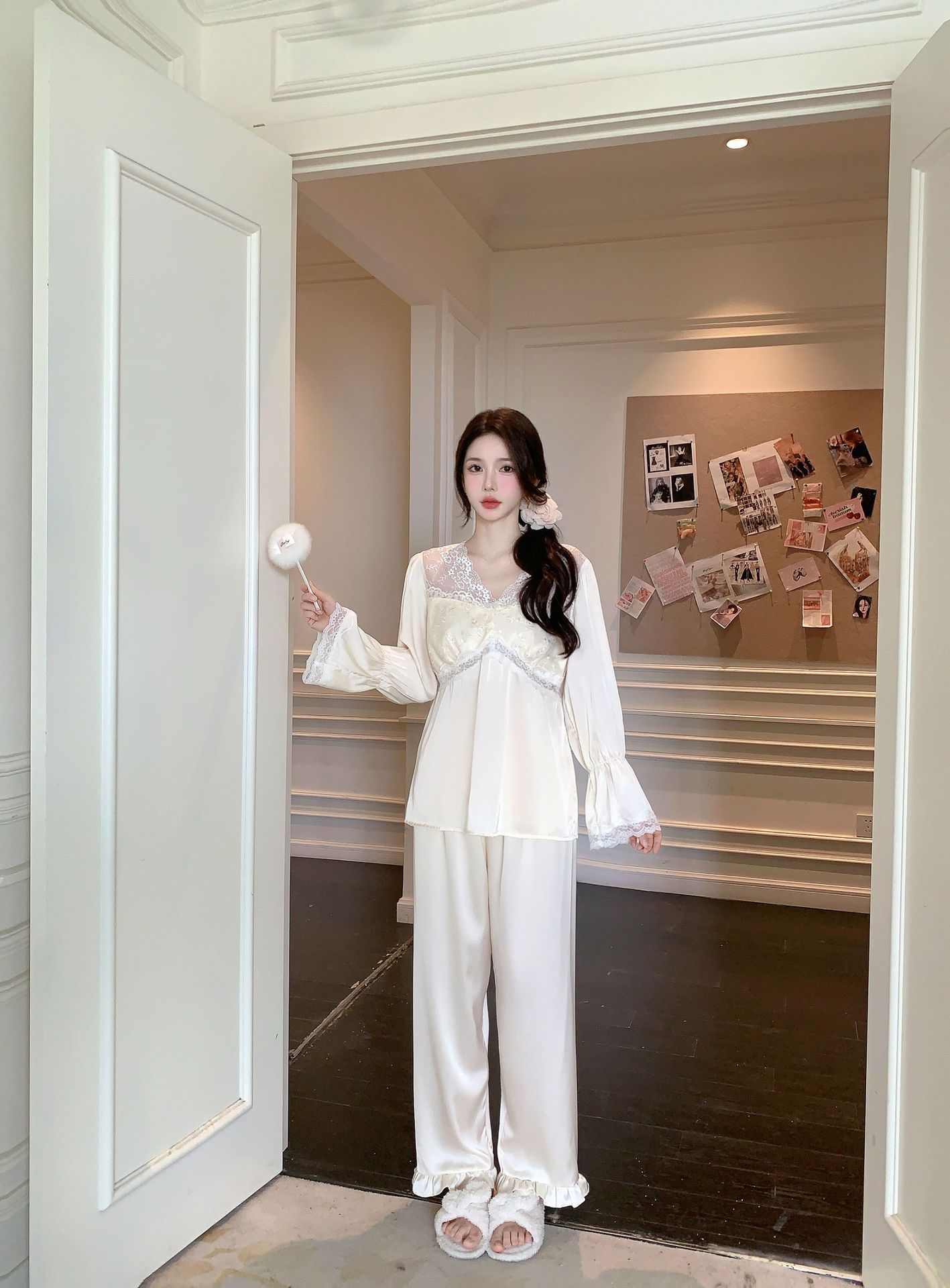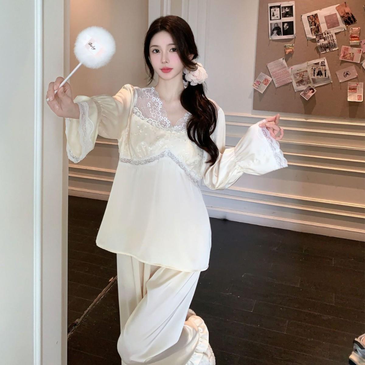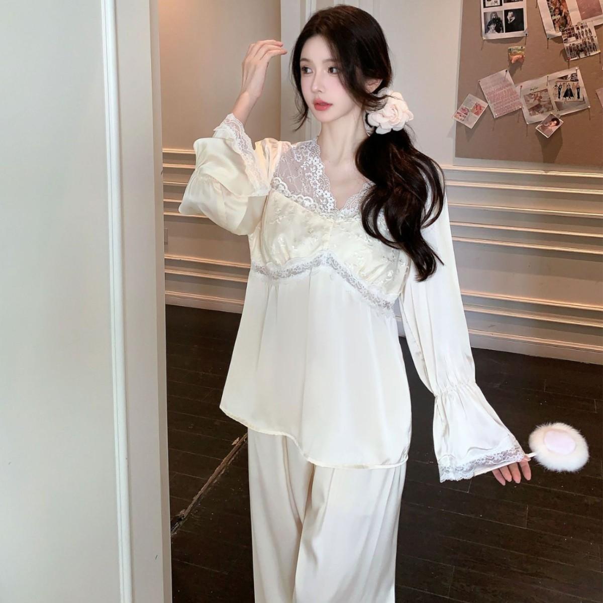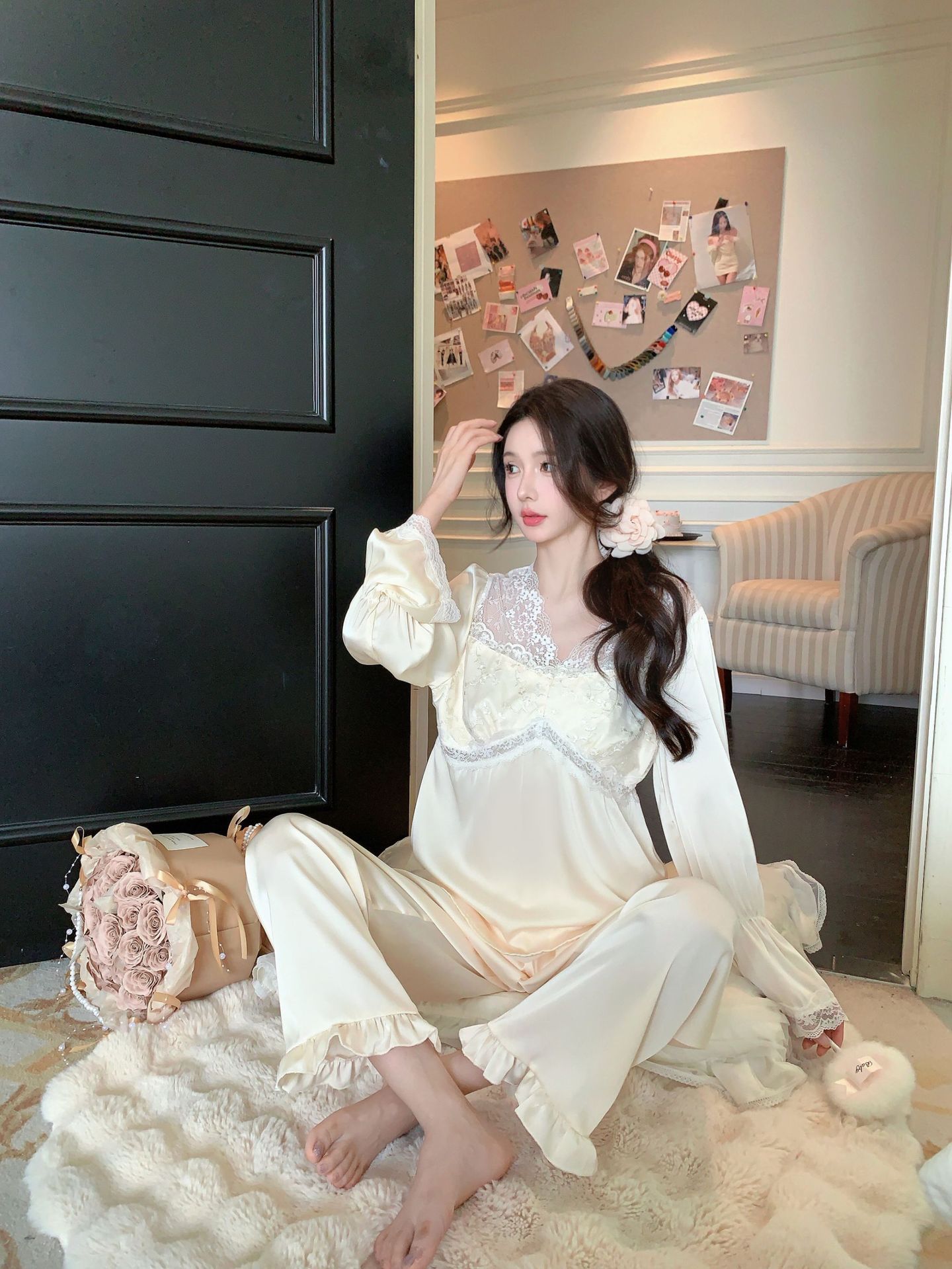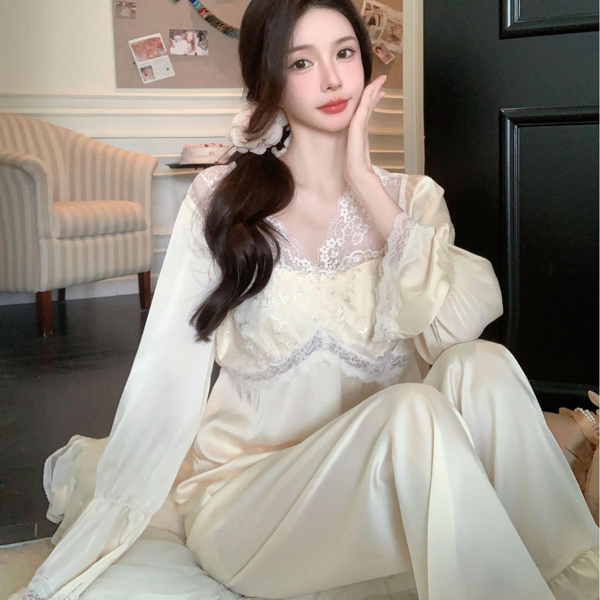 Pijamas de seda estilo palacio francés para niñas, primavera y verano, seda de hielo, manga larga, ropa de casa de alta gama para traje