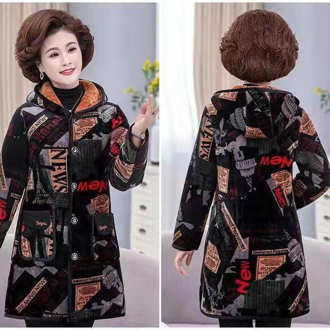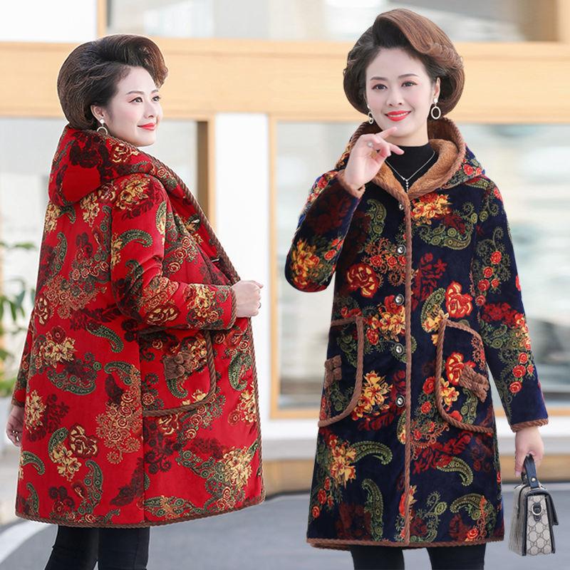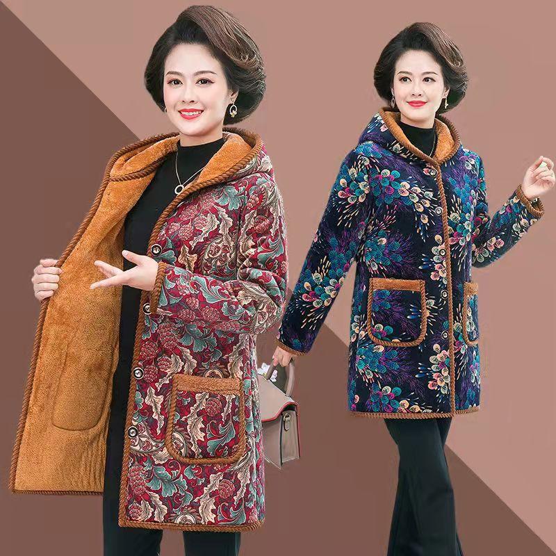 Invierno Nuevo Abrigo Grueso Acolchado de Algodón para Madre con Forro Polar Abrigo Acolchado de Algodón de Longitud Media para Mujeres de Mediana Edad y Ancianas Abrigo de Talla Grande Abrigo Acolchado de Algodón de Abuela