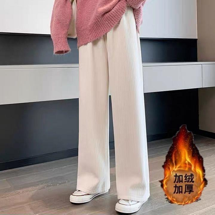 Otoño e Invierno nuevos pantalones de pierna ancha para chica gordita pantalones deportivos casuales de moda para mujer estilo coreano holgados adelgazantes drapeados pantalones largos para estudiantes