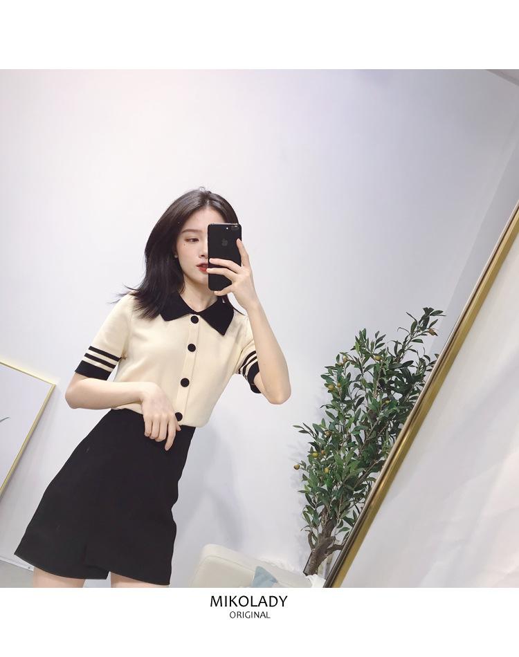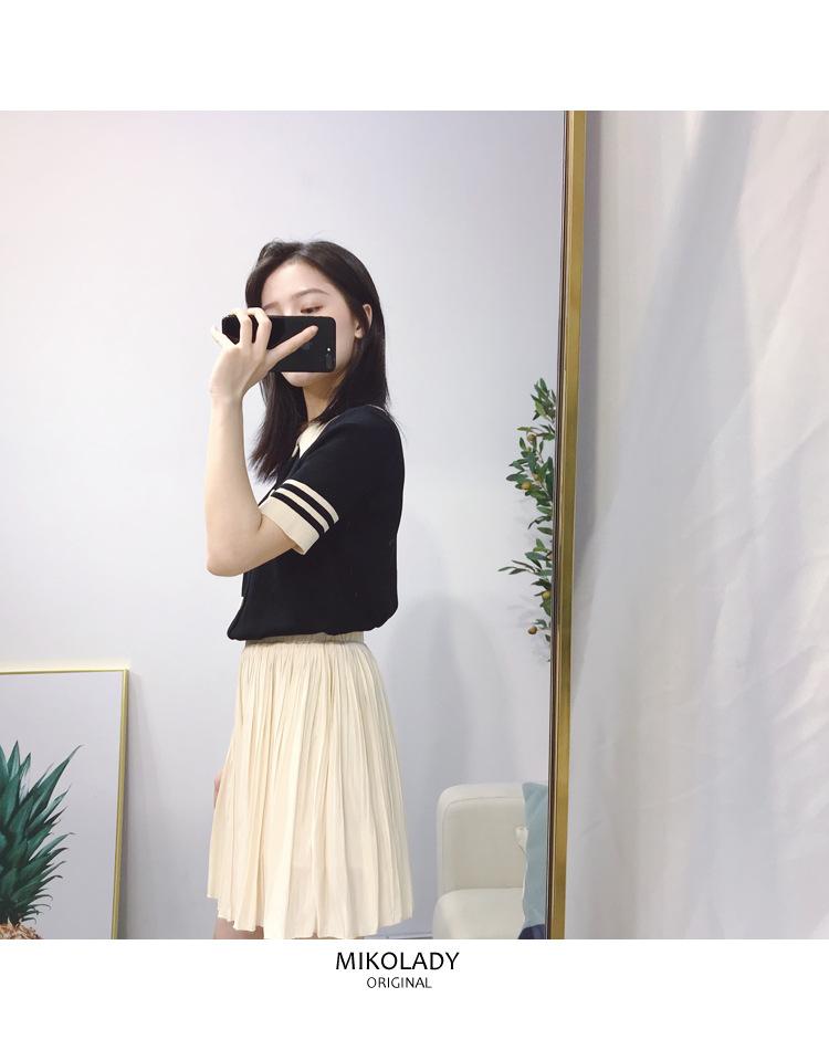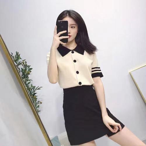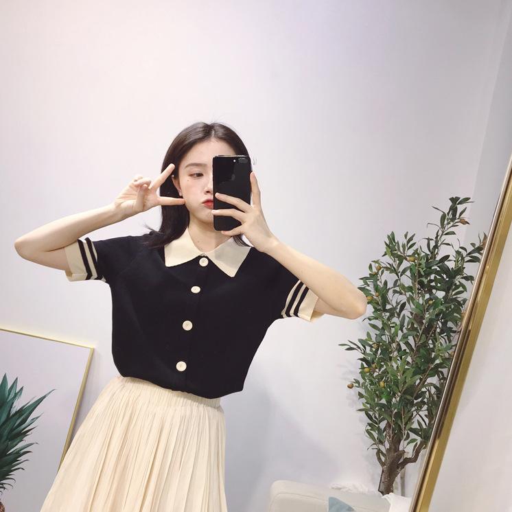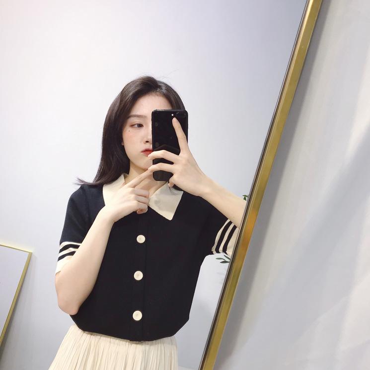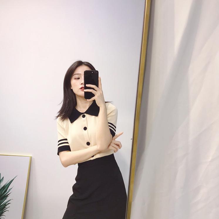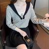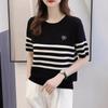 Suéter Delgado de Manga Corta Primavera y Verano 2024 Nuevo Diseño para Mujer Top Dulce a Rayas Jersey Camiseta Básica