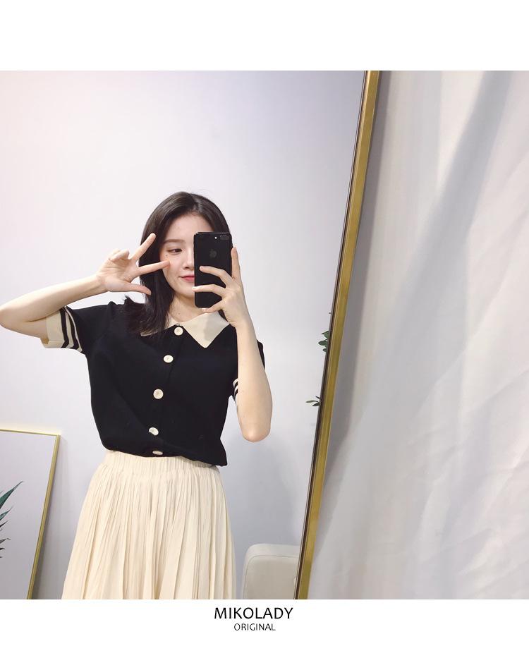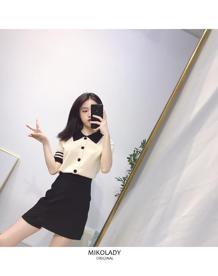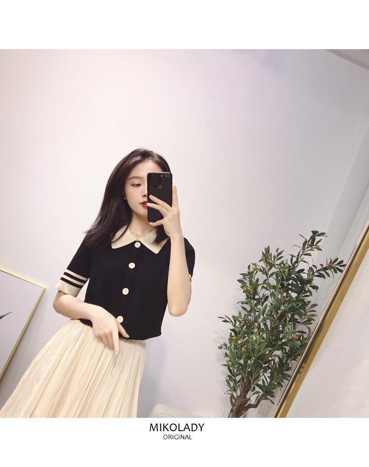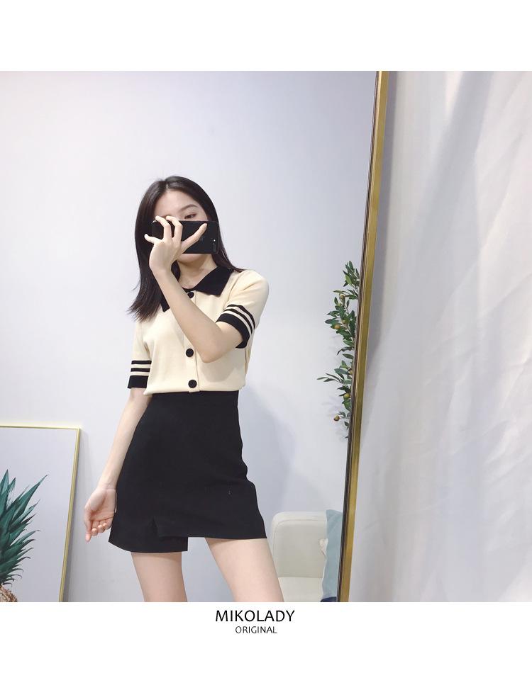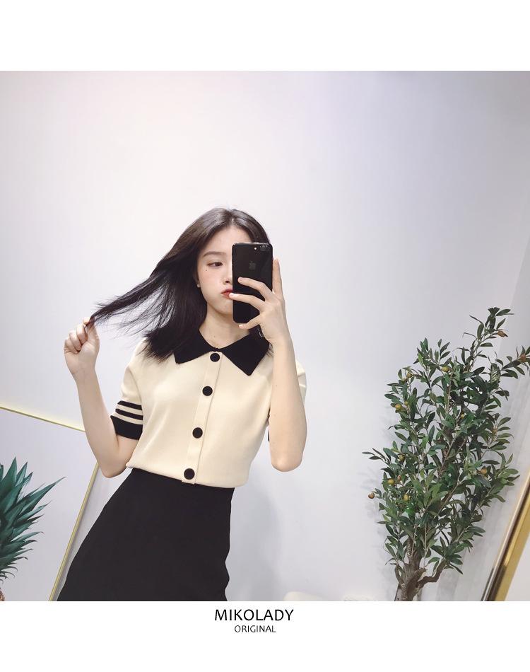 Suéter Delgado de Manga Corta Primavera y Verano 2024 Nuevo Diseño para Mujer Top Dulce a Rayas Jersey Camiseta Básica