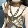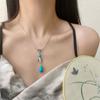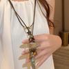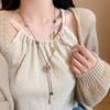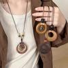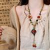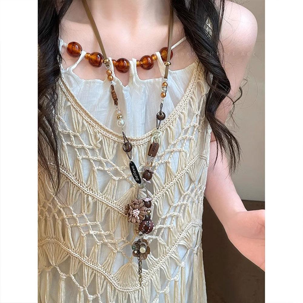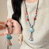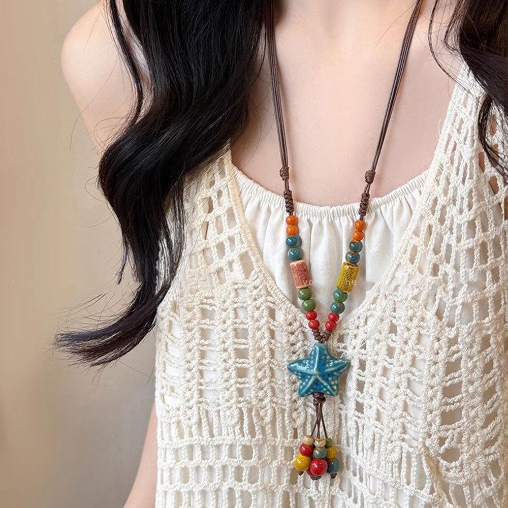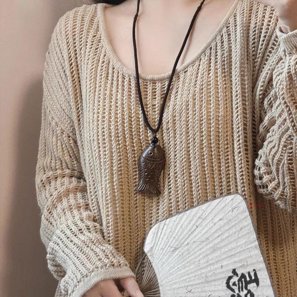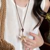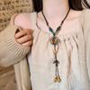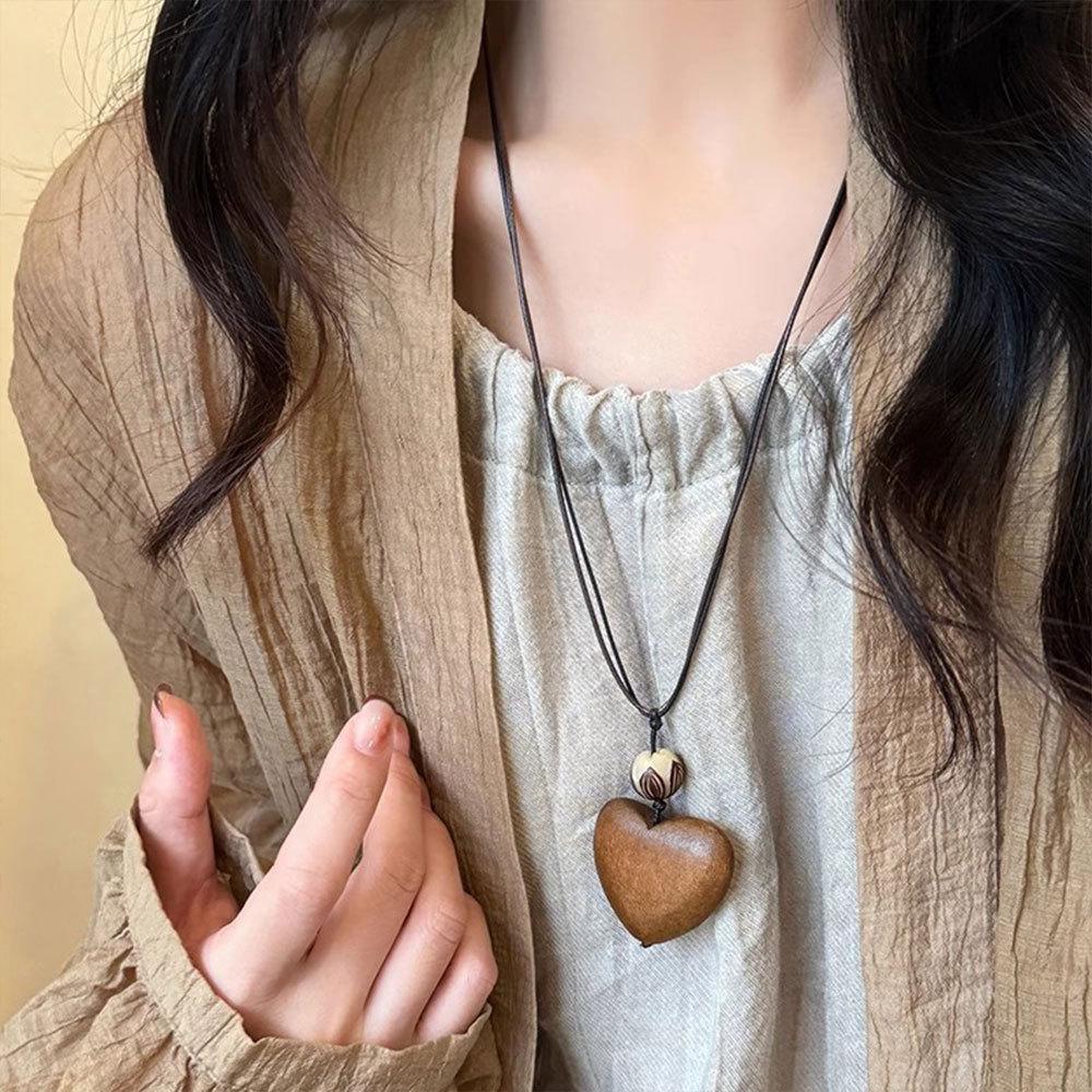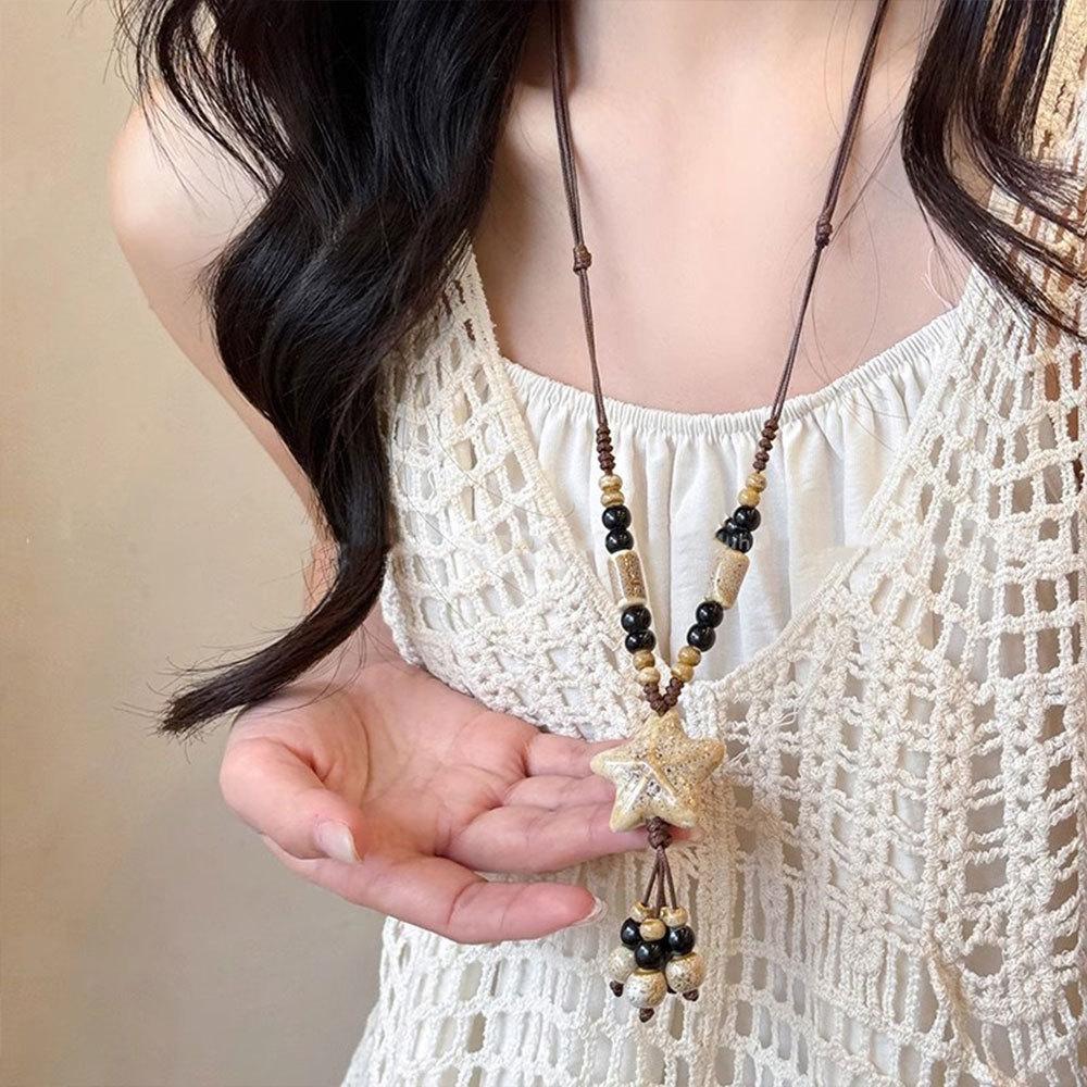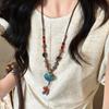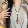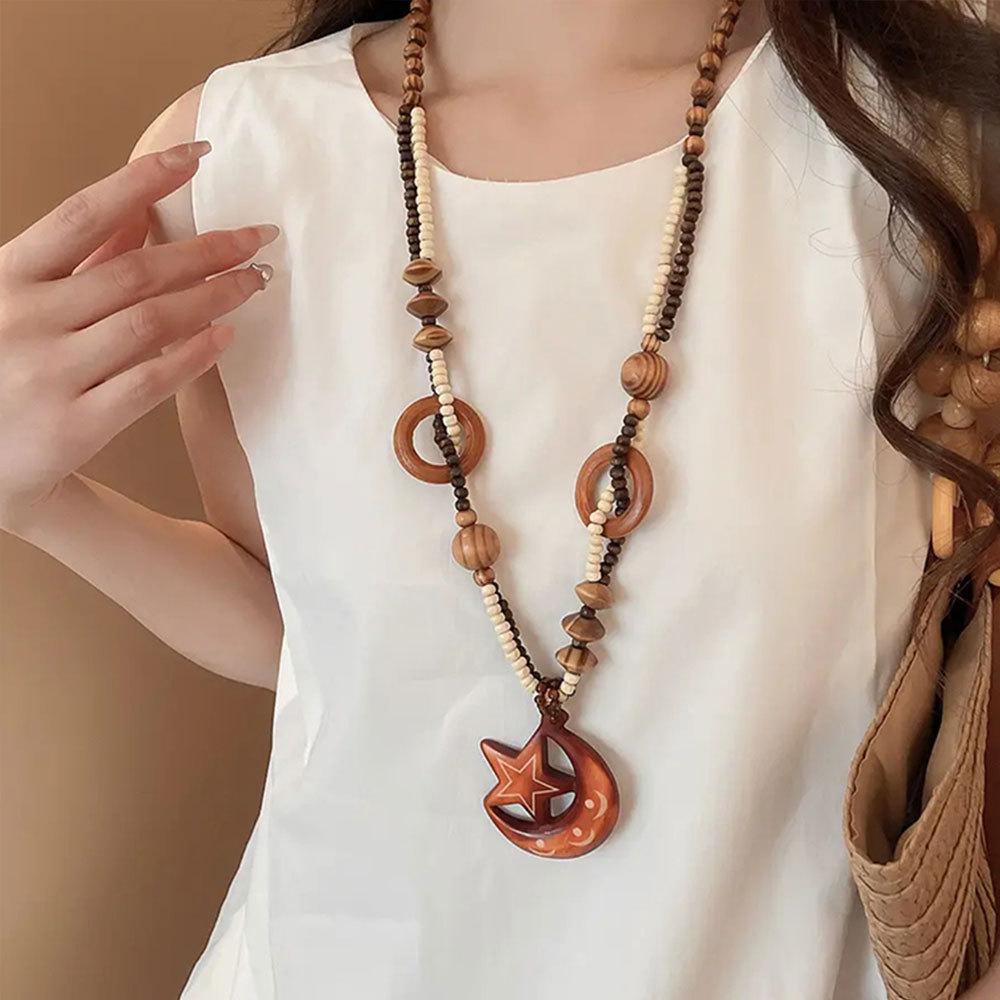 Collar de Cuerda Tejida Estilo Zen Estilo Nacional para Mujer Estilo Étnico Bohemio Largo de Madera Retro Hoja Cadena para Suéter