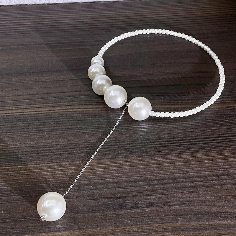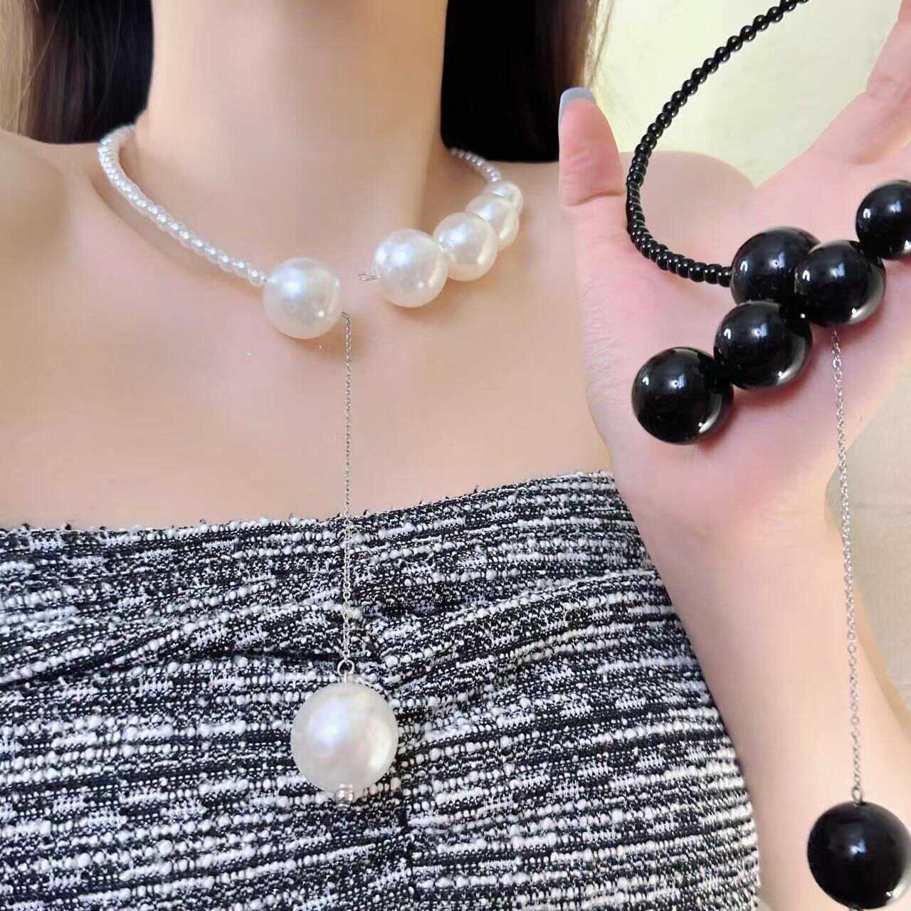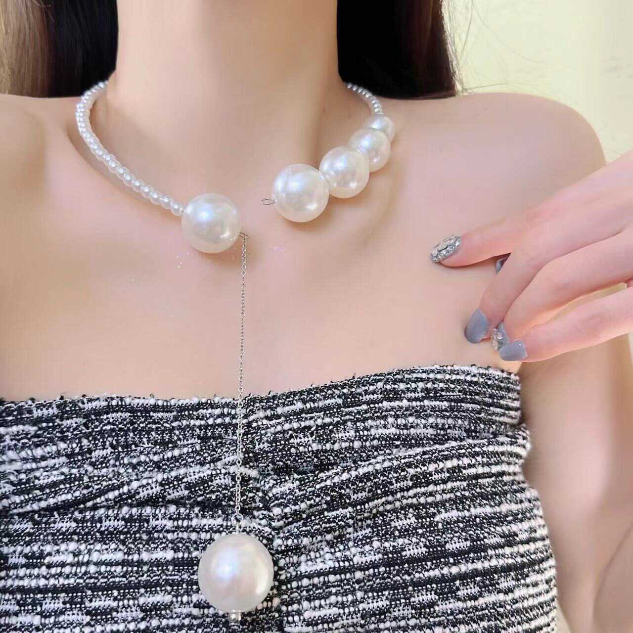 Collar con colgante de perla grande y borla de Niche Design Sense, elegante collar de perlas, gargantilla sencilla para mujer