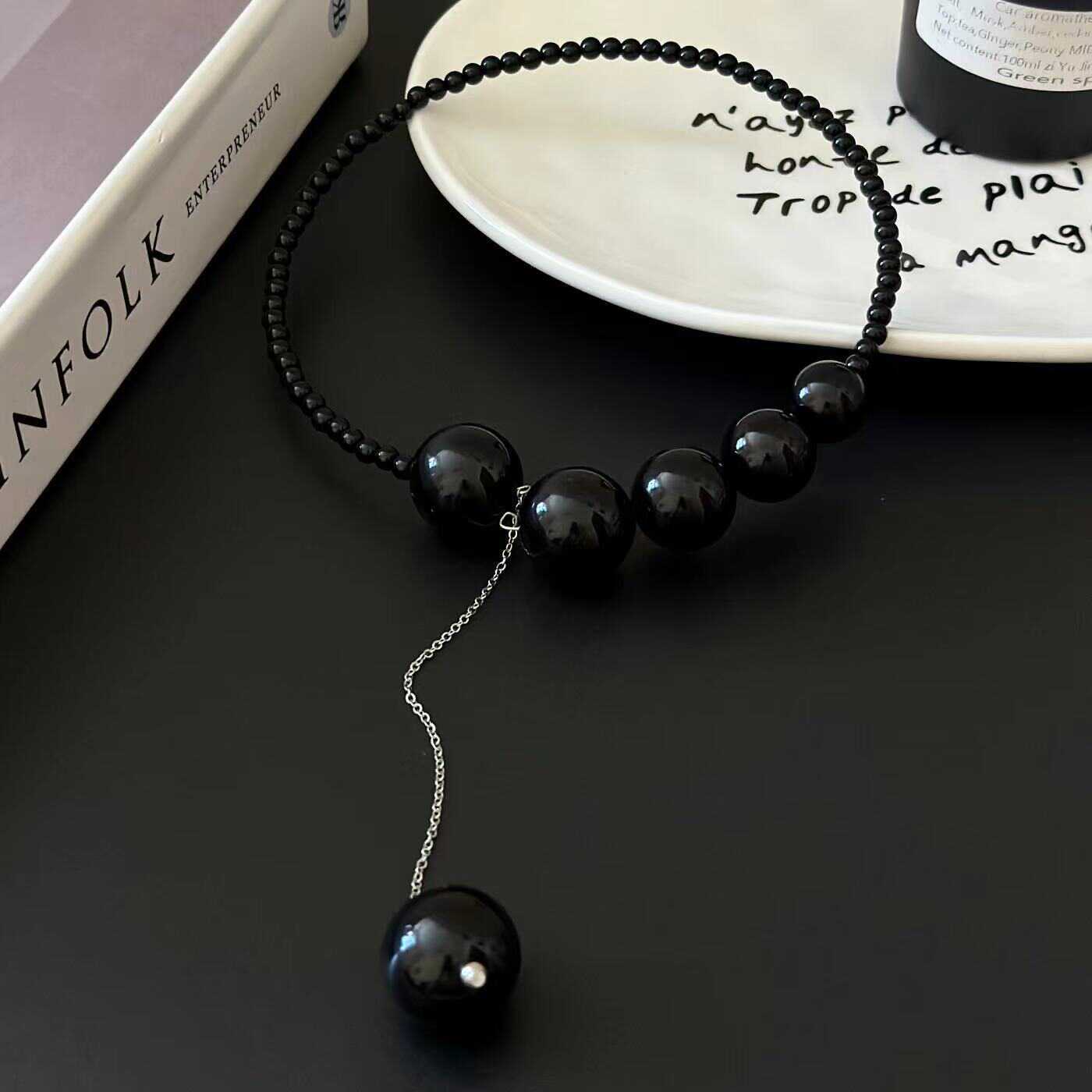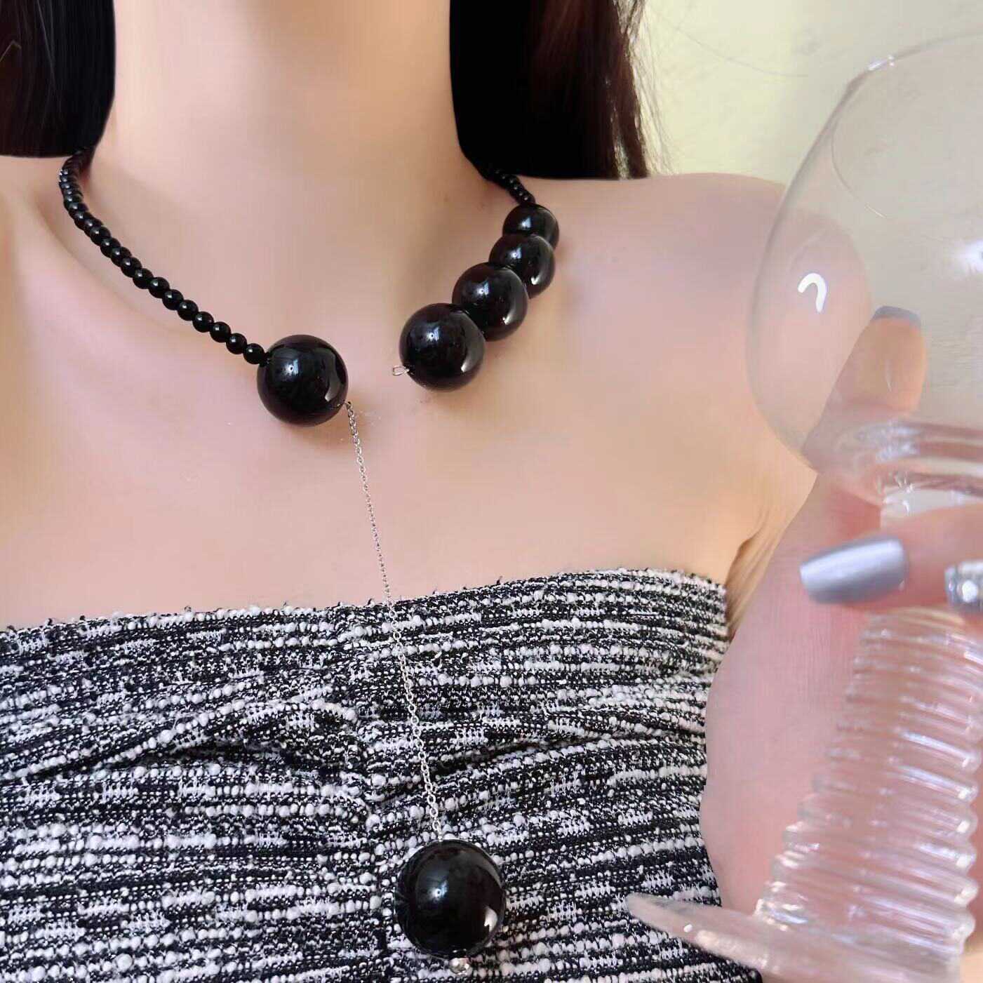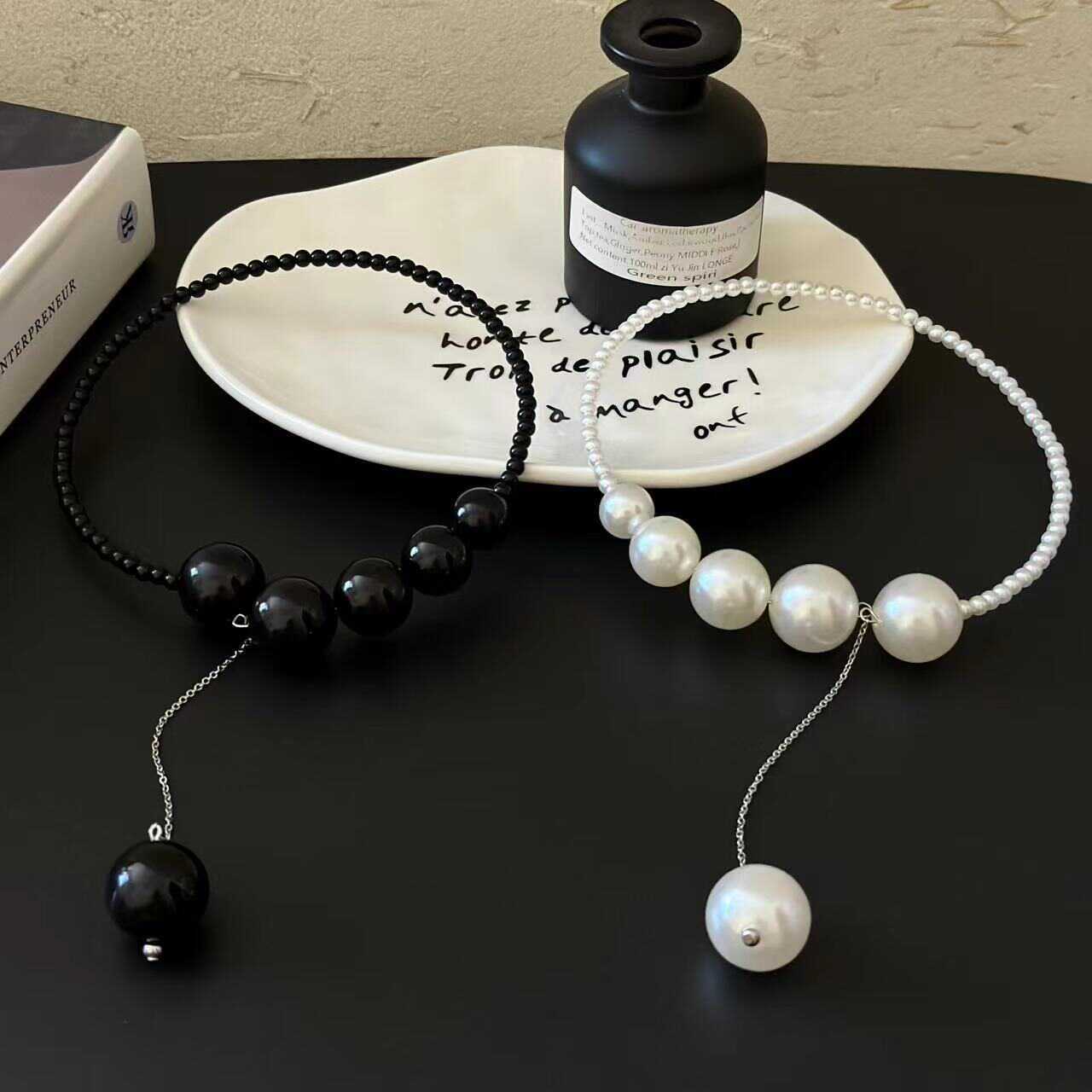Collar con colgante de perla grande y borla de Niche Design Sense, elegante collar de perlas, gargantilla sencilla para mujer