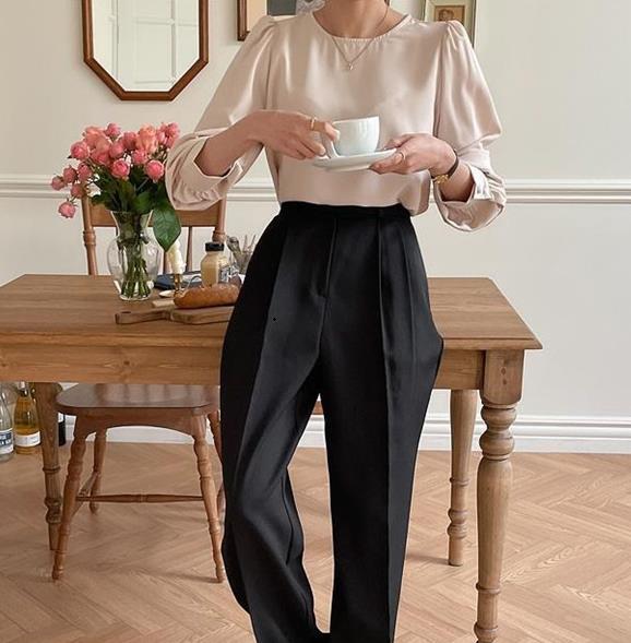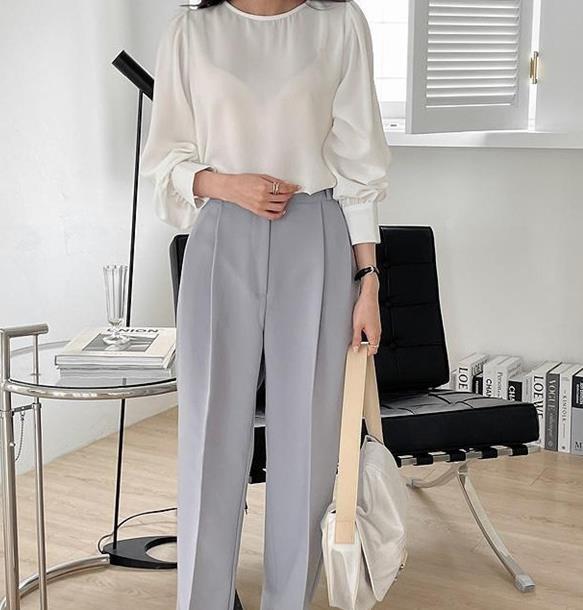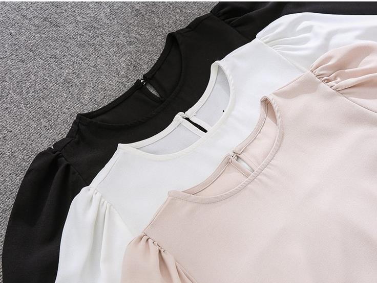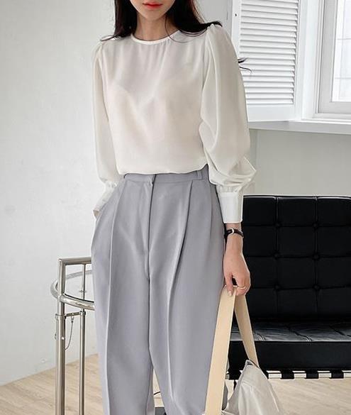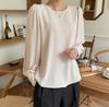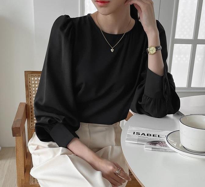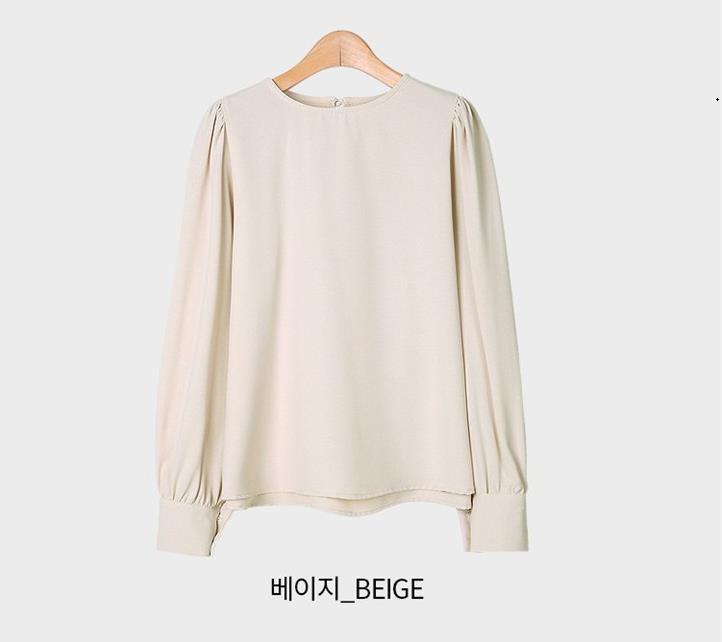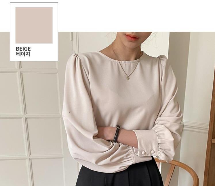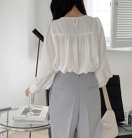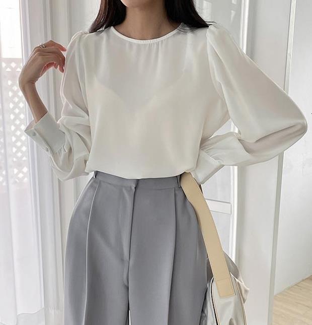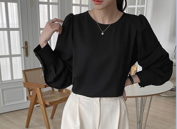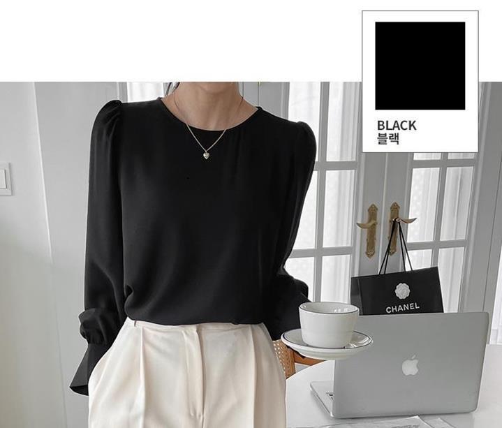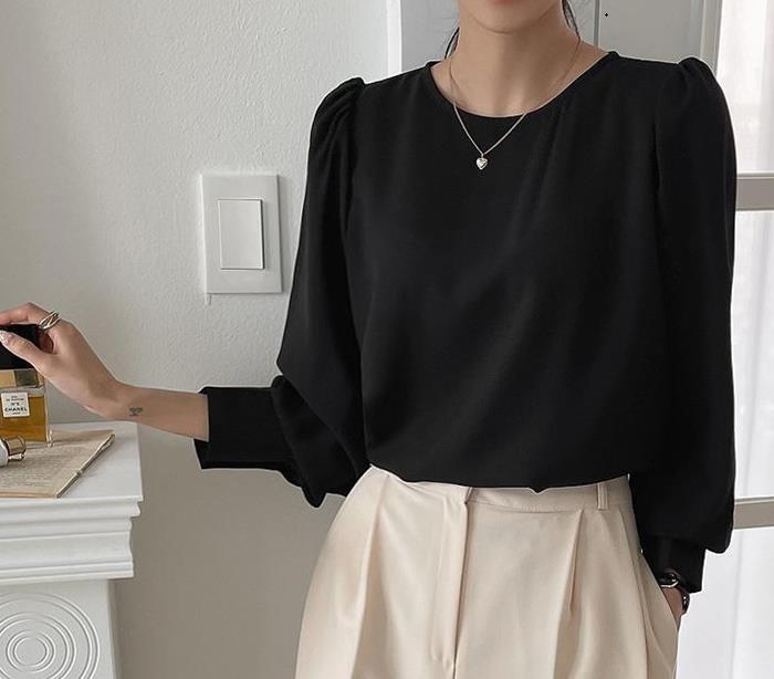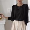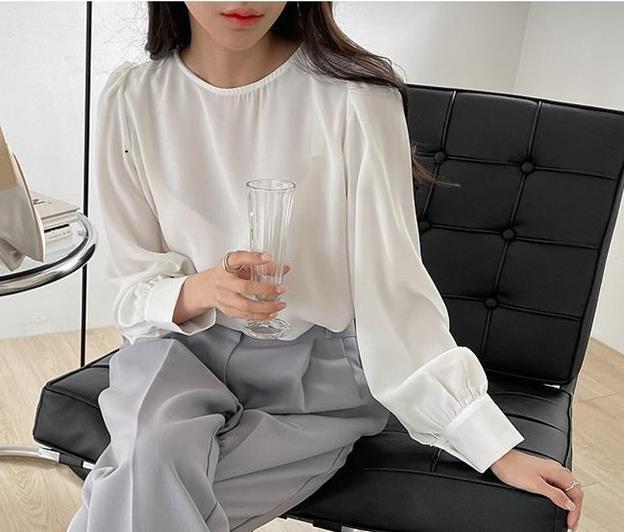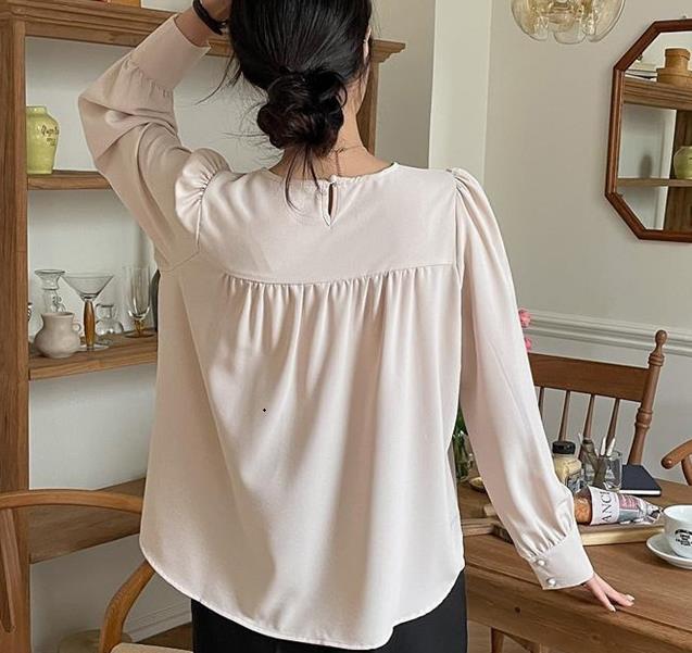 Camisa de Chifón Coreana Simple y Delicada de Color Puro para Mujer Primavera y Otoño 2025 Socialité Elegante Cuello Redondo Manga Larga Camisa de Chifón