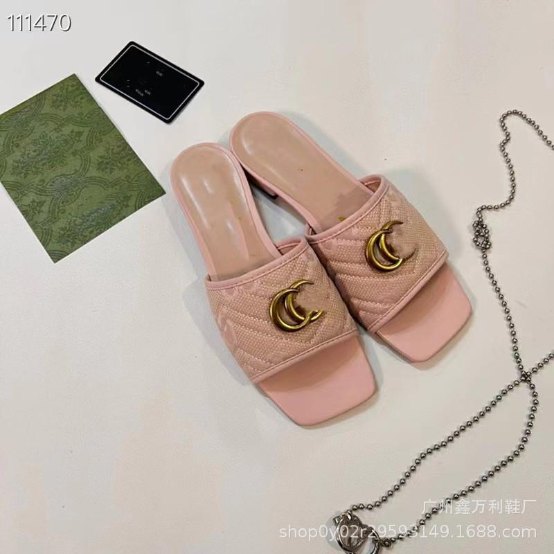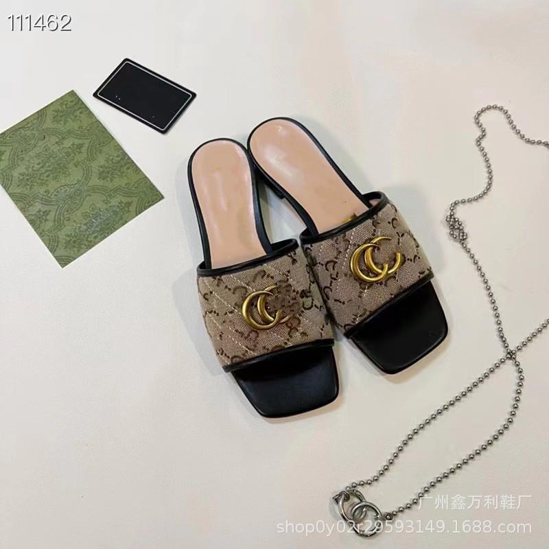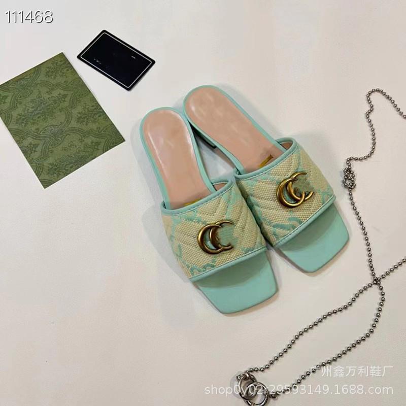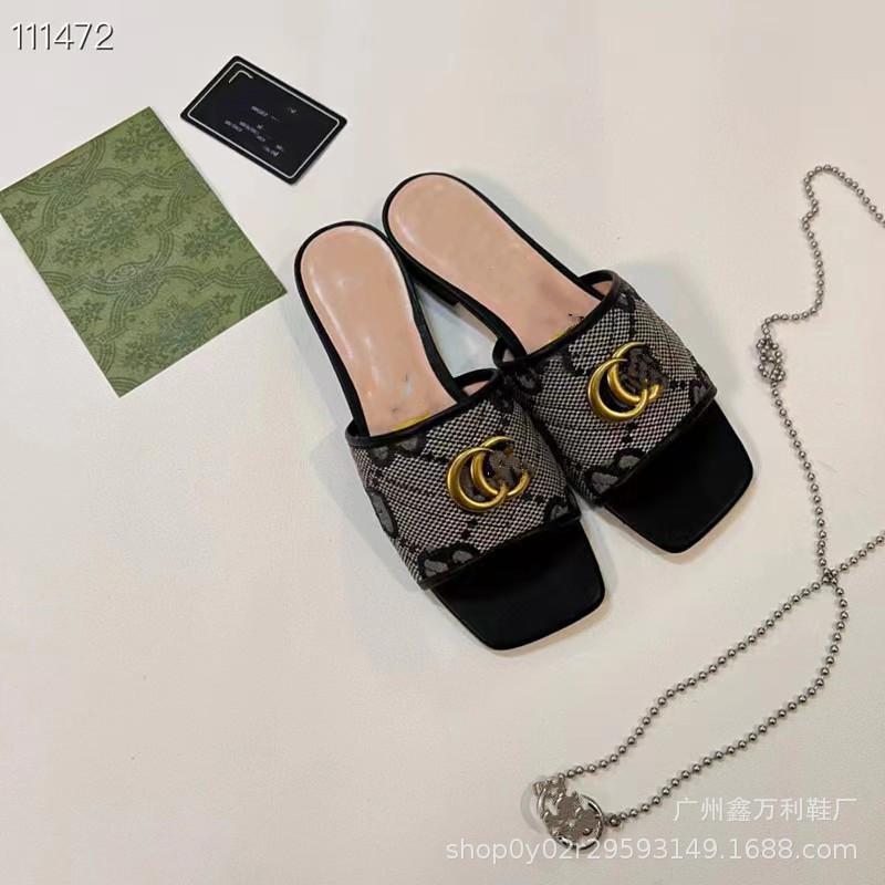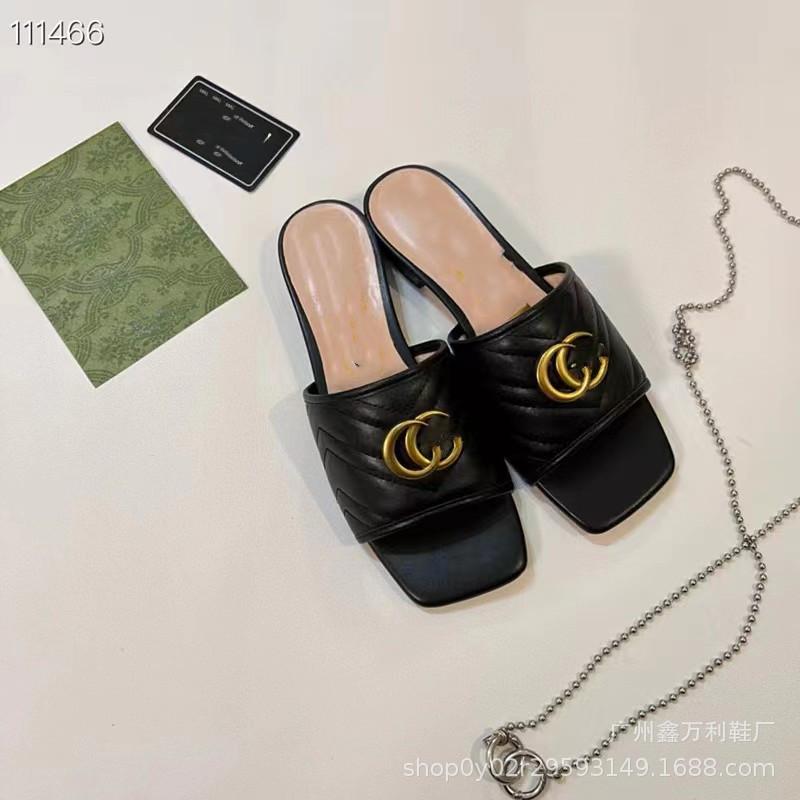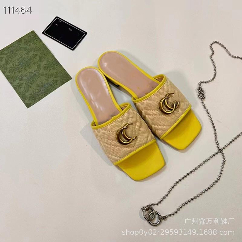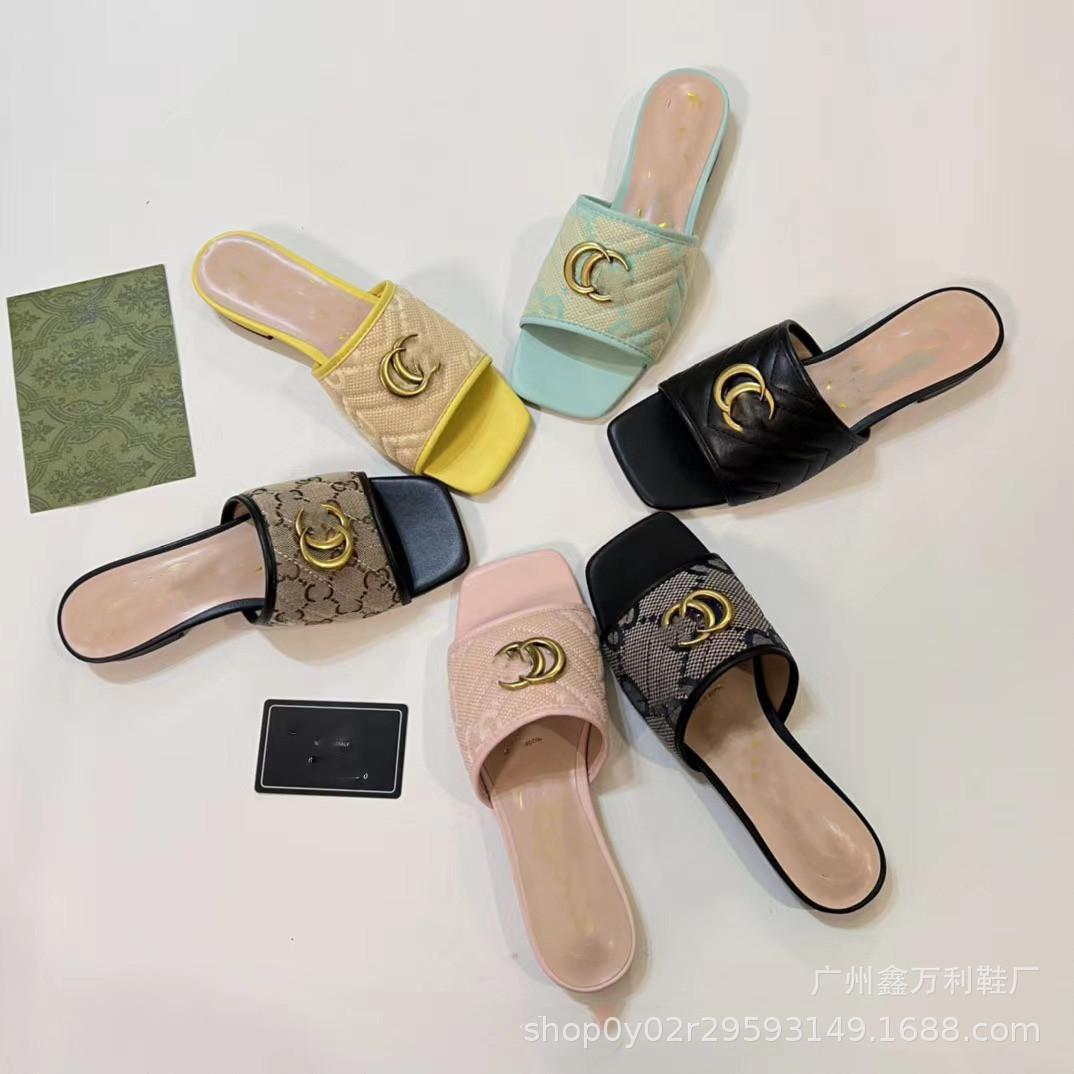 Pantuflas de Punta Cuadrada Estilo Europeo para Mujer Verano 2024 Nuevo Estilo Hebilla Metálica Casual para Exterior Pantuflas de Playa para Mujer