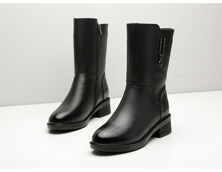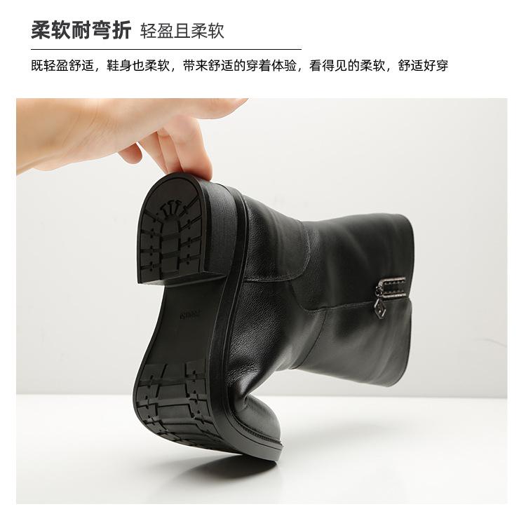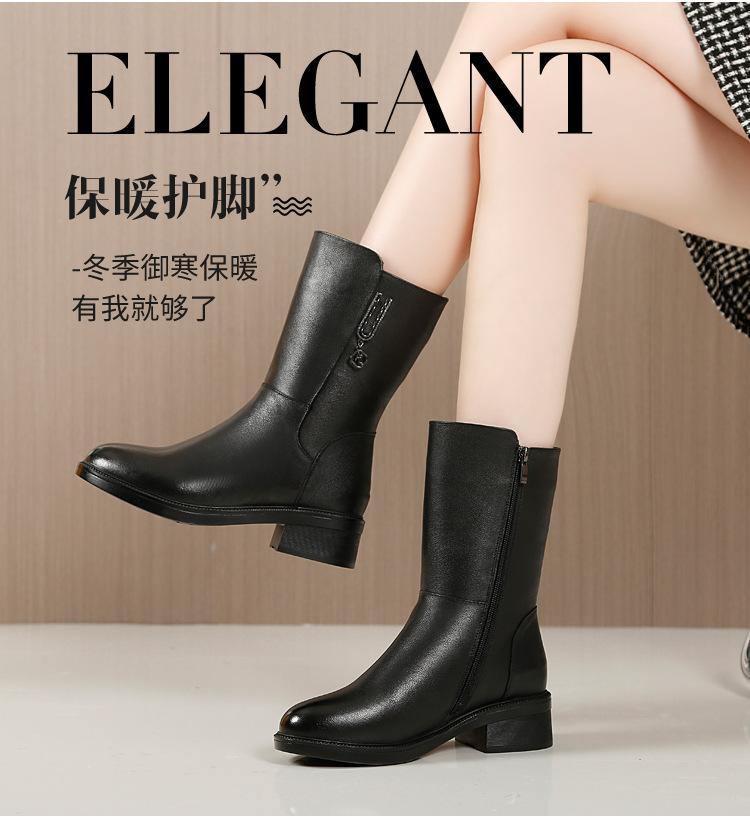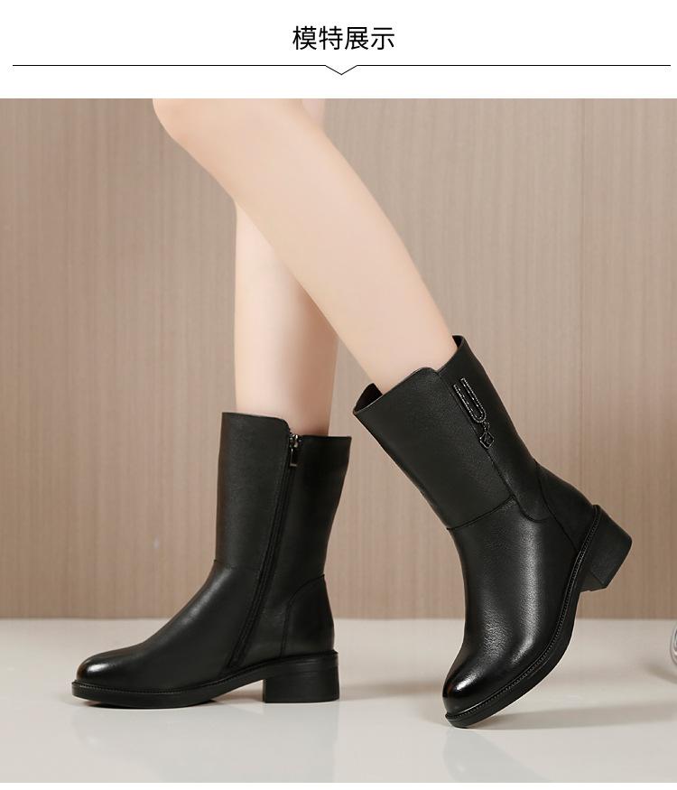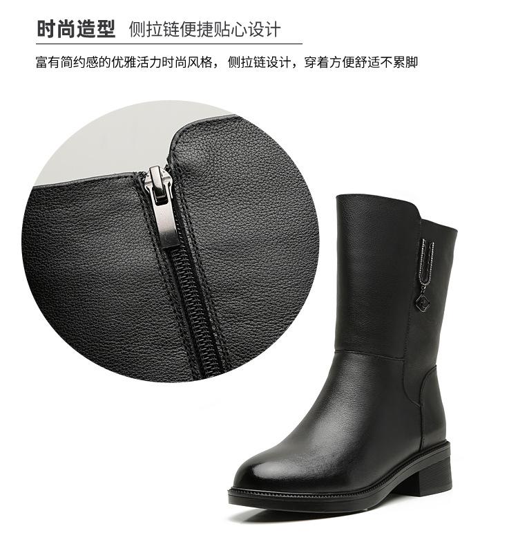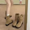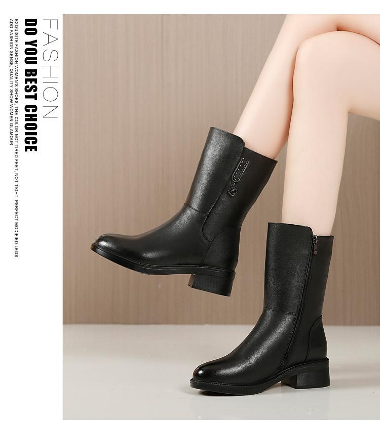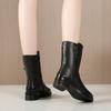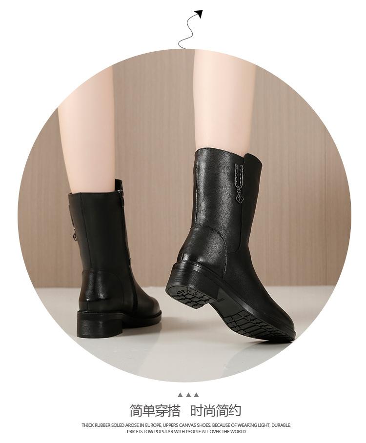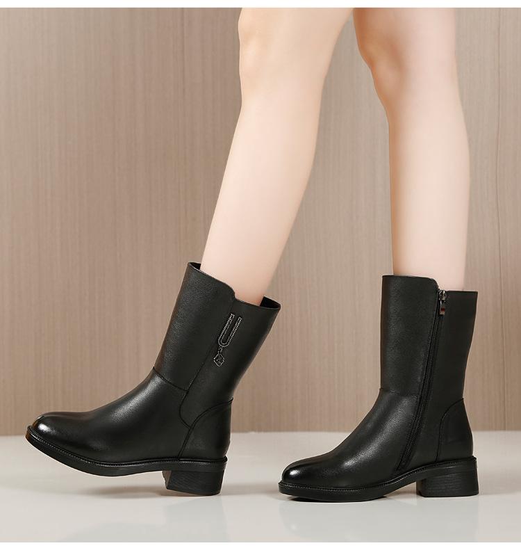 Botas Cortas de Invierno para Mujer de Cuero 2025 Botas de Media Caña de Suela Plana y Suave Integradas de Cuero y Piel Botas Martin de Caña Alta Estilo Moderno