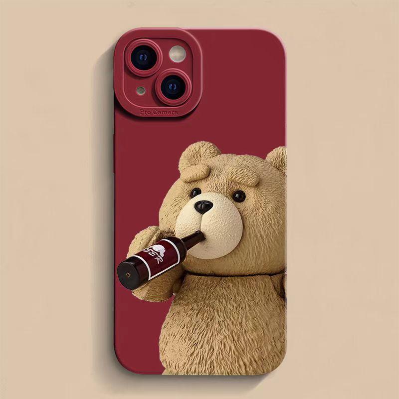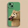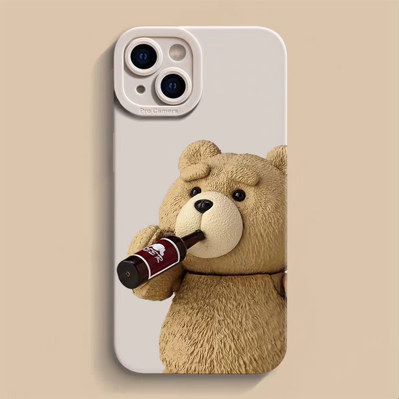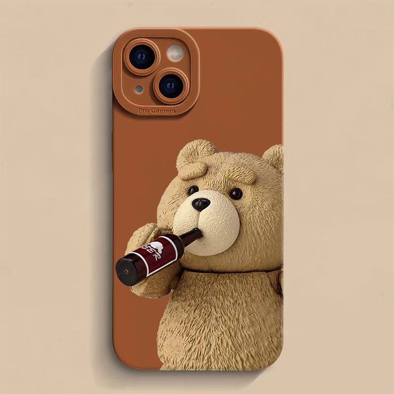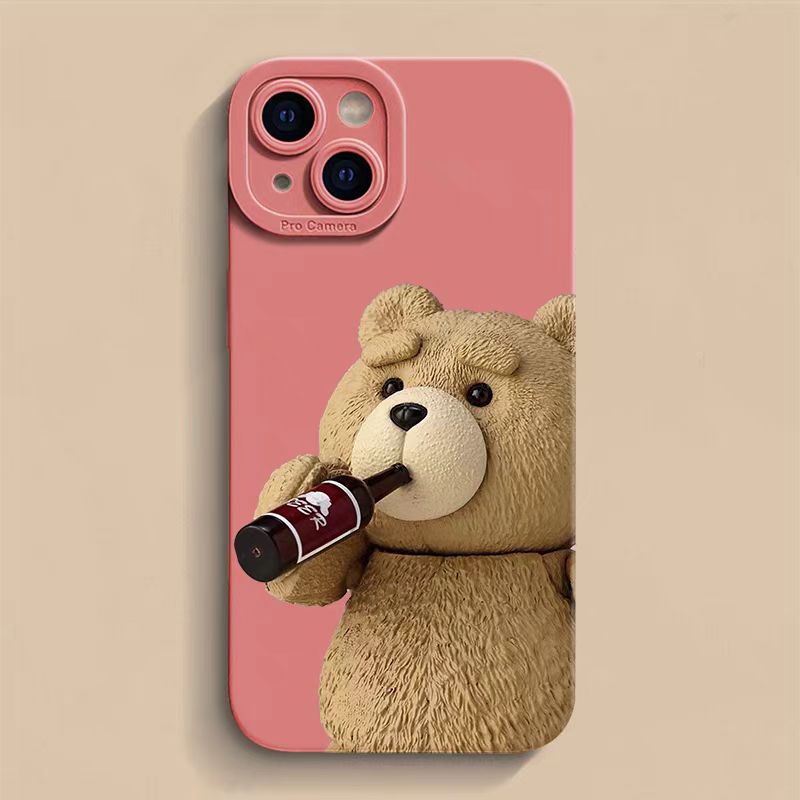 Funda para Teléfono iPhone 16Pro Max de Oso Bebida 15Pro/Goma Suave 14Pro Max Cobertura Completa Resistente a Caídas 13