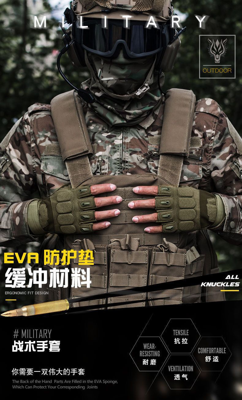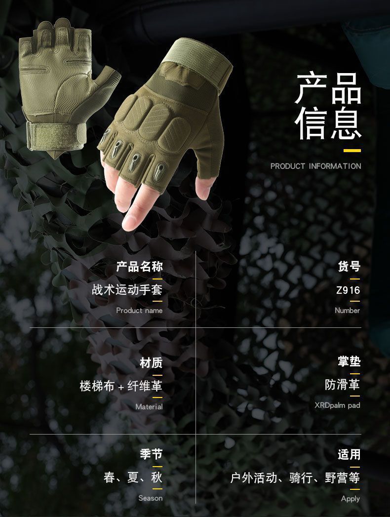 Compra Guantes tácticos de medio dedo para hombre, para deportes al aire libre, ciclismo, antideslizantes, resistentes al desgaste, montañismo, entrenamiento físico, guantes de cinco dedos. al por mayor en Joom.pro