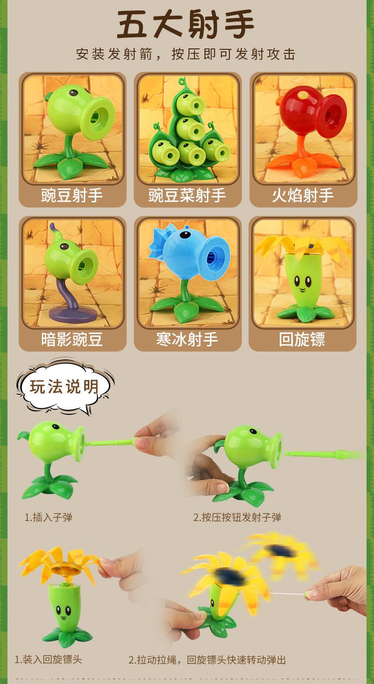 Plantas genuinas vs.. El traje de zombies puede lanzar muñecos infantiles de dibujos animados hechos a mano, conjunto completo de juguetes modelo 3 al por mayor 6