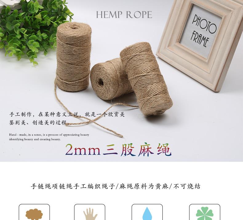 Nombre: Cuerda de cáñamo DIY hecha a mano estilo retro clip de foto cuerda de yute 100 metros 3 hebras 2 mm cuerda de cáñamo etiqueta cuerda