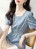 Camisa elegante de verano de moda de estilo coreano 2023 para mujer, blusa holgada adelgazante de gasa con cuello en V y manga media.