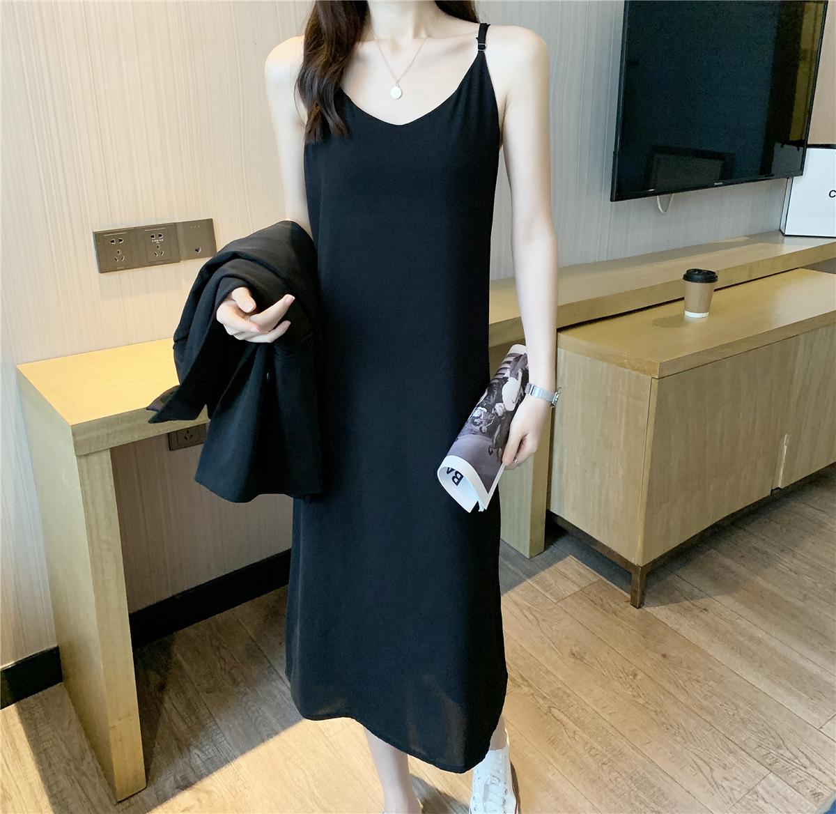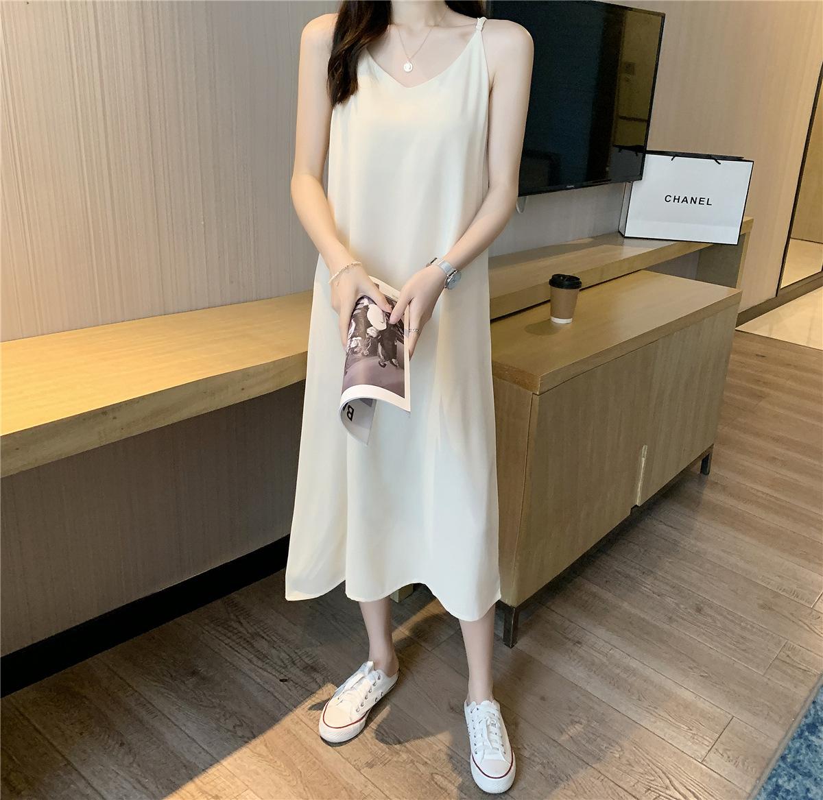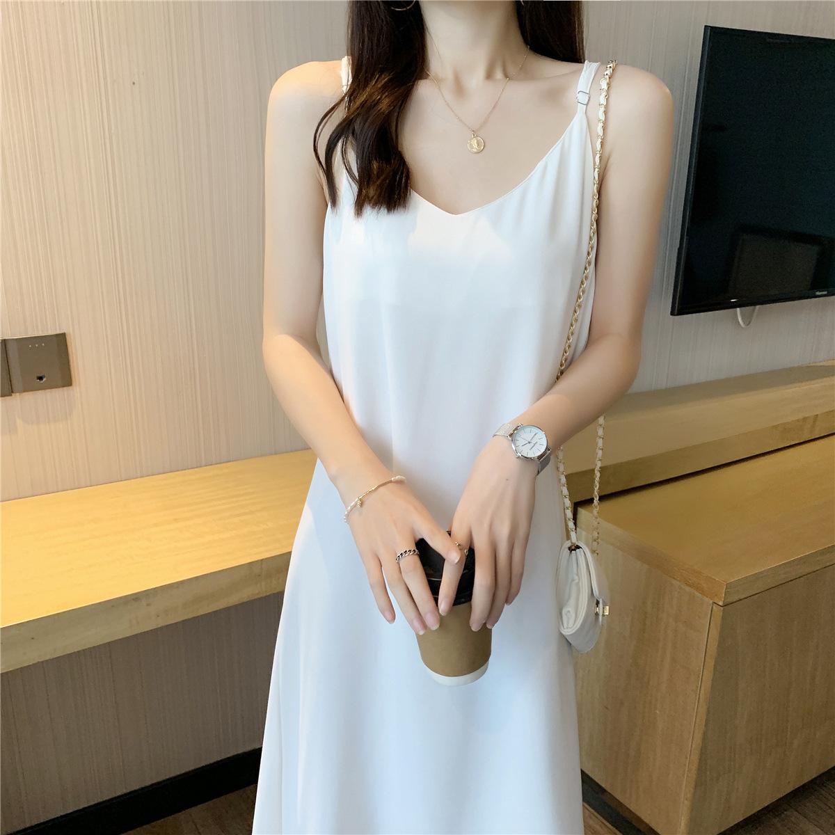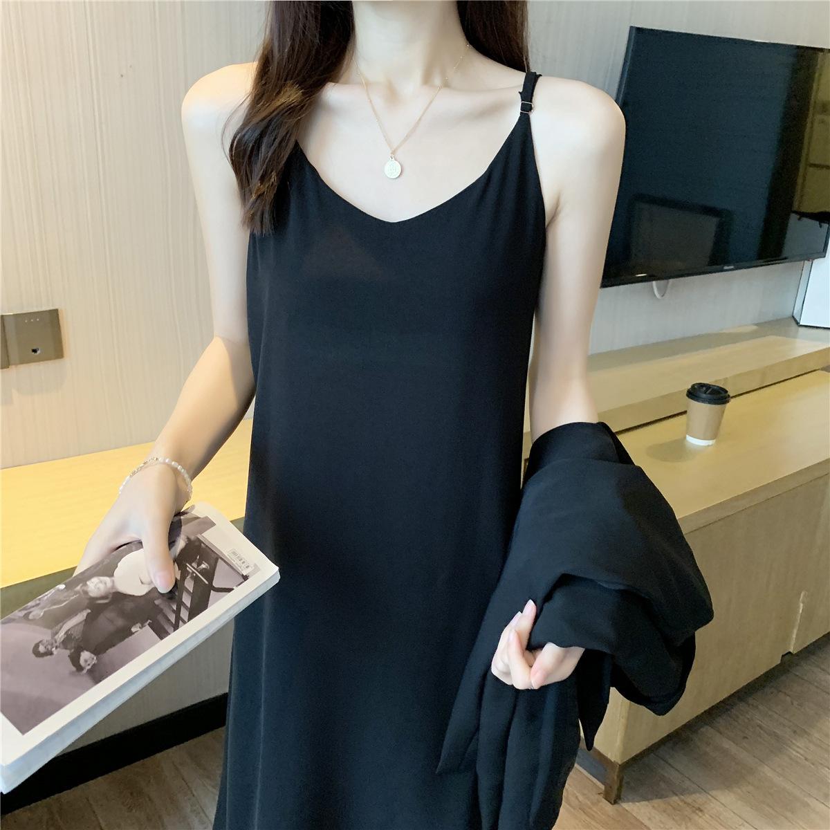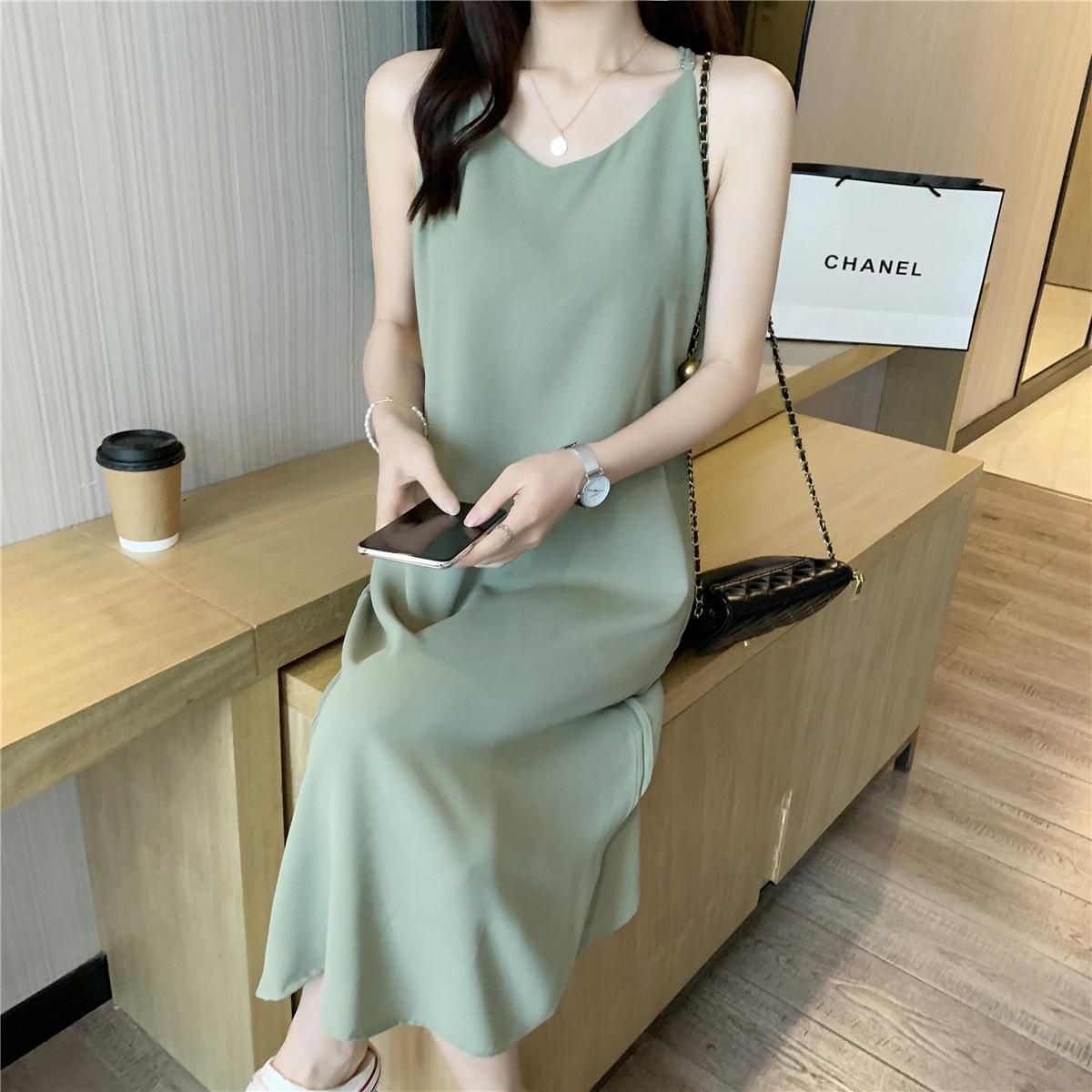 Vestido de gasa con tirantes para mujer, novedad de verano 2023, con escote en V y largo hasta la rodilla, con base y falda elegante de estilo francés.