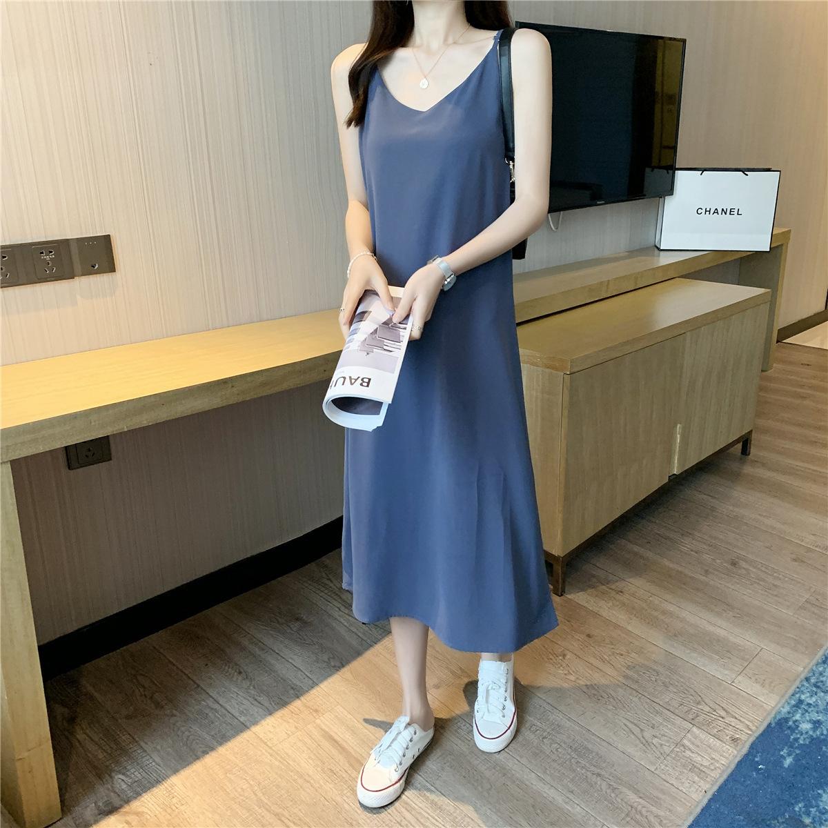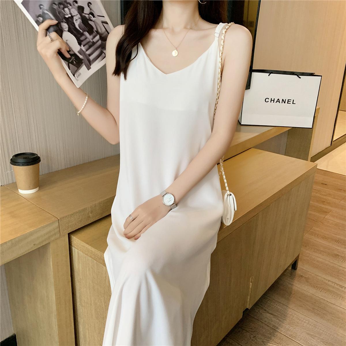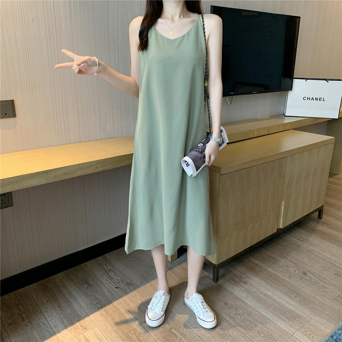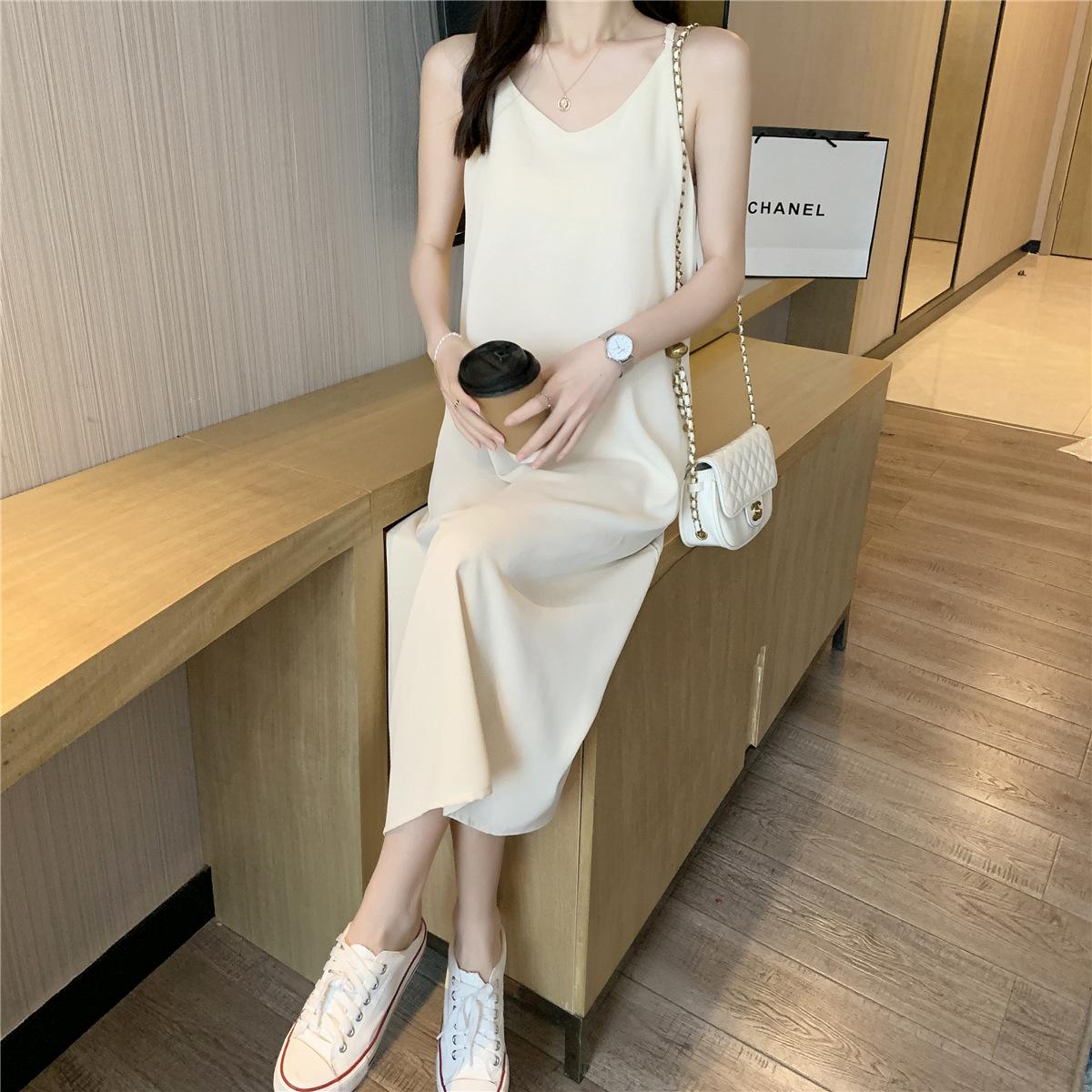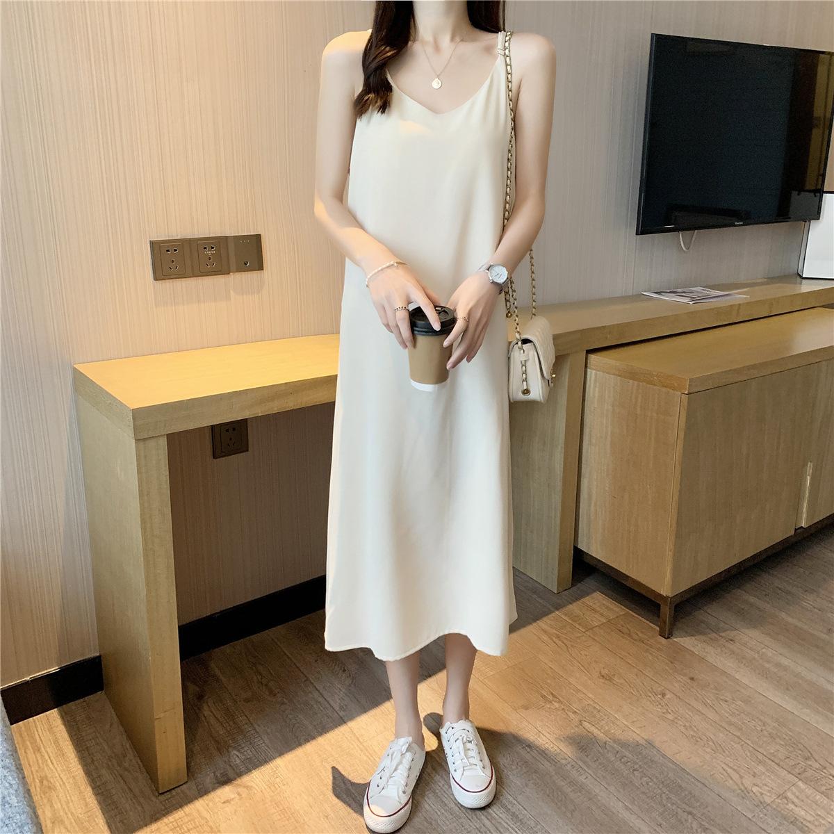 Vestido de gasa con tirantes para mujer, novedad de verano 2023, con escote en V y largo hasta la rodilla, con base y falda elegante de estilo francés.