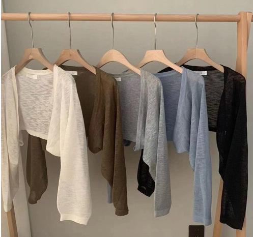 Suéter de punto de seda helada con cintura francesa, cárdigan protector solar, chal fino para mujer, blusa con tirantes exteriores de verano