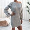 Comercio Exterior Otoño e Invierno Europeo y Americano Manga Larga Cuello Barco Casual Suéter de Punto Suelto Falda Moda Femenina Transfronteriza de Amazon