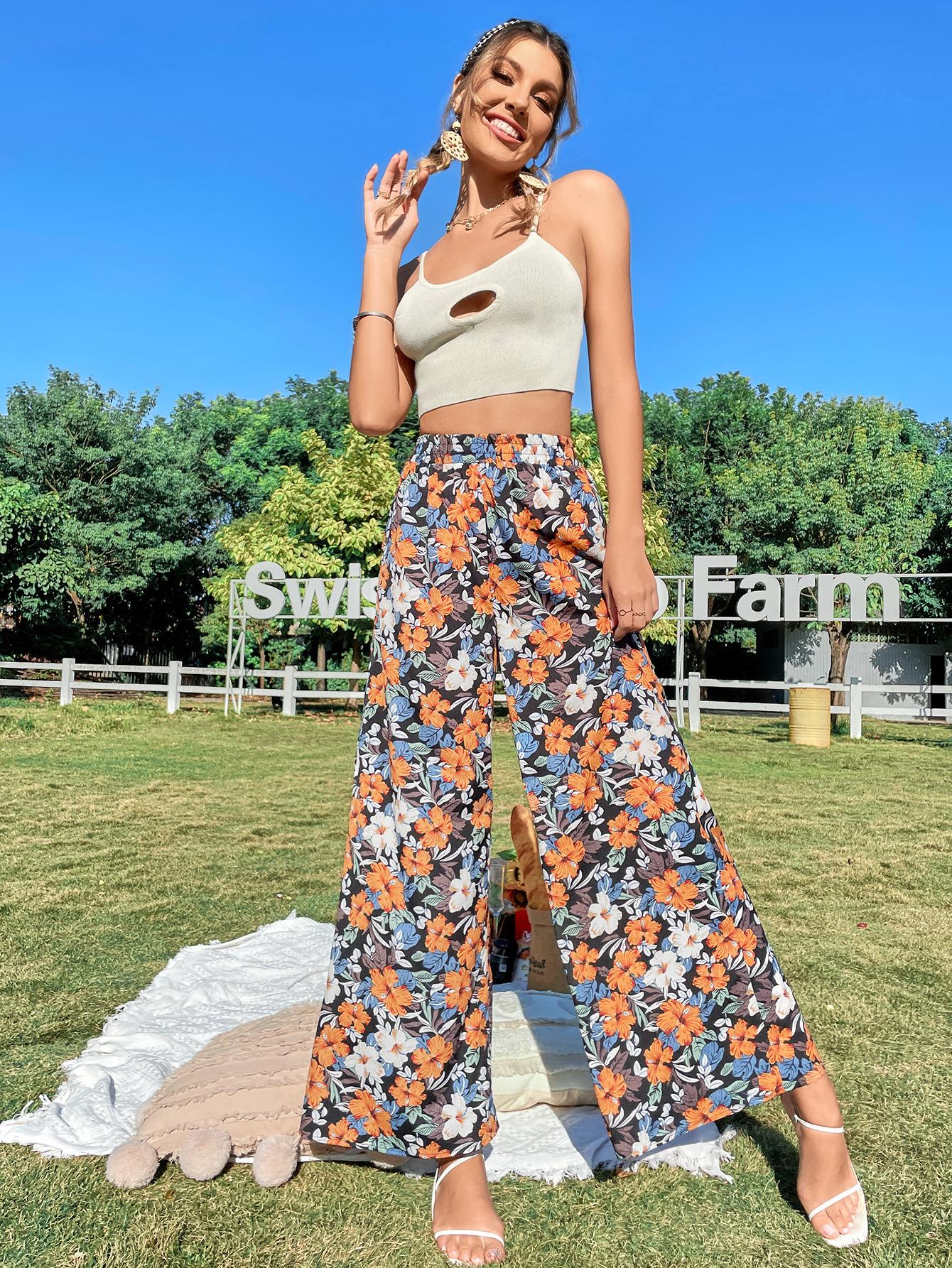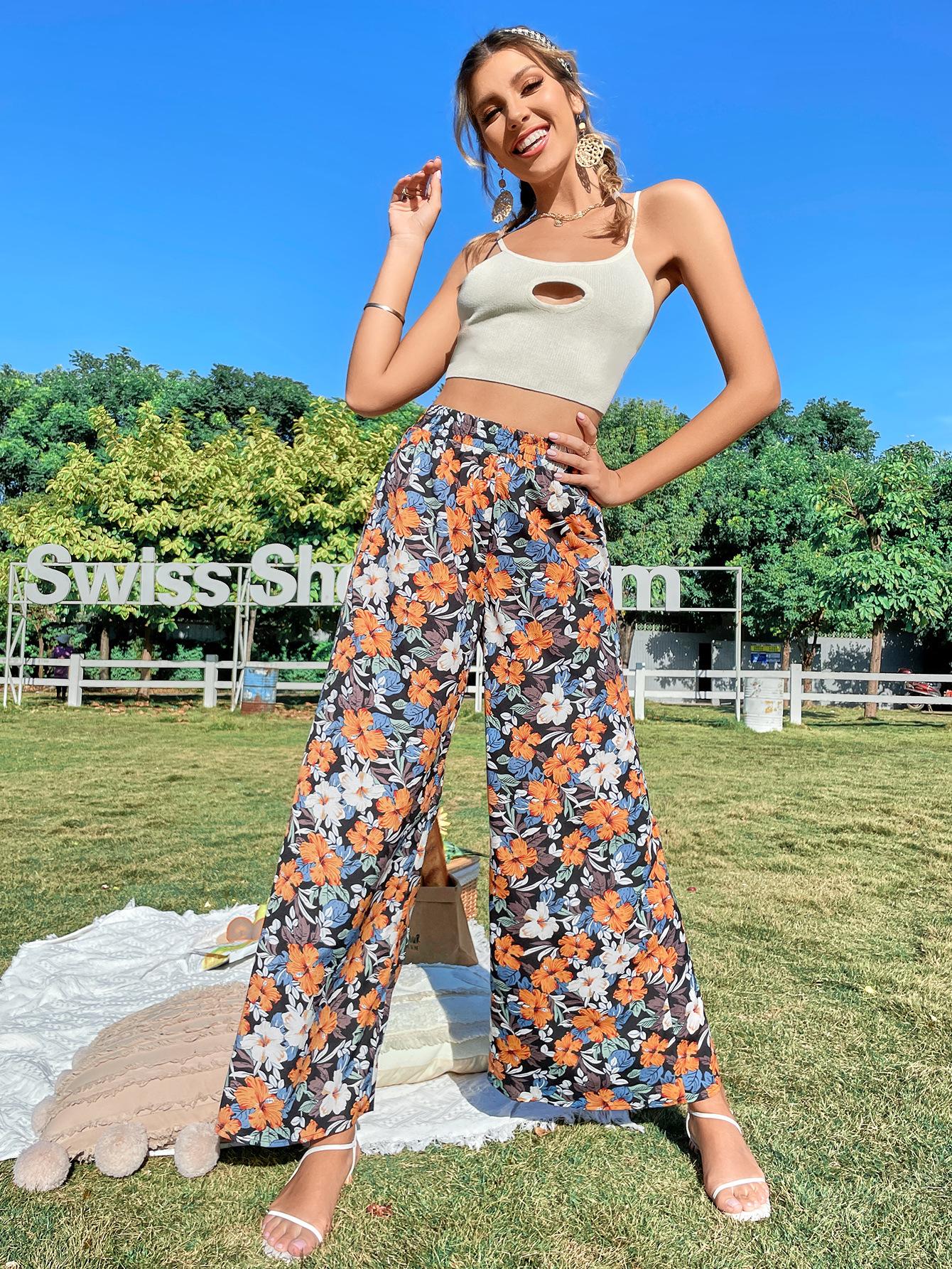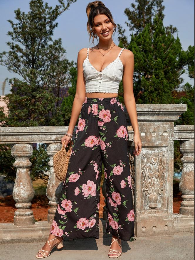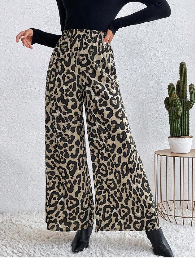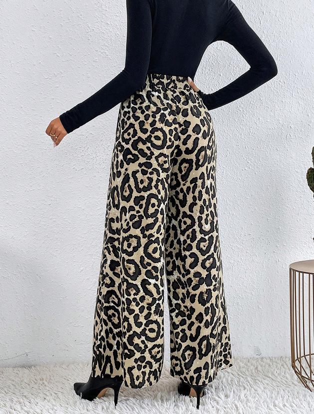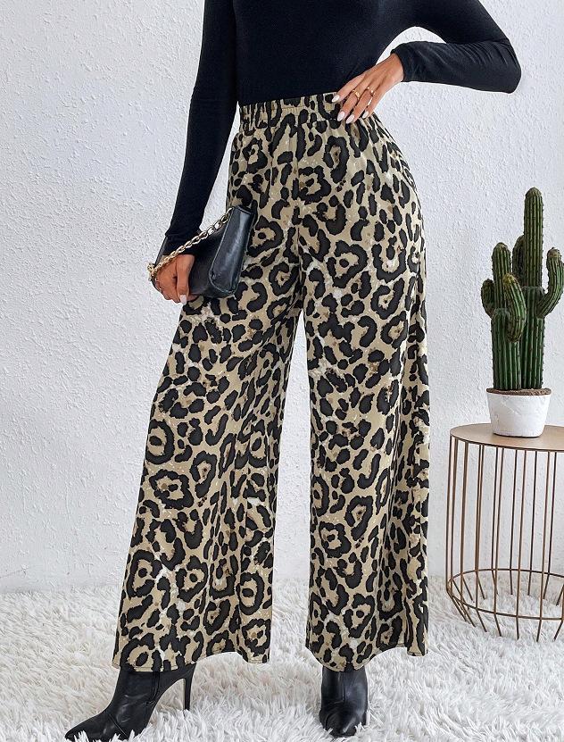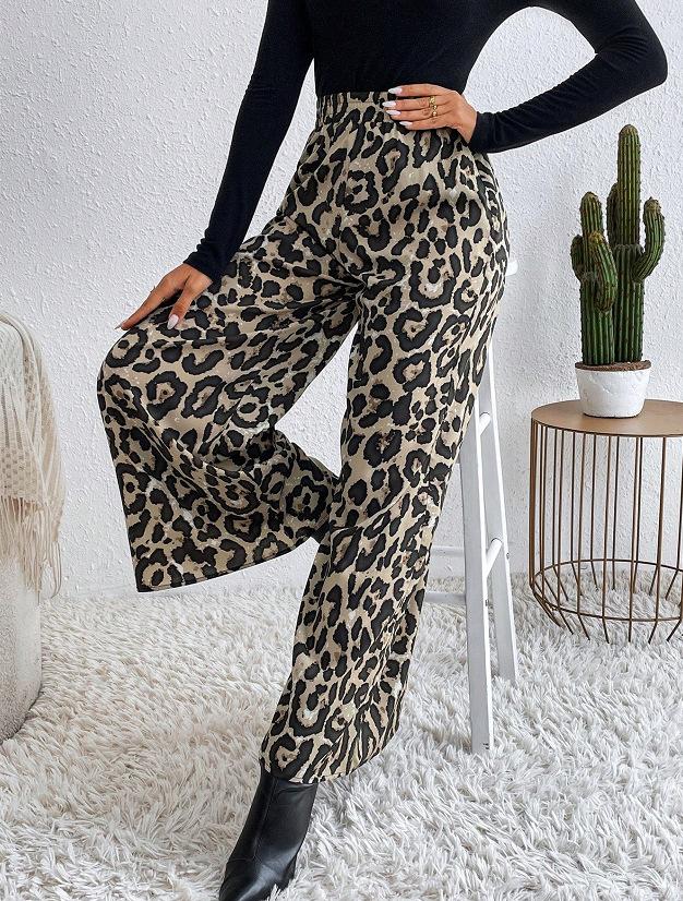 En stock -52393# Ropa de mujer transfronteriza de Amazon Europa y América INS Tendencia Estampado de leopardo Casual Cintura suelta Piernas anchas sueltas