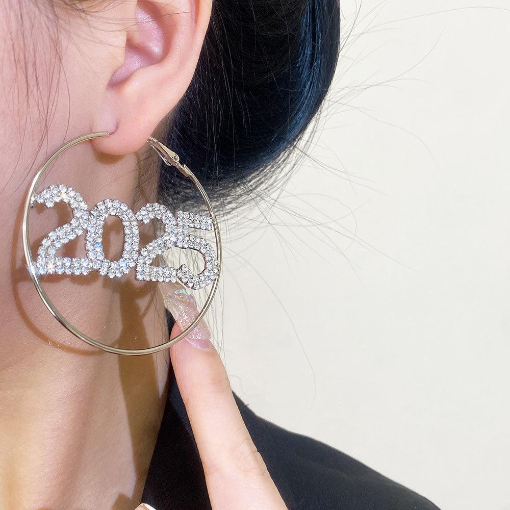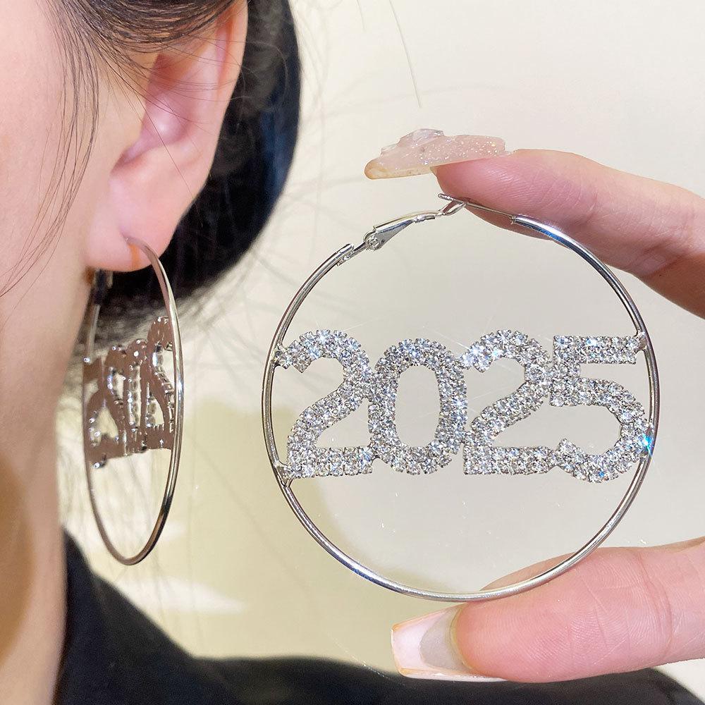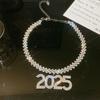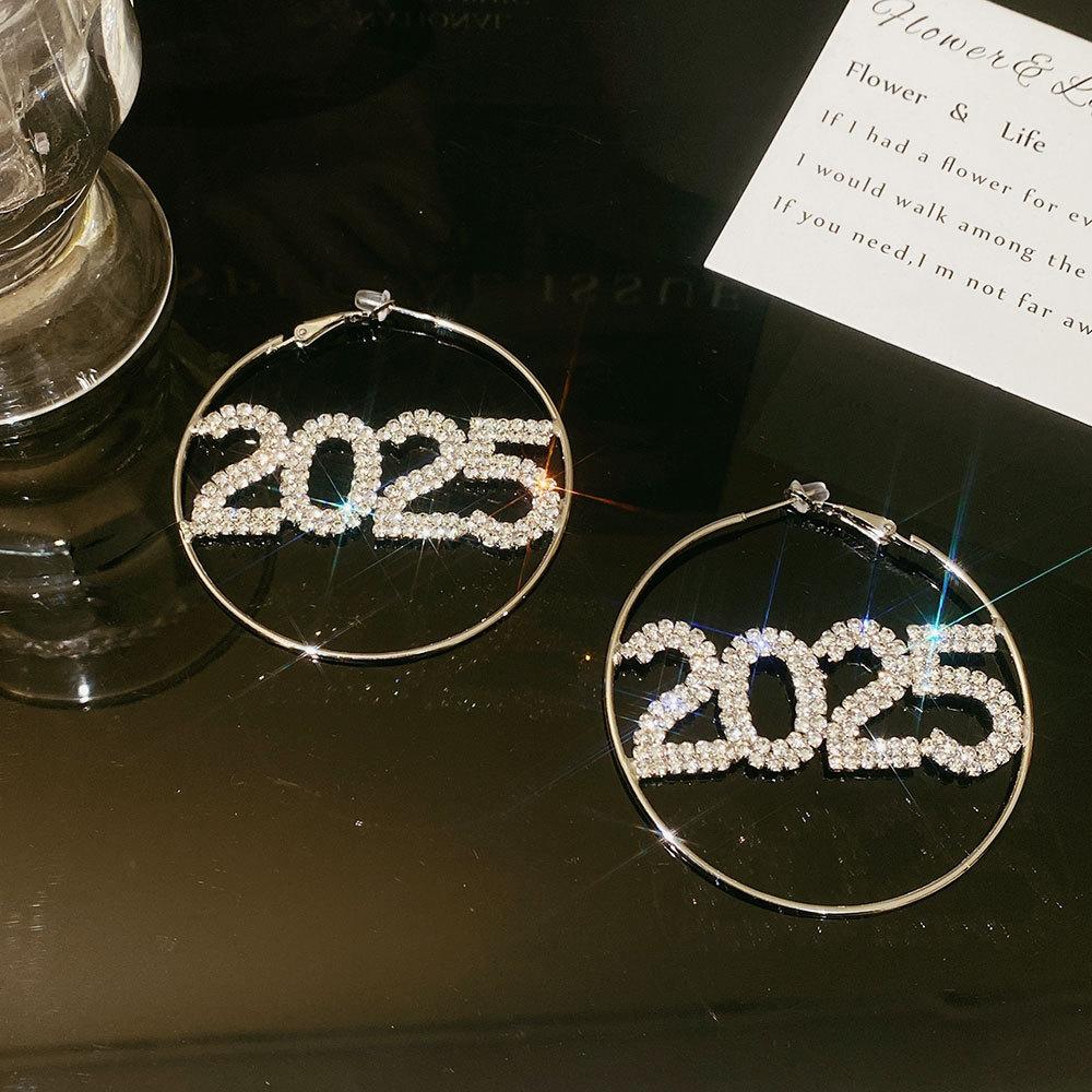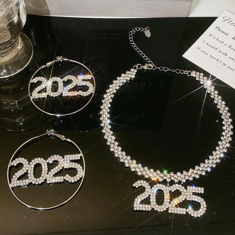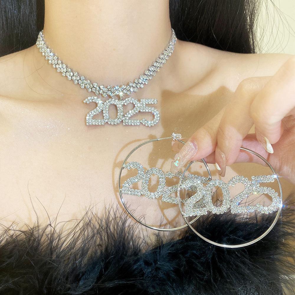 Full diamond 2025 clavicle chain, 925 silver needle--full diamond 2025 earrings