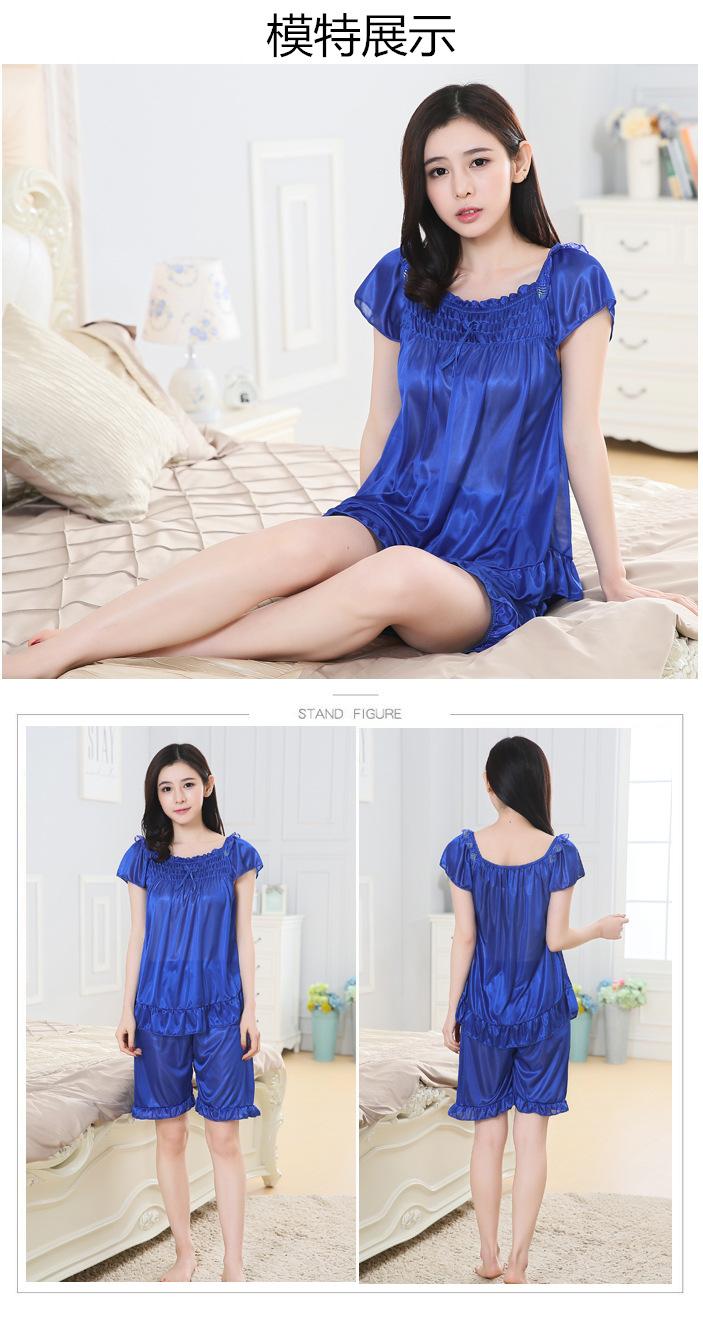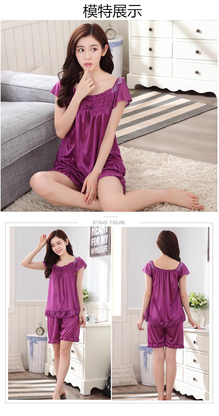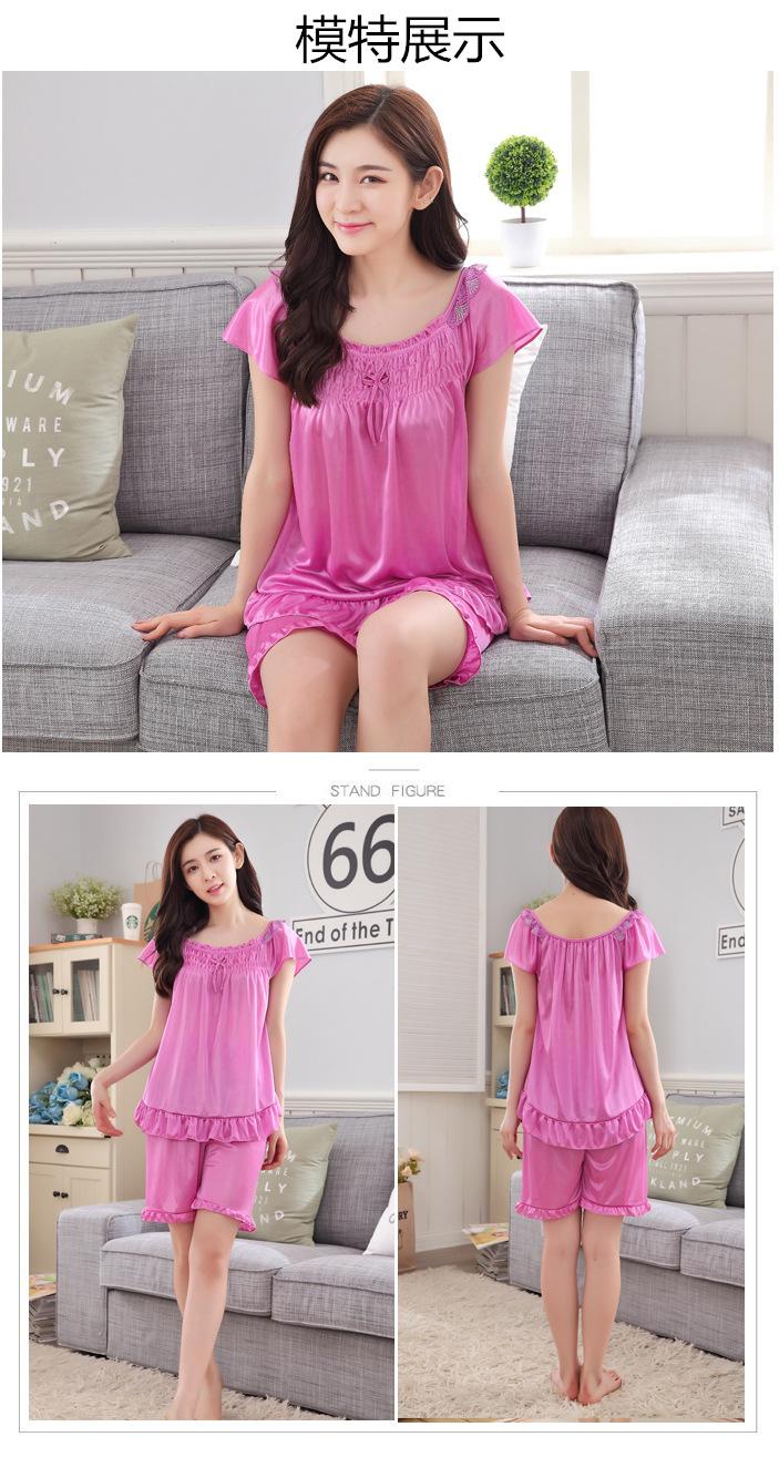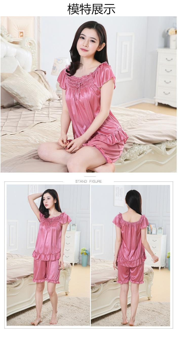 Traje de dos piezas de seda de verano para mujer, ropa de dormir sexy de verano con encaje de seda de hielo, ropa de hogar holgada de color sólido