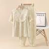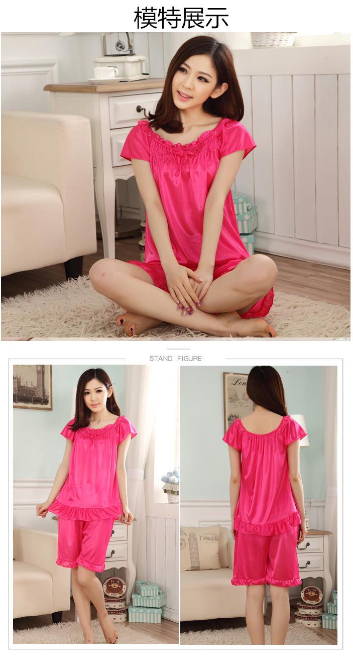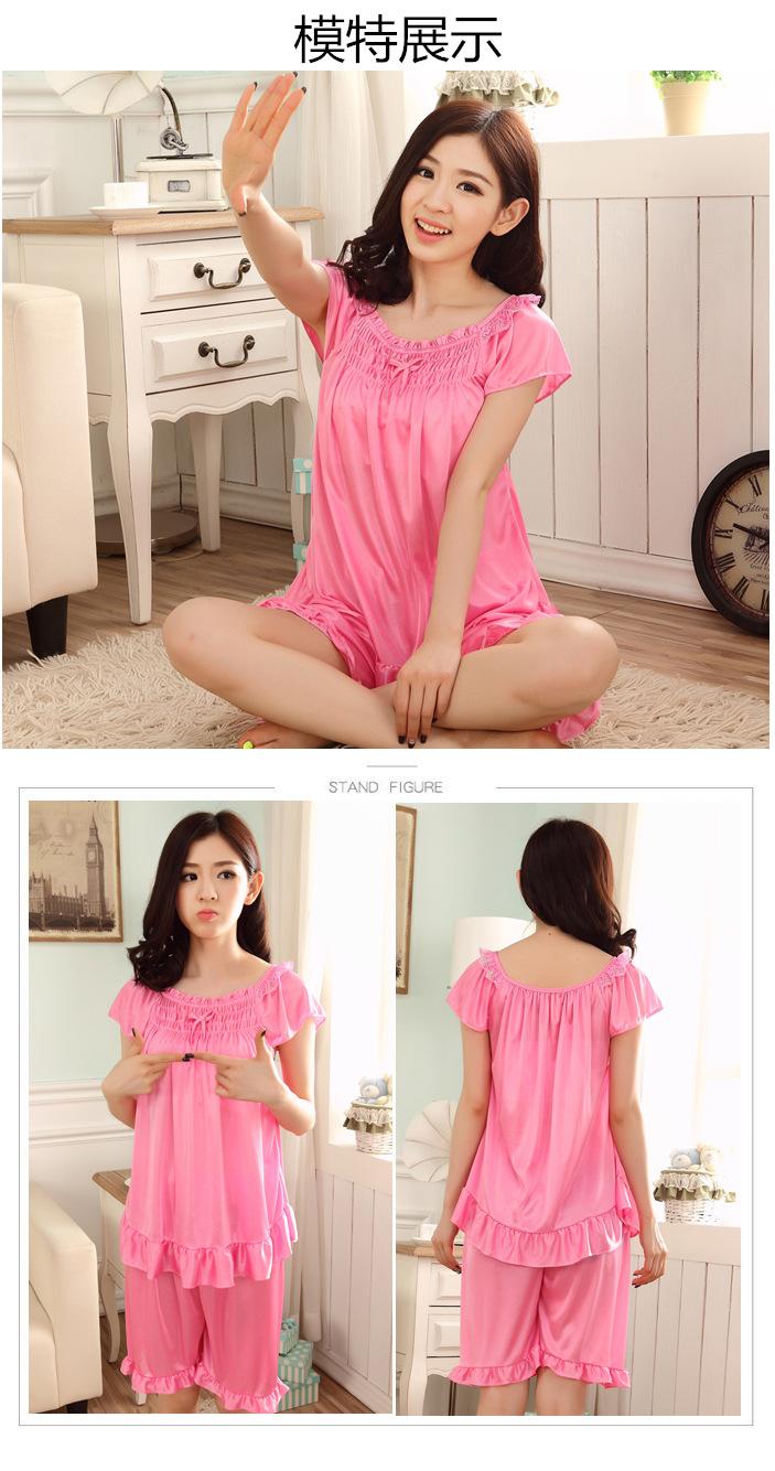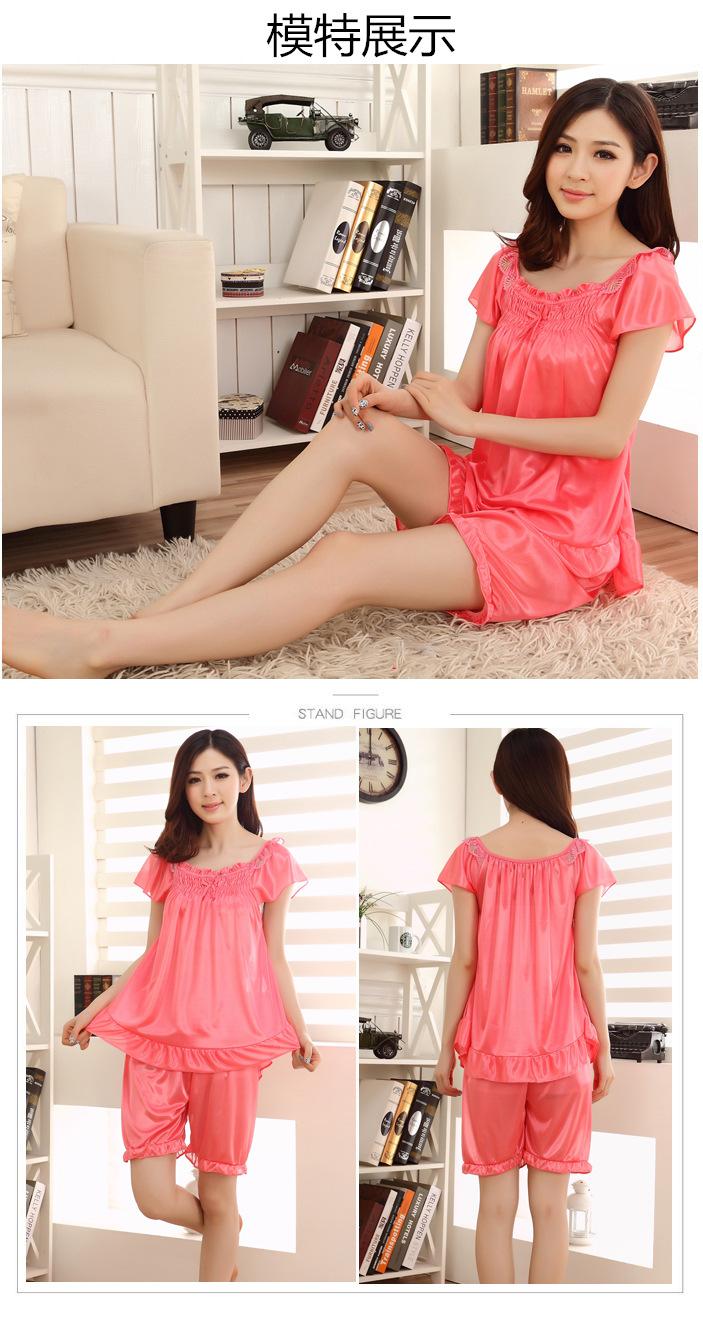 Traje de dos piezas de seda de verano para mujer, ropa de dormir sexy de verano con encaje de seda de hielo, ropa de hogar holgada de color sólido