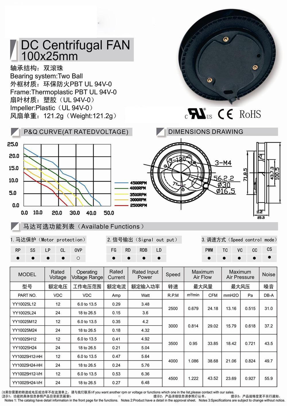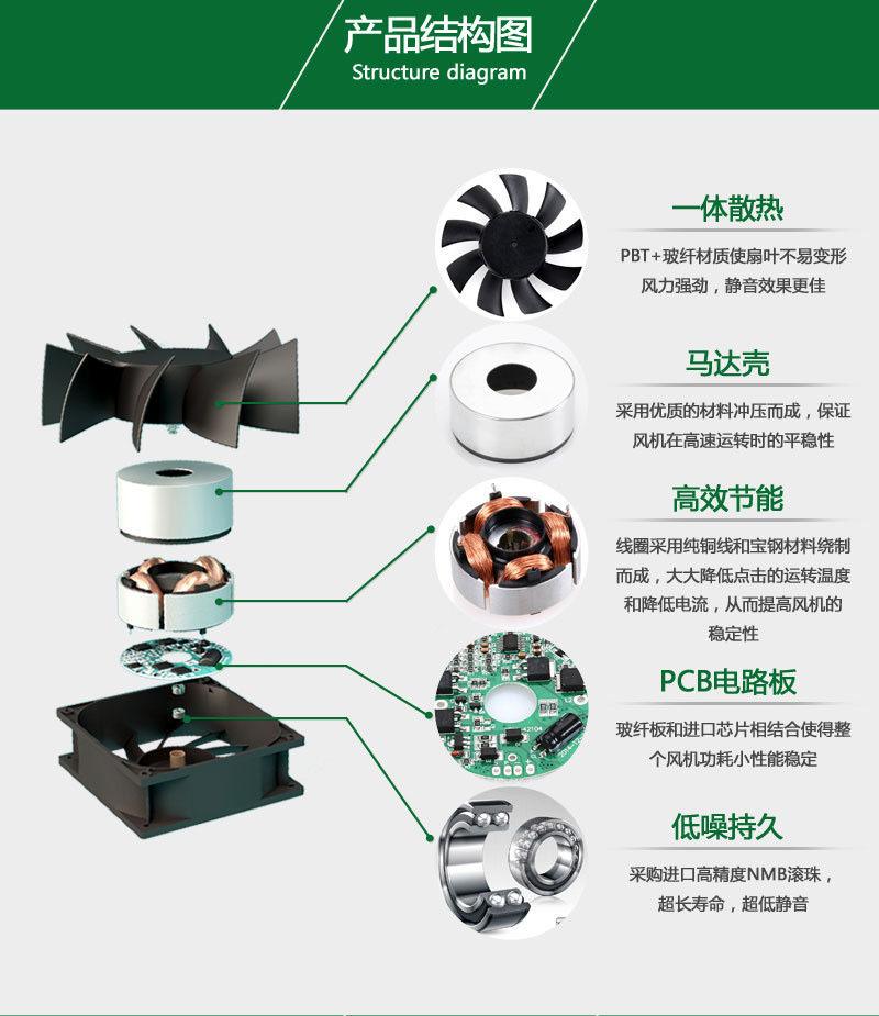 2. Los ventiladores de refrigeración CC generalmente se dividen en ventiladores de flujo axial y ventiladores centrífugos, también llamados sopladores. Los voltajes de los ventiladores (3.7V5V, 9V, 12V, 24V, 36V, 48V, 60V, etc.) se pueden fabricar según los requisitos del cliente. También se pueden fabricar ventiladores con funciones especiales, como a prueba de humedad, a prueba de agua (dividido en IP55, IP56, IP68), a prueba de polvo, alarma de parada RD, medición de onda de señal FG, modulación de ancho de pulso PWM, etc.