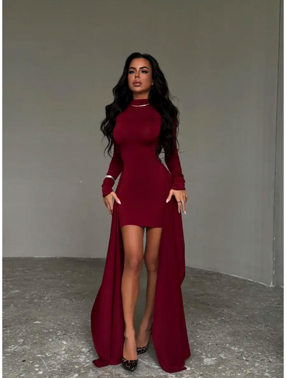 Suministro de vestido de mujer de comercio exterior europeo y americano nuevo vestido de cinta sin espalda de manga larga sexy corte ajustado transfronterizo