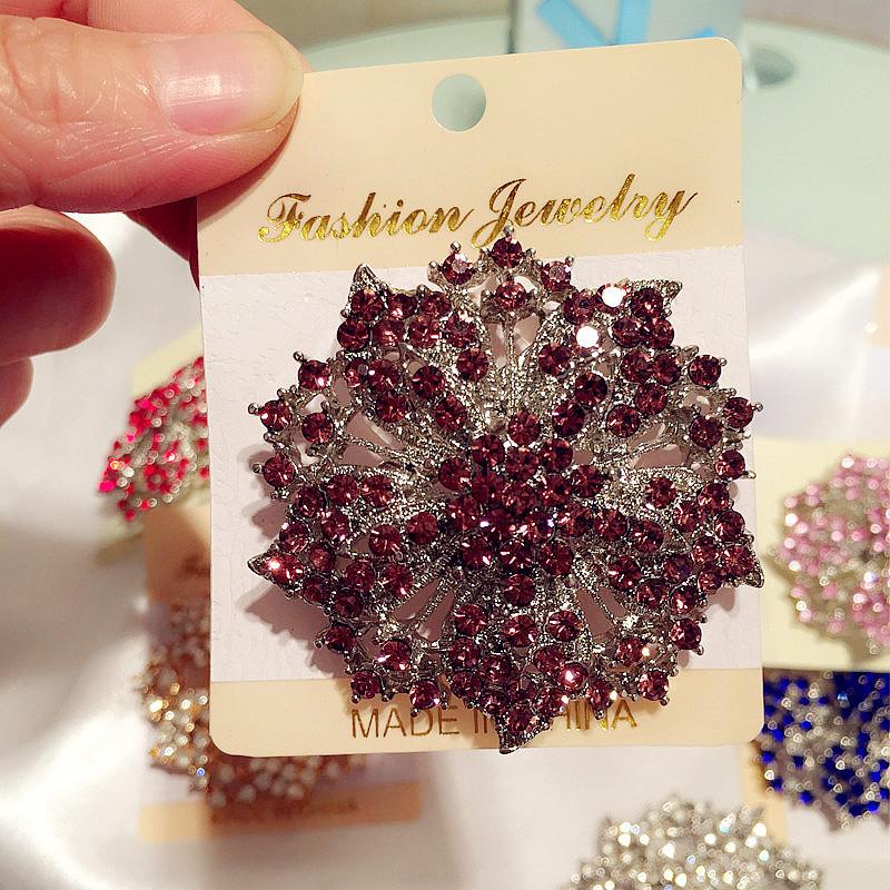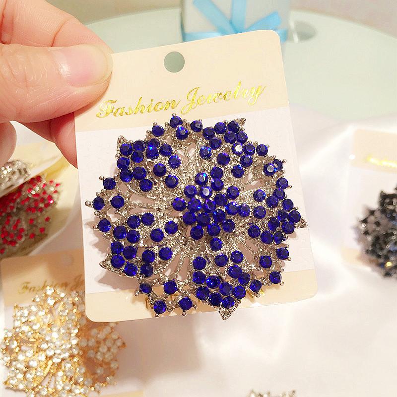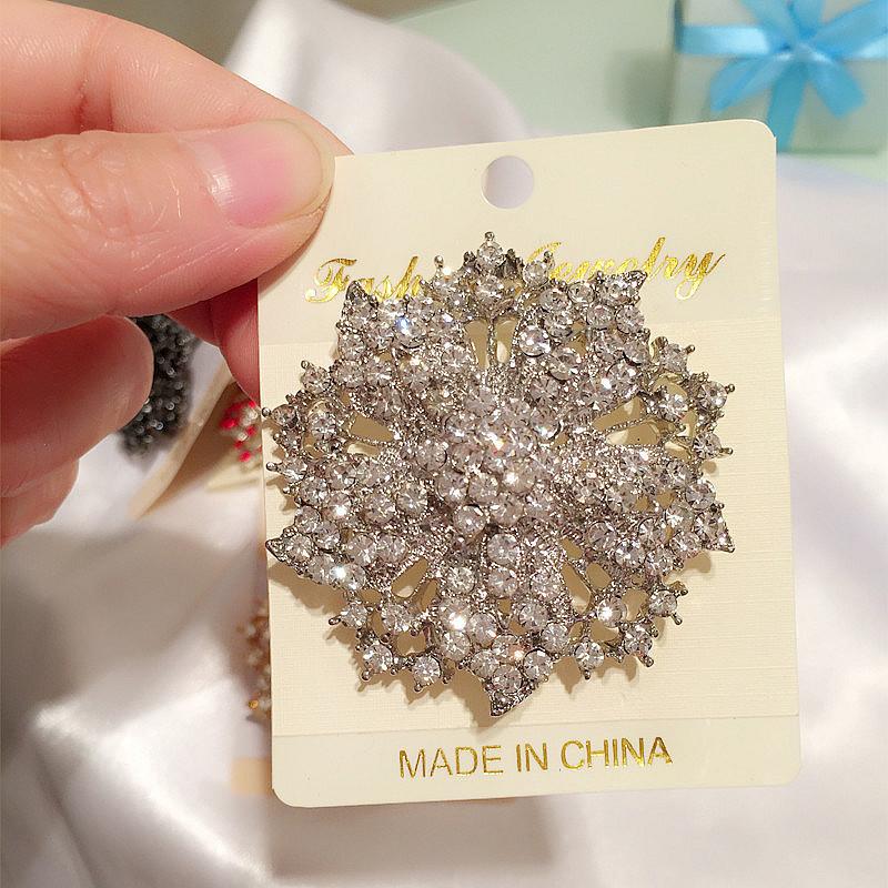 Broche con colgante de flor de estilo europeo y americano para mujer, accesorio de aleación de diamantes de imitación, con ramillete hueco, transfronterizo, venta al por mayor