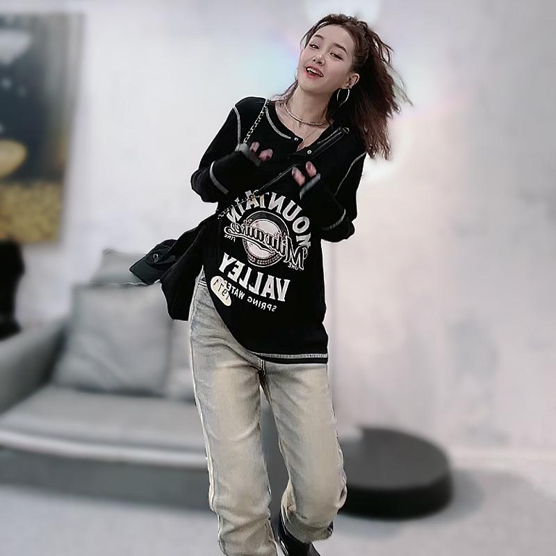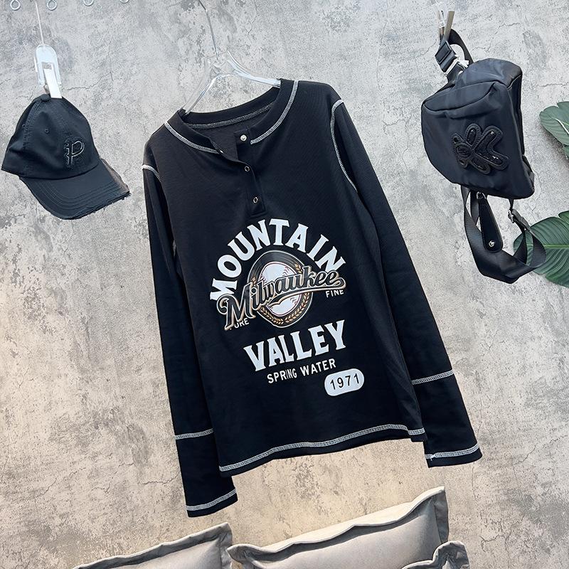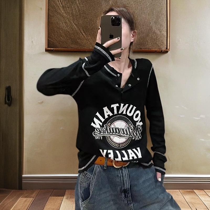 Camiseta de manga larga de estación europea para mujer, camiseta básica con letras, nueva moda europea de primavera y otoño 2025