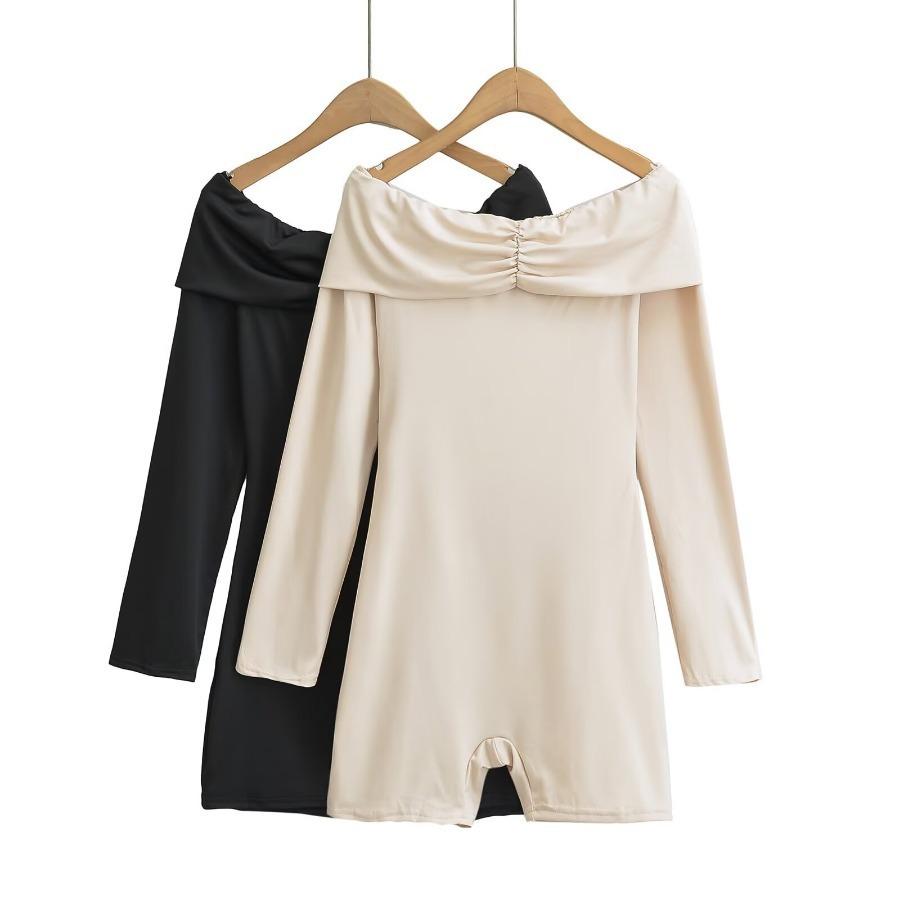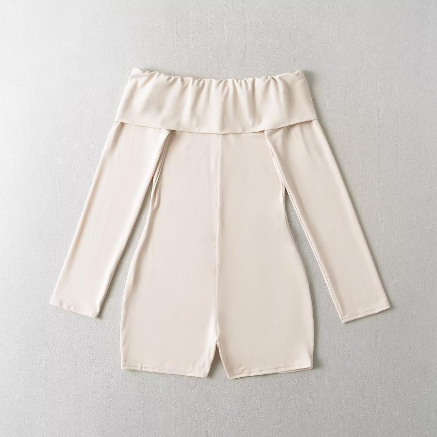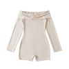 Mono de manga larga con hombros descubiertos de tendencia personalizada para mujer, elástico, ajustado, de manga larga, color sólido, venta al por mayor