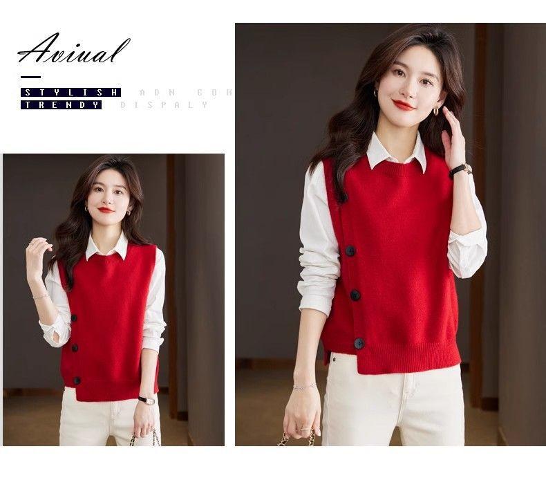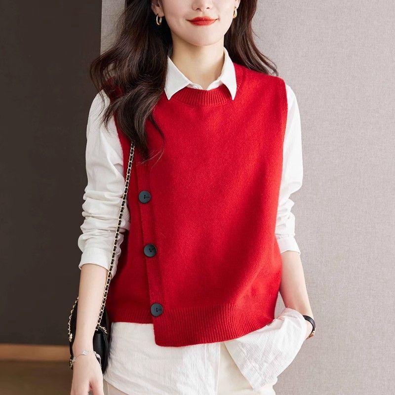 Chaleco de punto para mujer, suéter de primavera y otoño, moda de moda, fácil de combinar, 2024