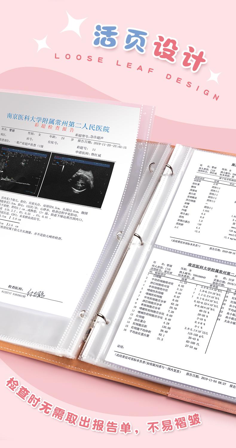 Manual de archivo de ultrasonido B para mujeres embarazadas, este formulario de informe de libro de almacenamiento de prueba de embarazo, paquete de prueba de nacimiento de la madre embarazada, registro de información, bolsa de almacenamiento, texto