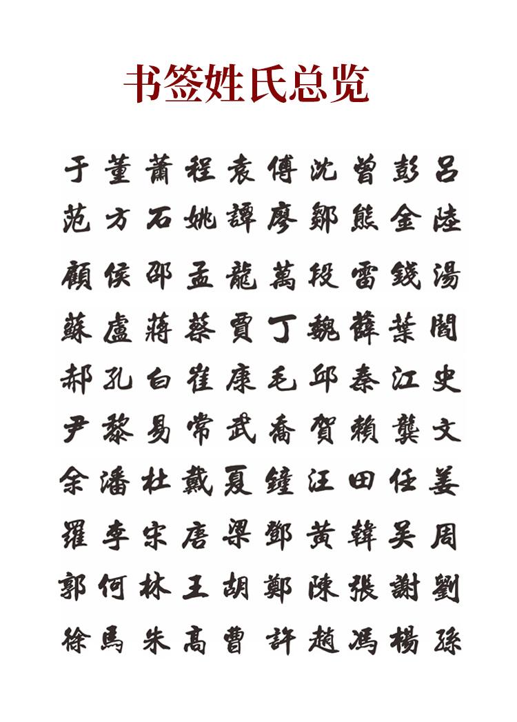 Cao's surname, Chen's surname, Hu surname, Huang surname, Li's surname, Lin's surname, Liu's surname, Song sur...