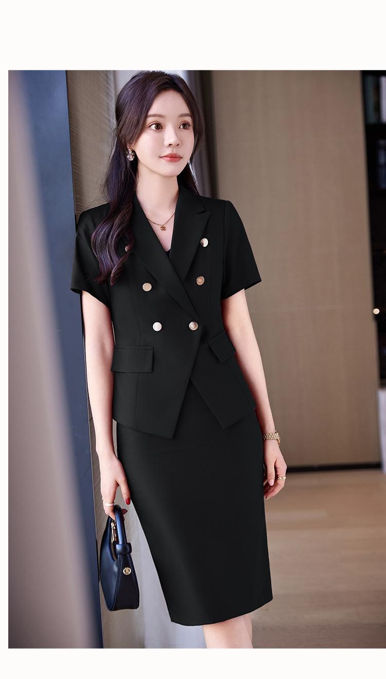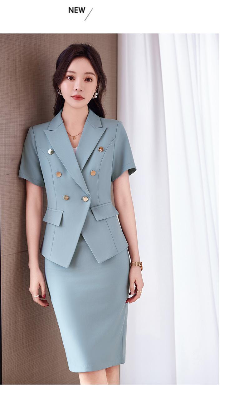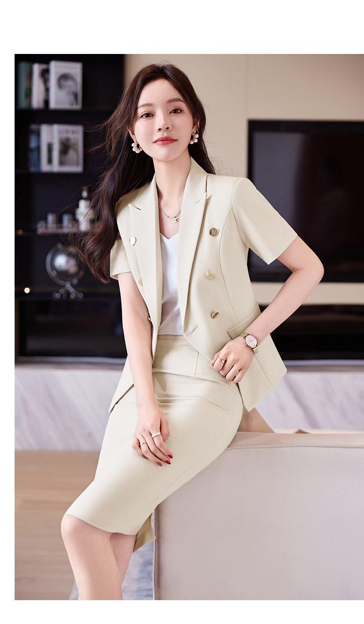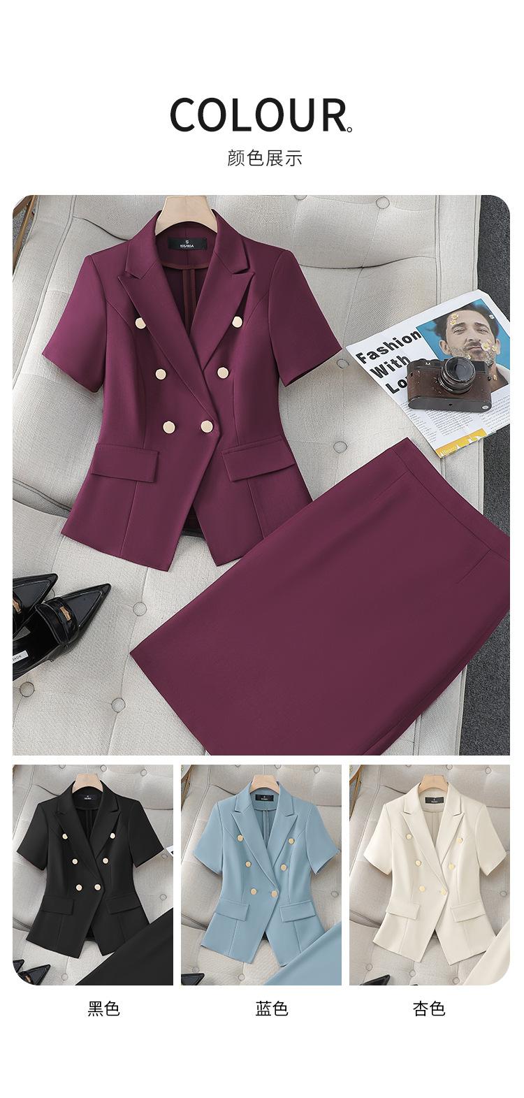 Traje de oficina de moda de verano 2024 para mujer, top deportivo de manga corta con doble botonadura, falda ajustada elegante