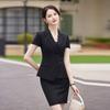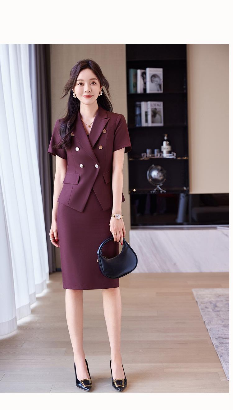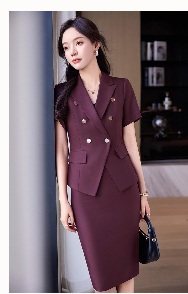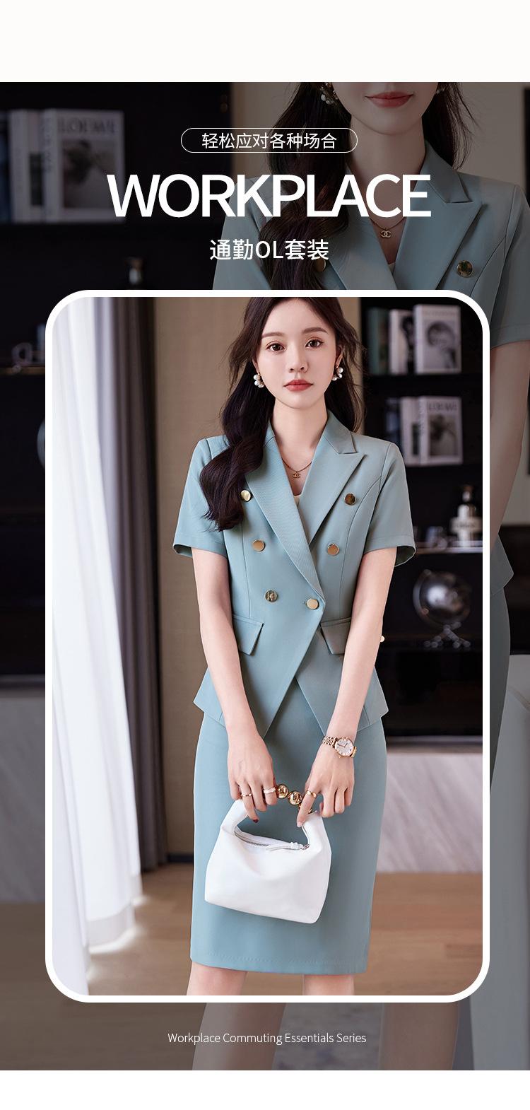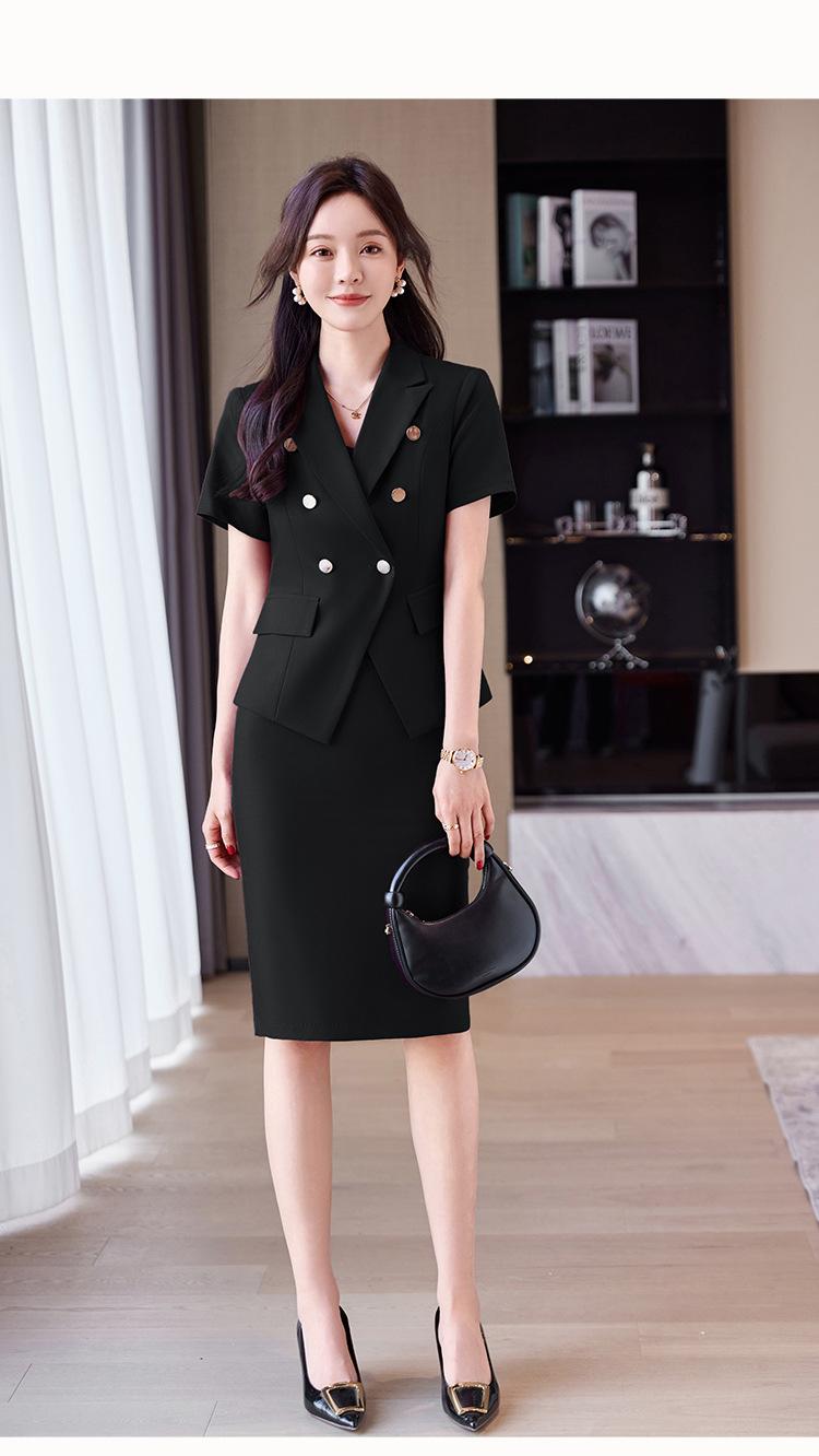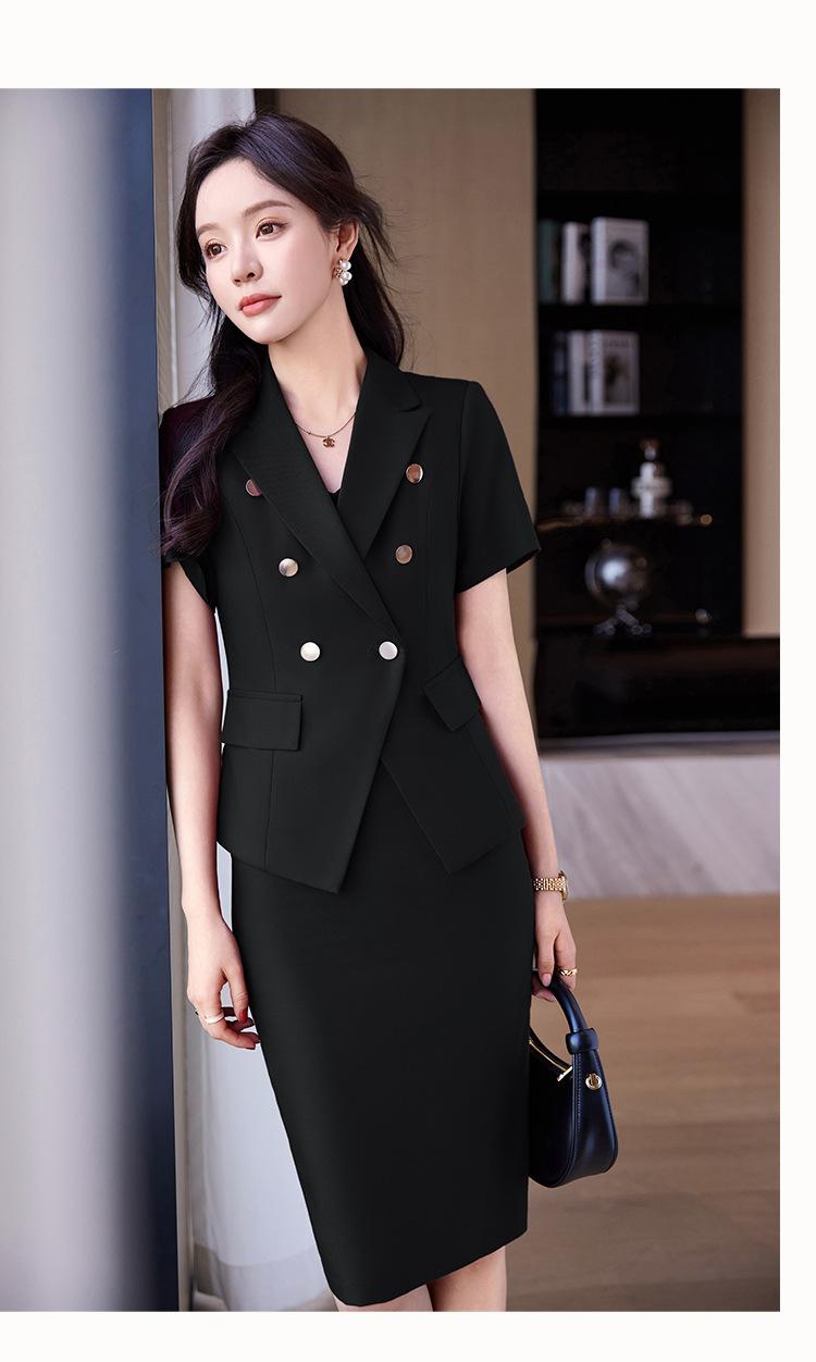 Traje de oficina de moda de verano 2024 para mujer, top deportivo de manga corta con doble botonadura, falda ajustada elegante