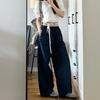 Estilo Chica Caliente Diseño Nicho Combinación de Colores Cintura Pantalones Pierna Ancha para Mujer Otoño 2024 Nuevos Pantalones Casuales Holgados