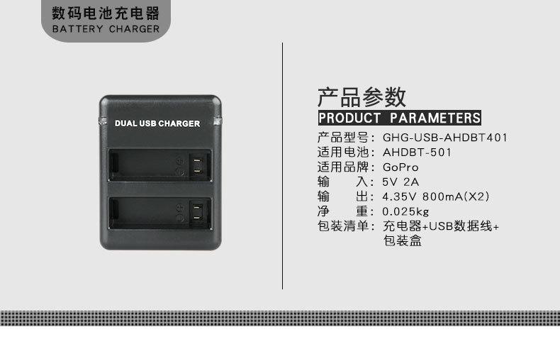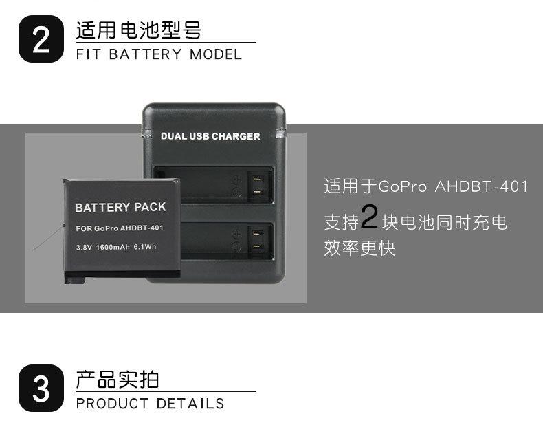 Ventas directas de fábrica Cargador dual 401 para batería GoPro AHDBT-401 Cámara Hero 4