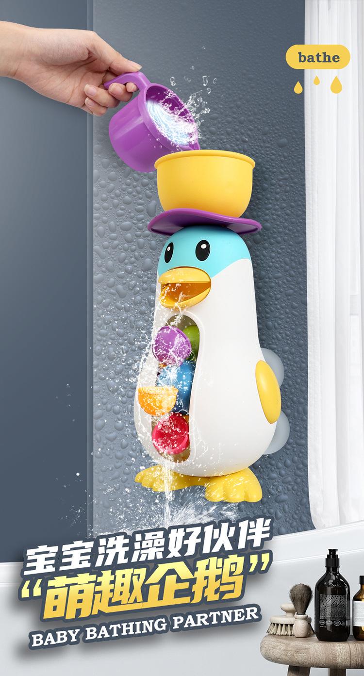 Juguetes de baño para bebés transfronterizos, nuevos, lindos y divertidos, estilo pingüino, transferencia de música, baño, baño, niños, caja de regalo de agua al por mayor