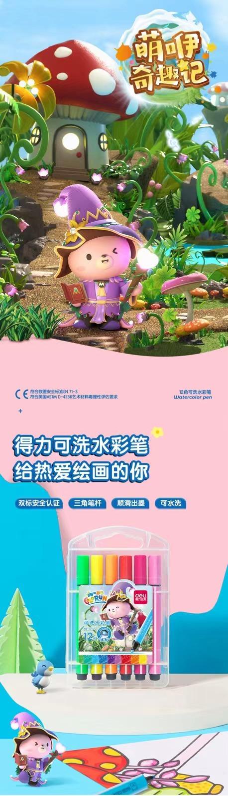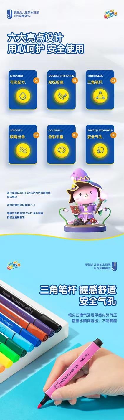 Deli Papelería Set de Plumas de Acuarela Lavables Pluma para Pintar para Niños Pluma de Arte Graffiti Cuerpo Triangular Pluma de Color Pincel para Pintar
