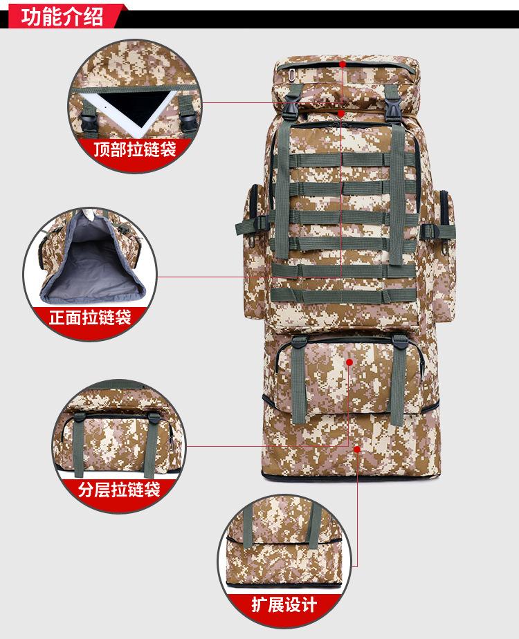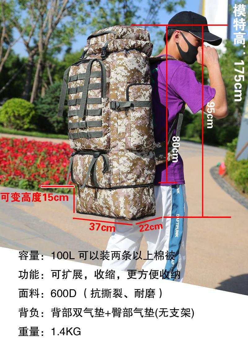 Mochila de Viaje de Gran Capacidad 100L para Hombre para Viajes al Aire Libre de Larga Distancia Mochila Camuflaje Retráctil Transfronteriza