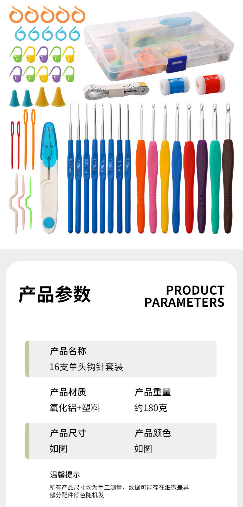 Accesorios de costura de crochet de 53 piezas transfronterizas, 16 tamaños, traje de crochet mágico, suéter, herramientas de tejido de crochet