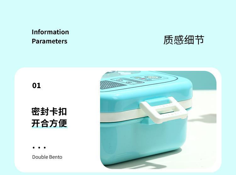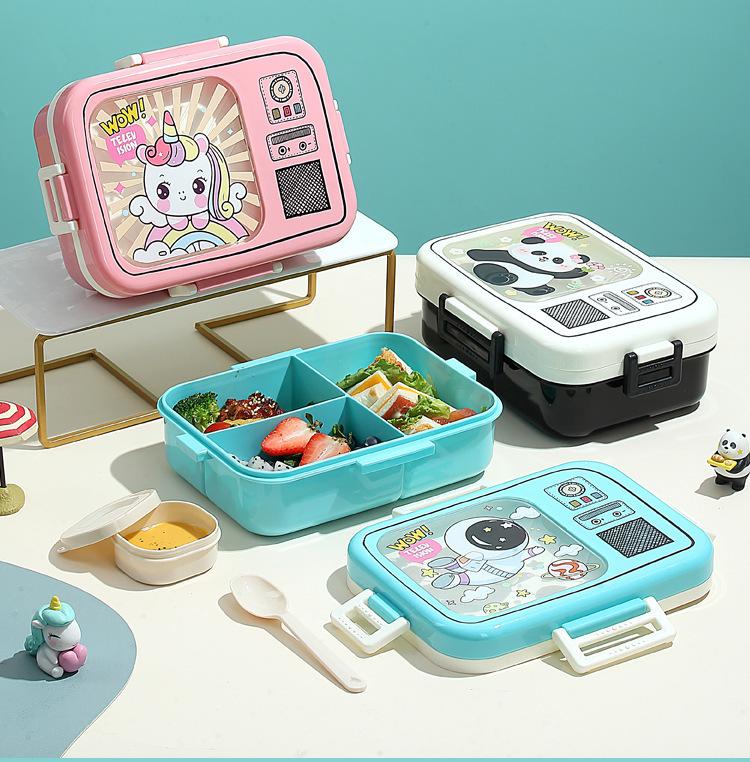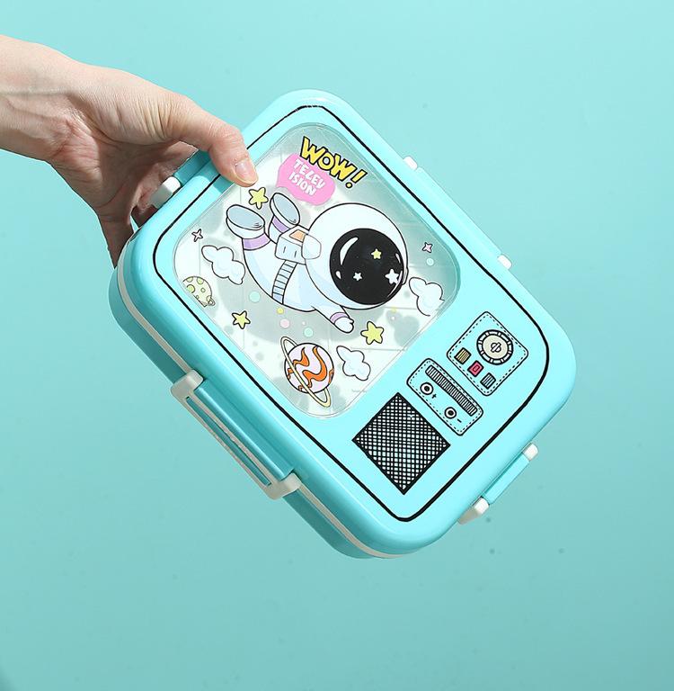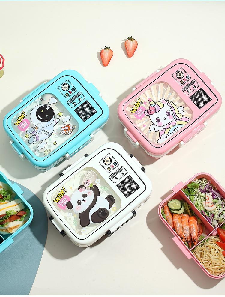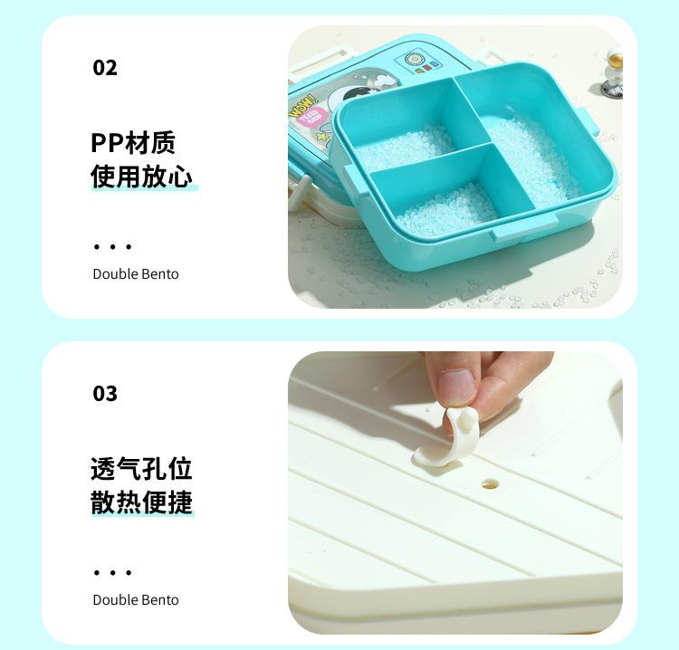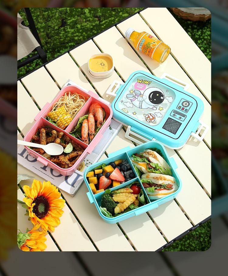 Lonchera vintage de plástico PP para verano, lonchera especial de doble capa con dibujos animados, lonchera sellada para calentar en microondas para niños