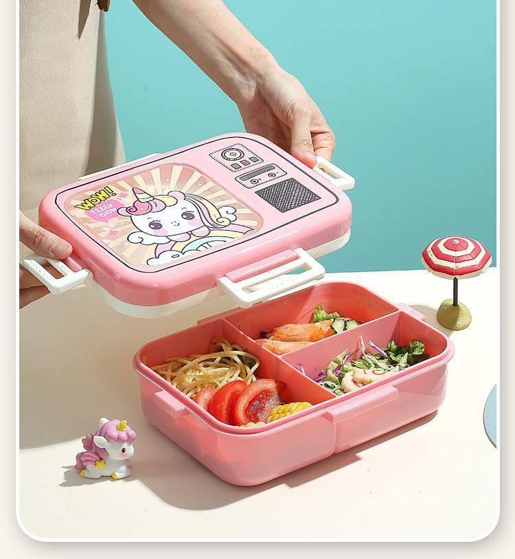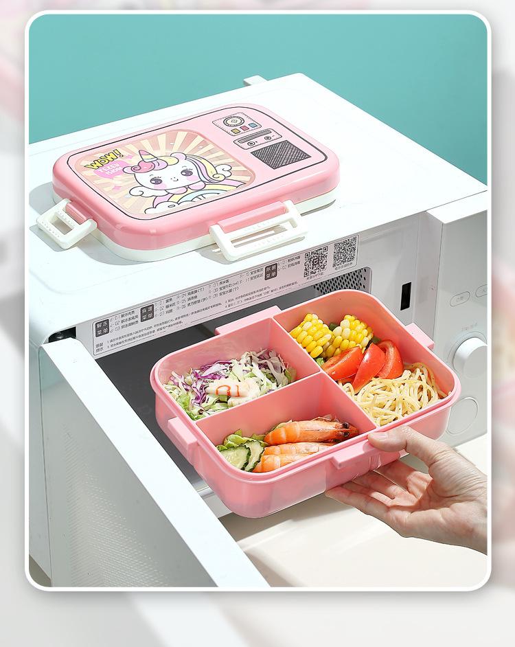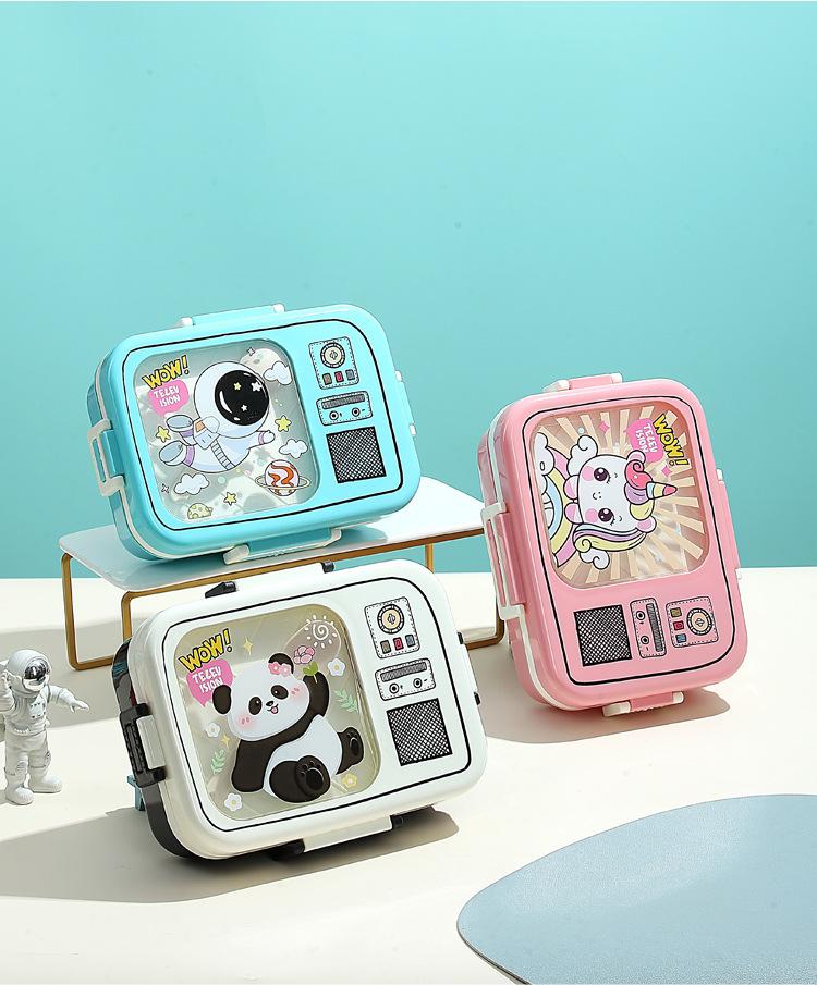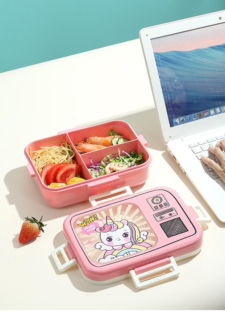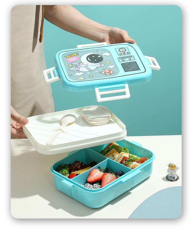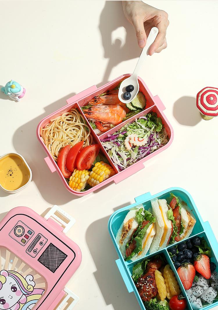 Lonchera vintage de plástico PP para verano, lonchera especial de doble capa con dibujos animados, lonchera sellada para calentar en microondas para niños