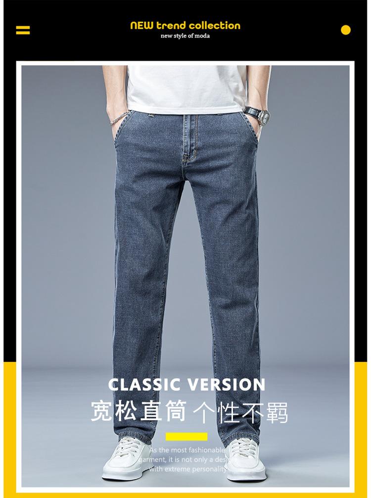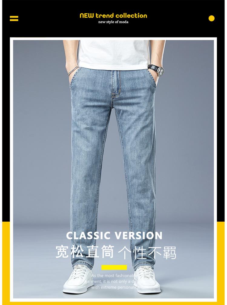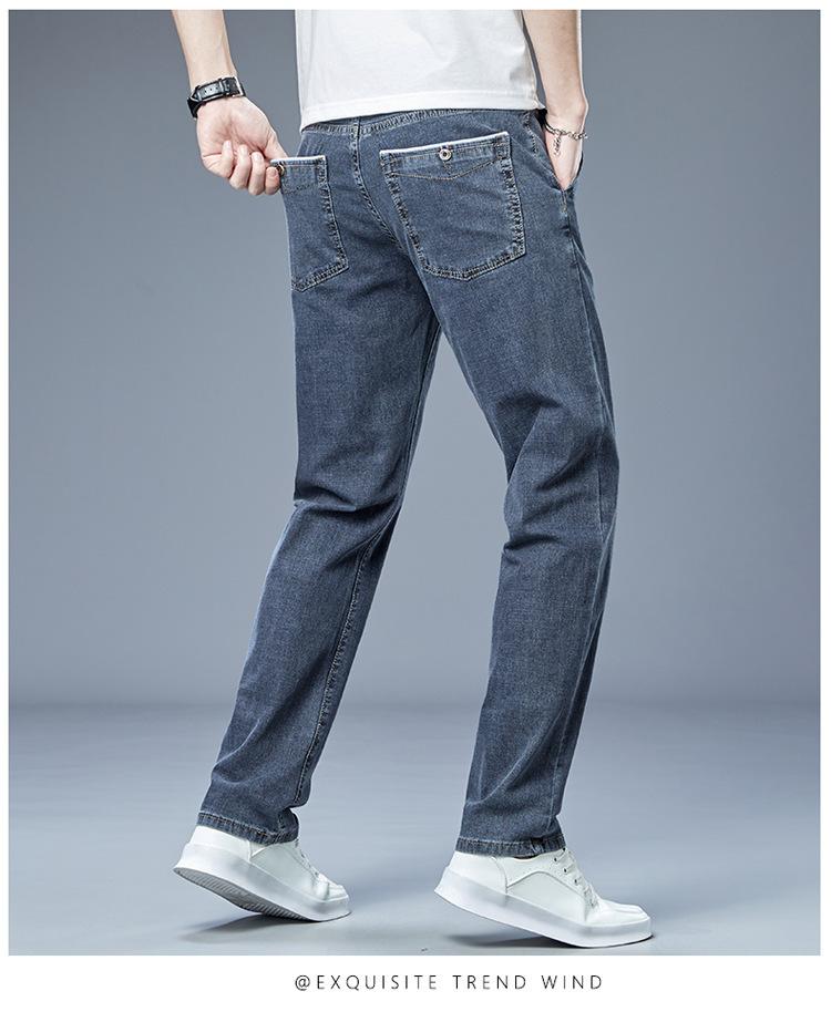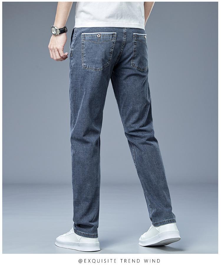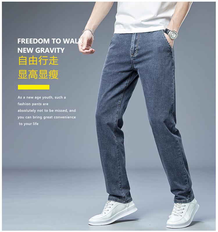 Pantalones vaqueros de verano para hombre, finos, casuales, elásticos, verano 2023, nuevos pantalones largos rectos sueltos de alta gama para hombre