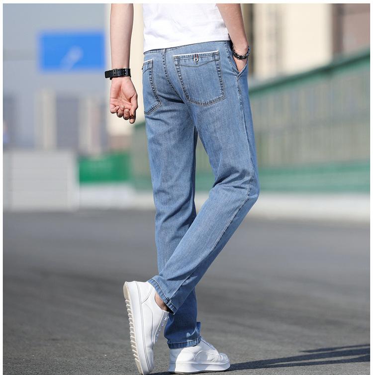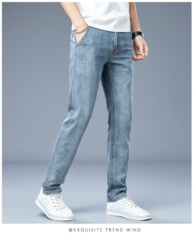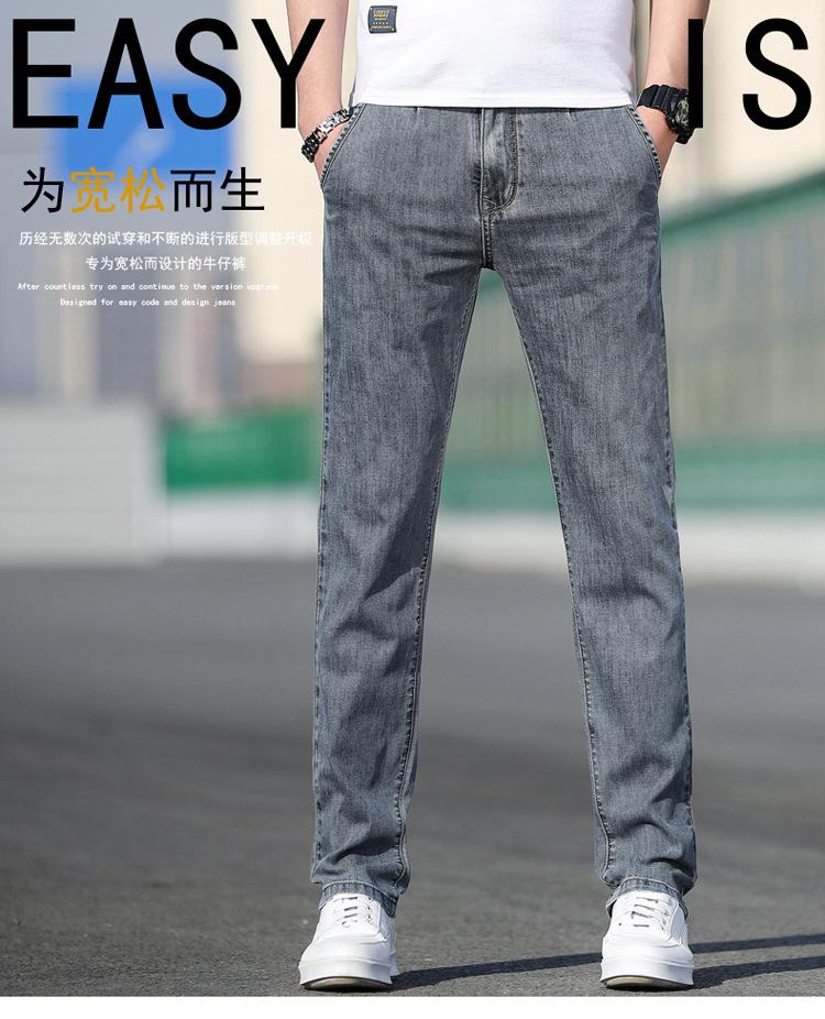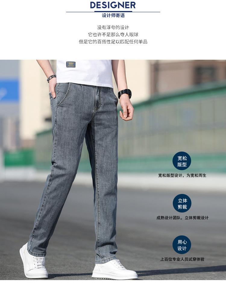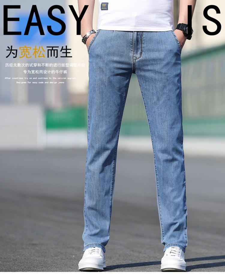 Pantalones vaqueros de verano para hombre, finos, casuales, elásticos, verano 2023, nuevos pantalones largos rectos sueltos de alta gama para hombre
