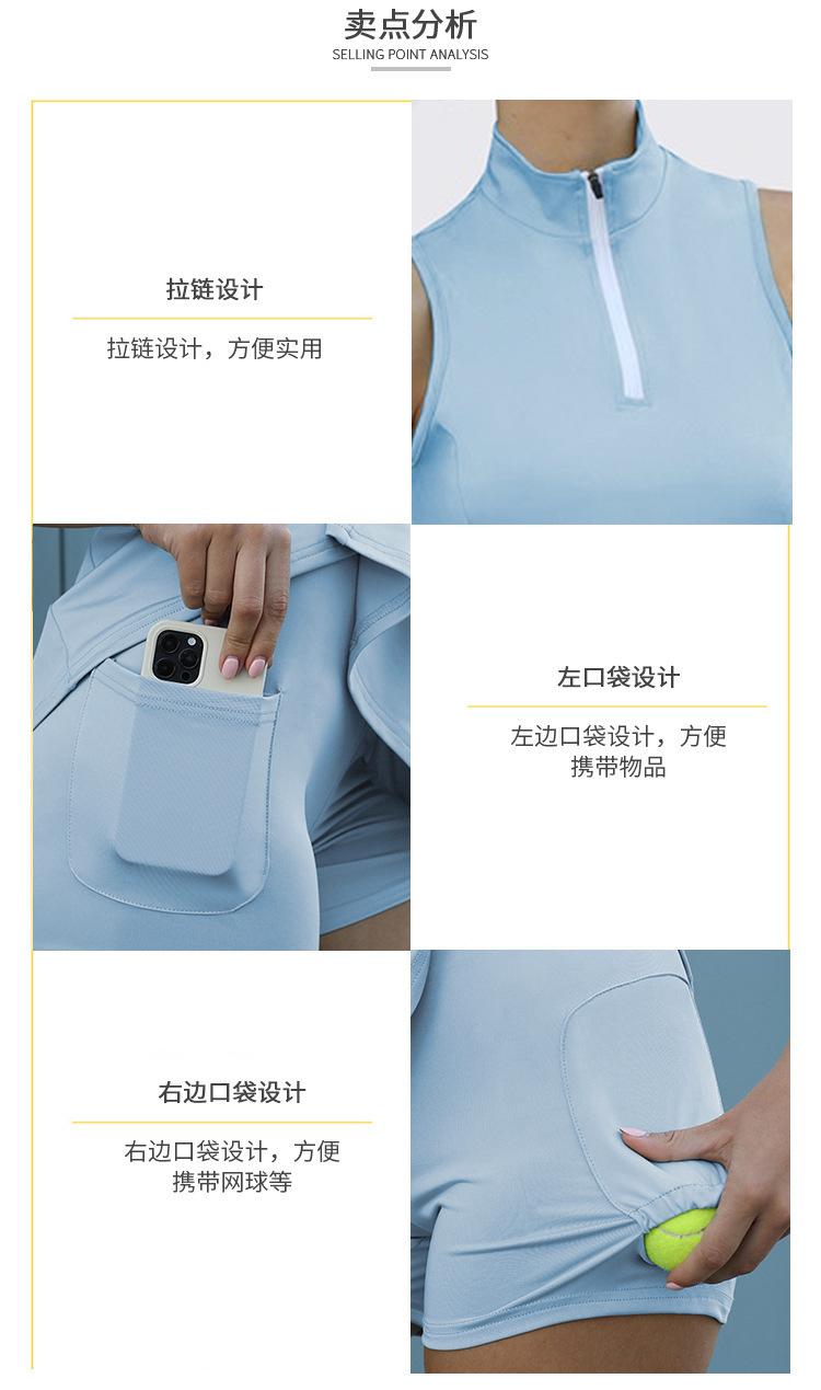 Falda de Tenis Yoga Multicolor Nude Elástica Secado Rápido Golf Falda Deportiva Bolsillo Antiexposición Fitness Set de Dos Piezas