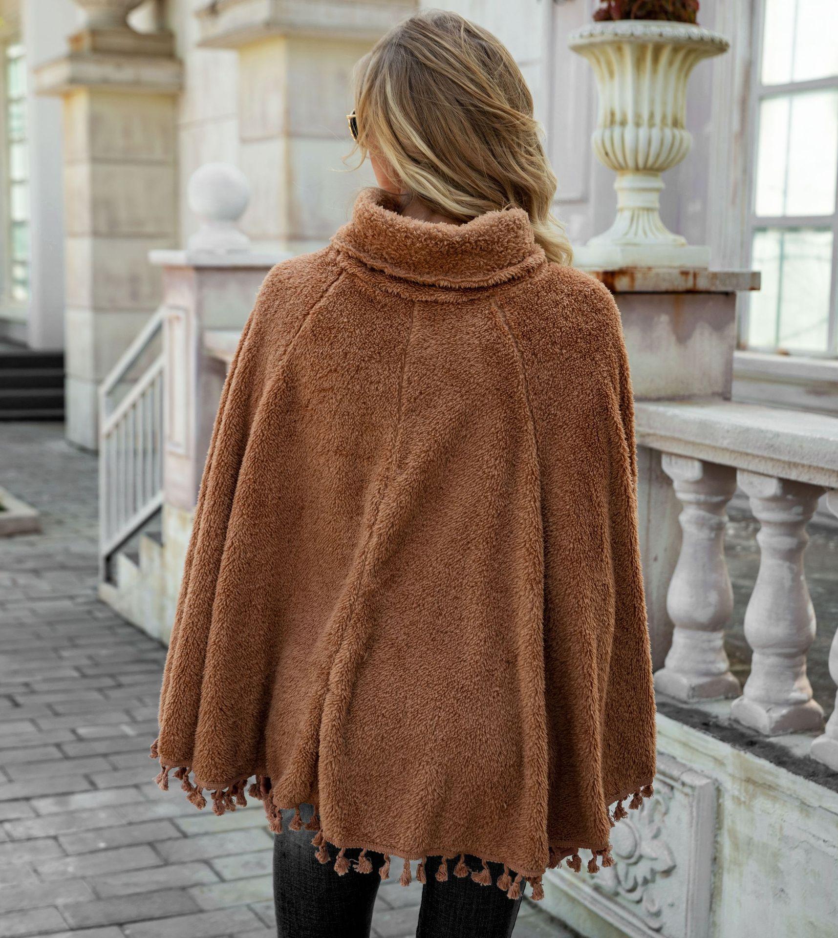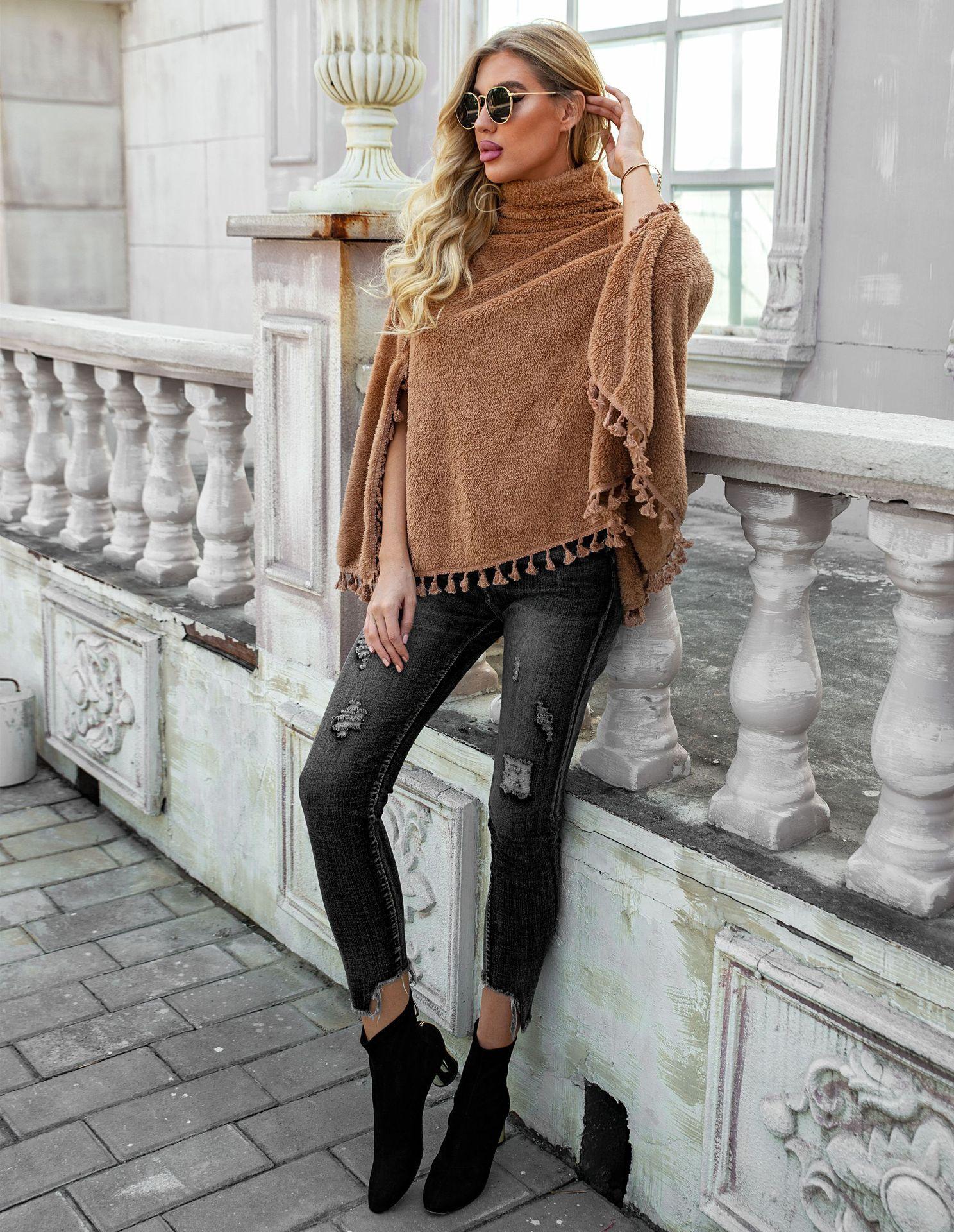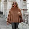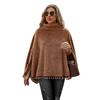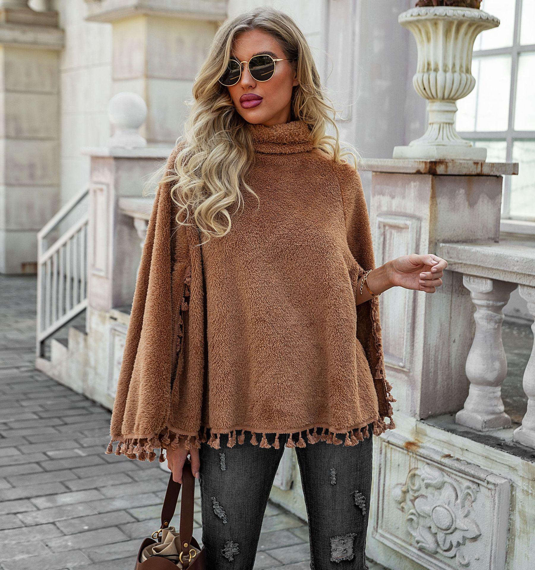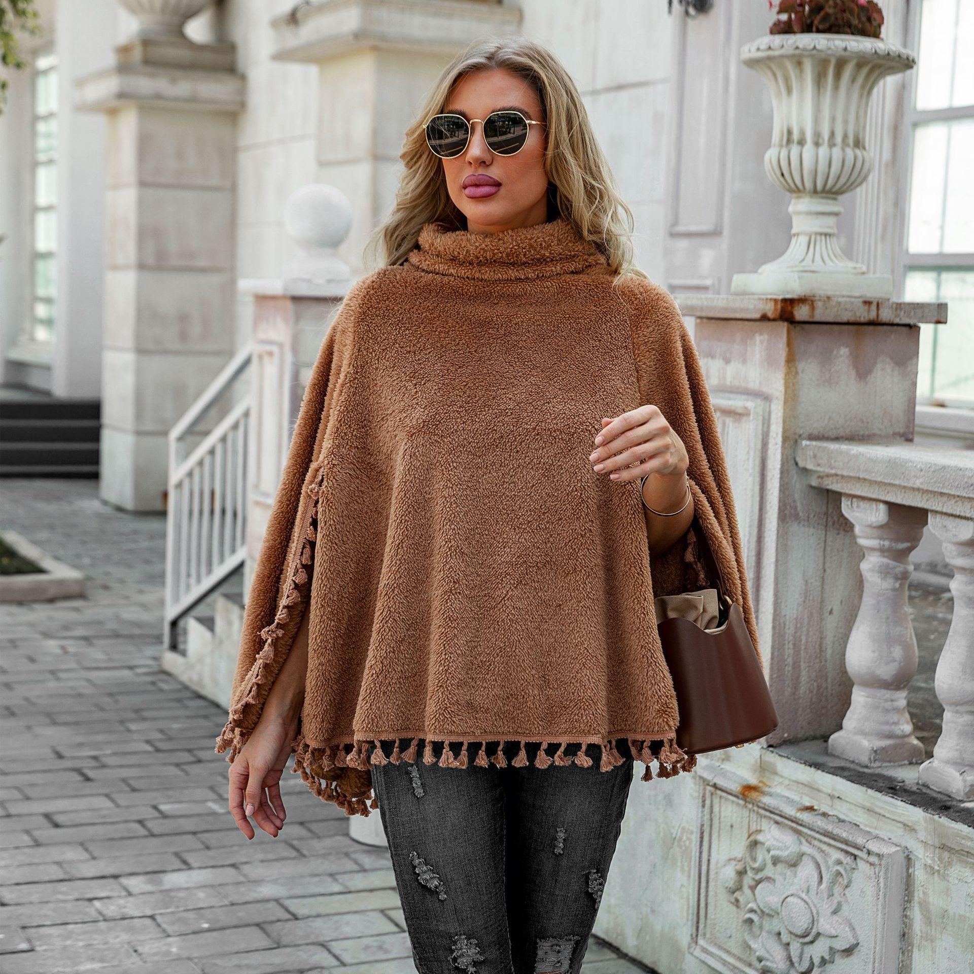 Amazon comercio exterior ropa nueva europea y americana para mujer color sólido ajustada moda cuello alto dobladillo con borlas capa manga larga abrigo para mujer