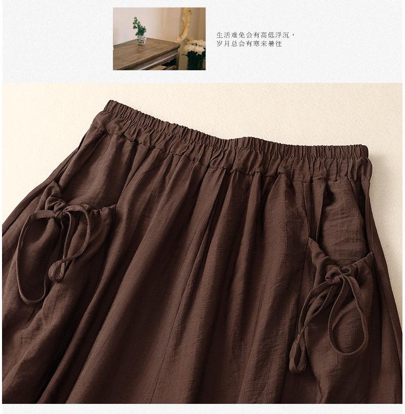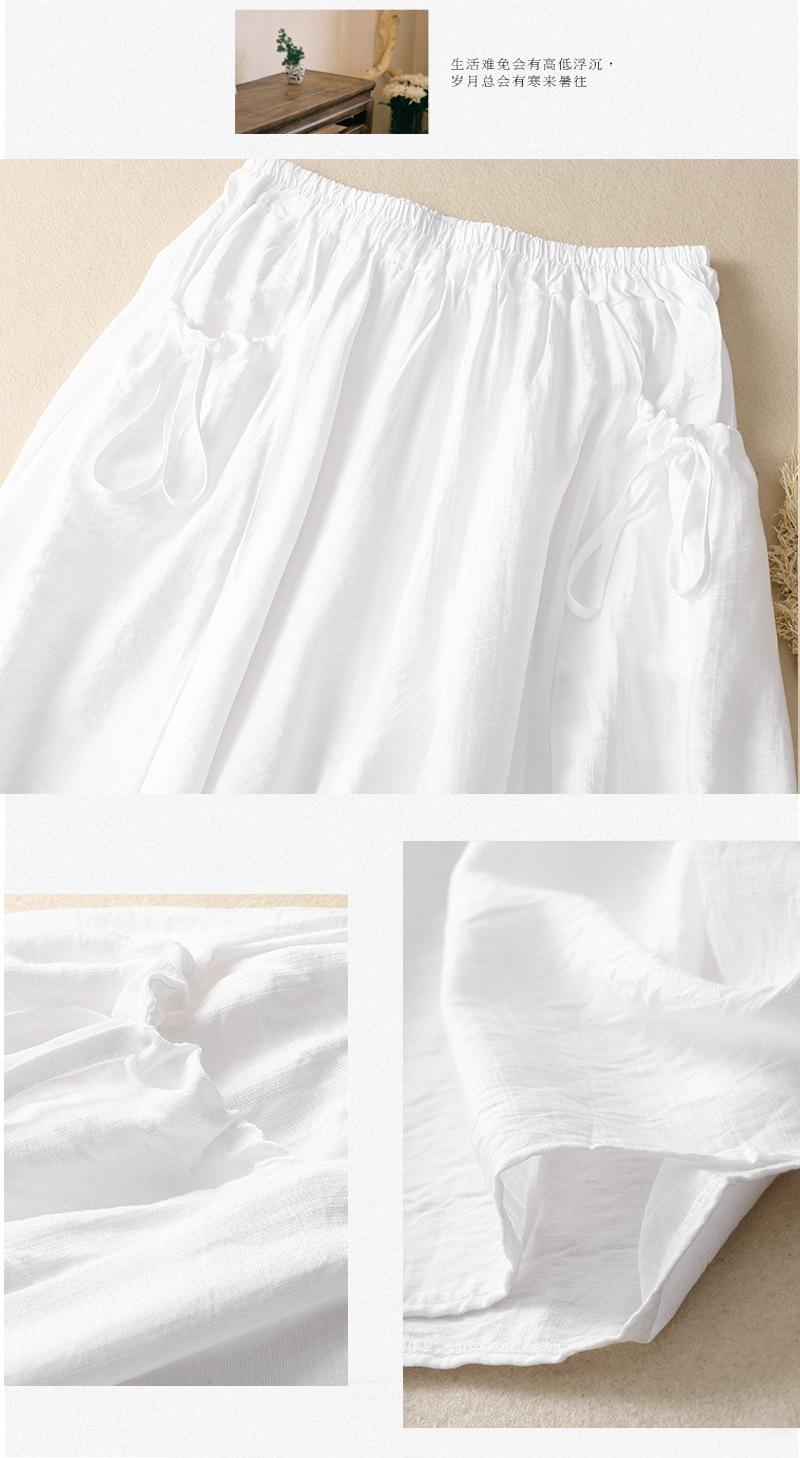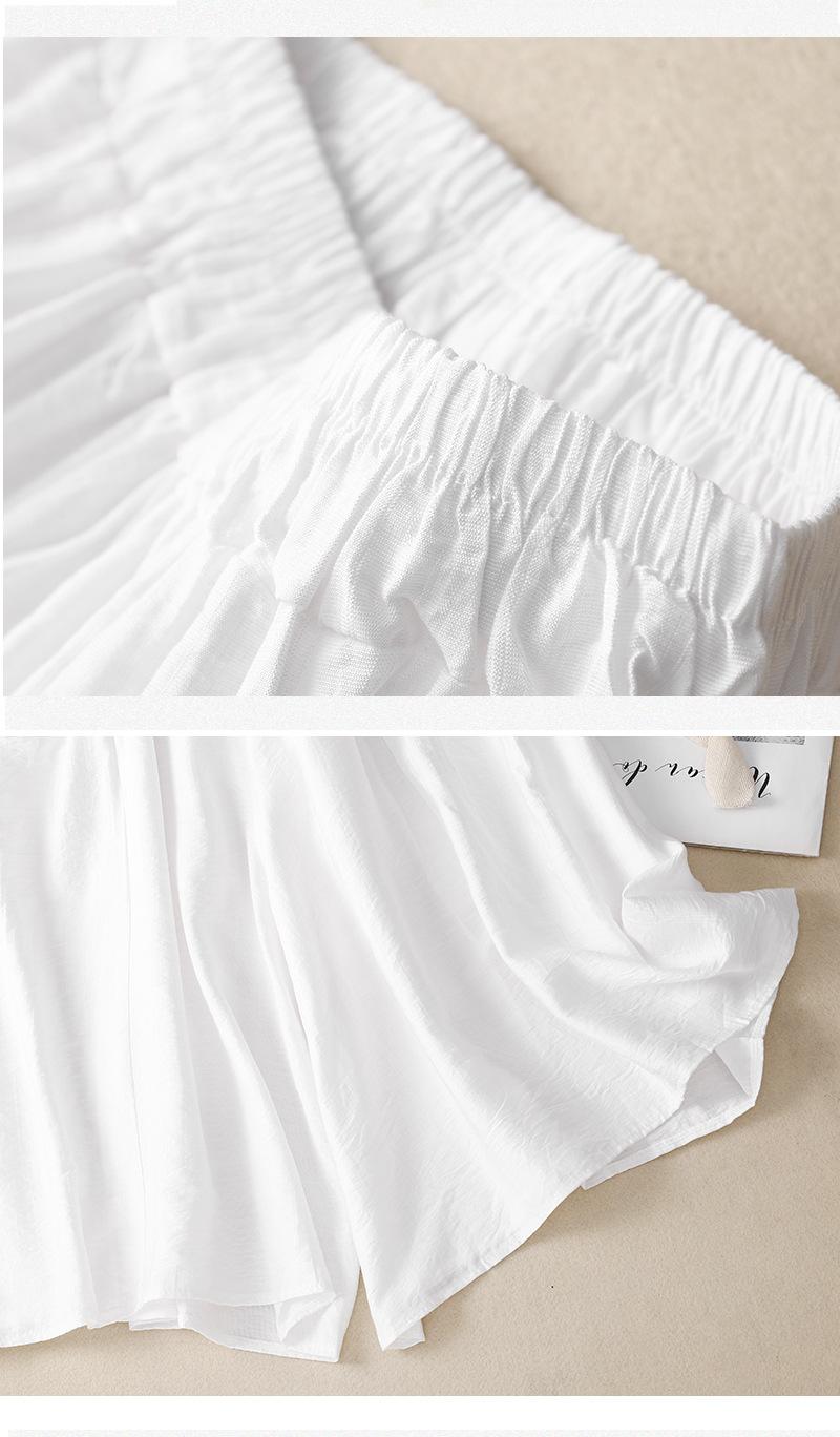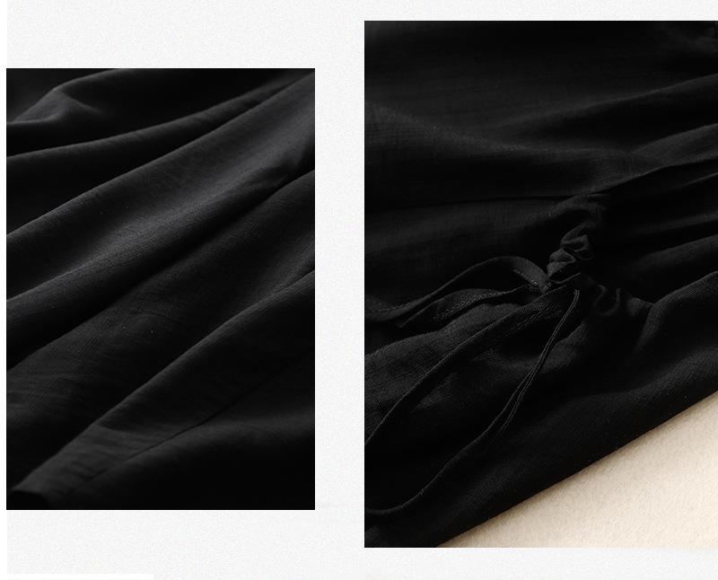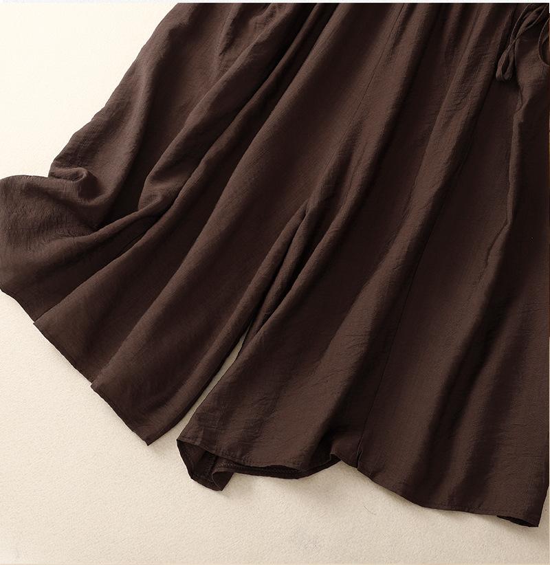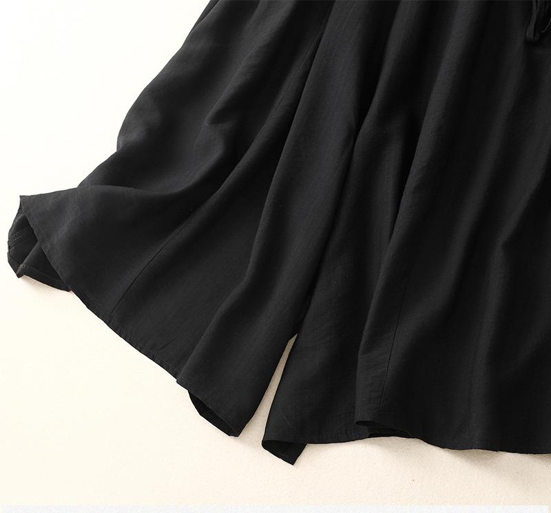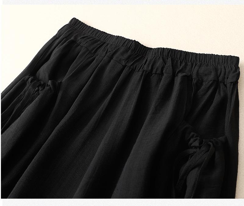 Foto real 2024 verano nuevo retro suelto adelgazante color sólido algodón y lino pantalones casuales pierna ancha pantalones capri de mujer 1360#