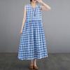 Vestido de fiesta holgado sin mangas a cuadros artísticos de verano 2024 para mujer
