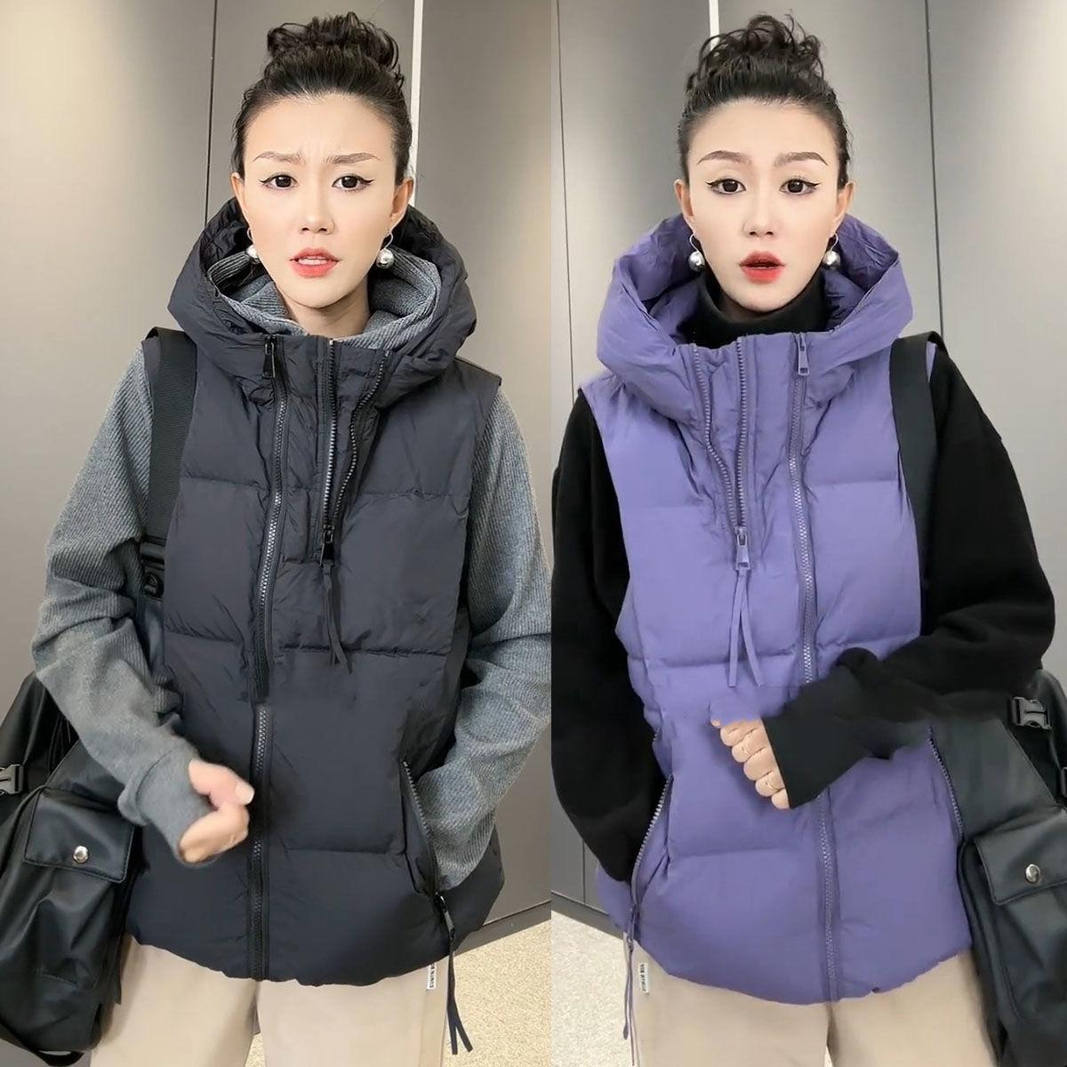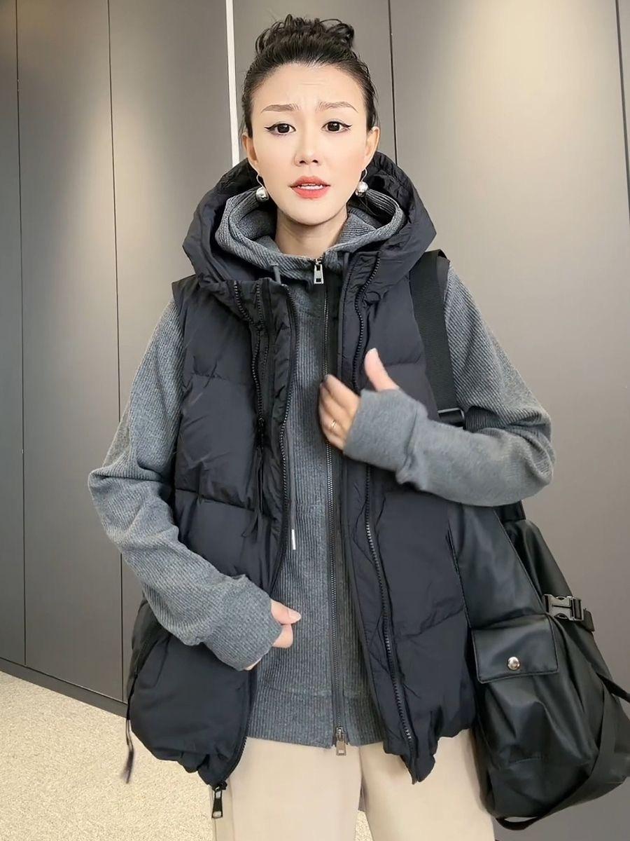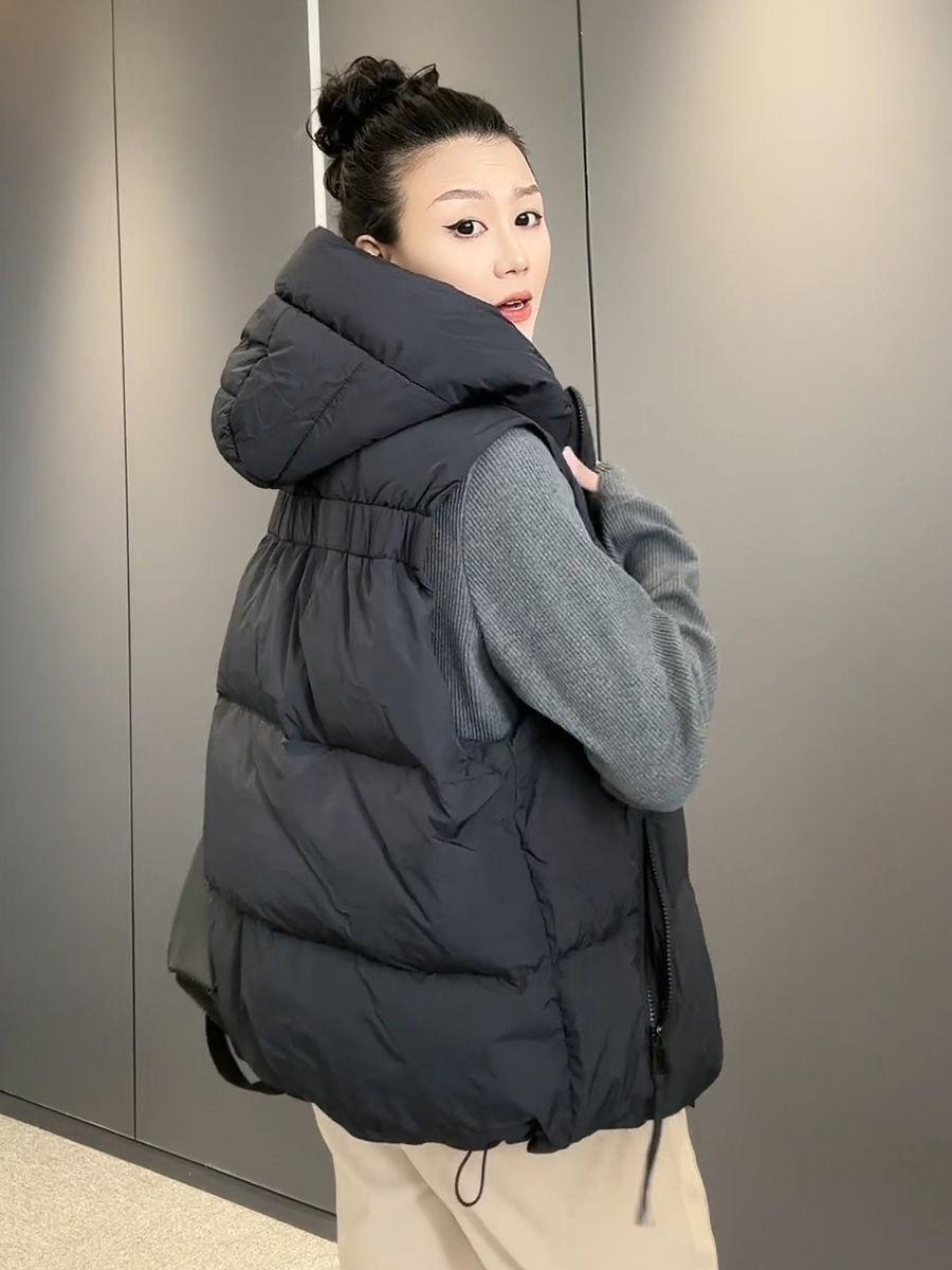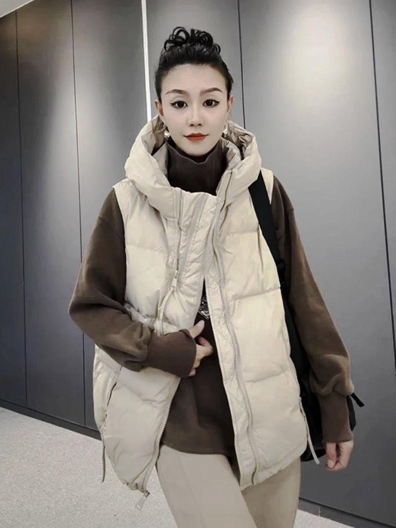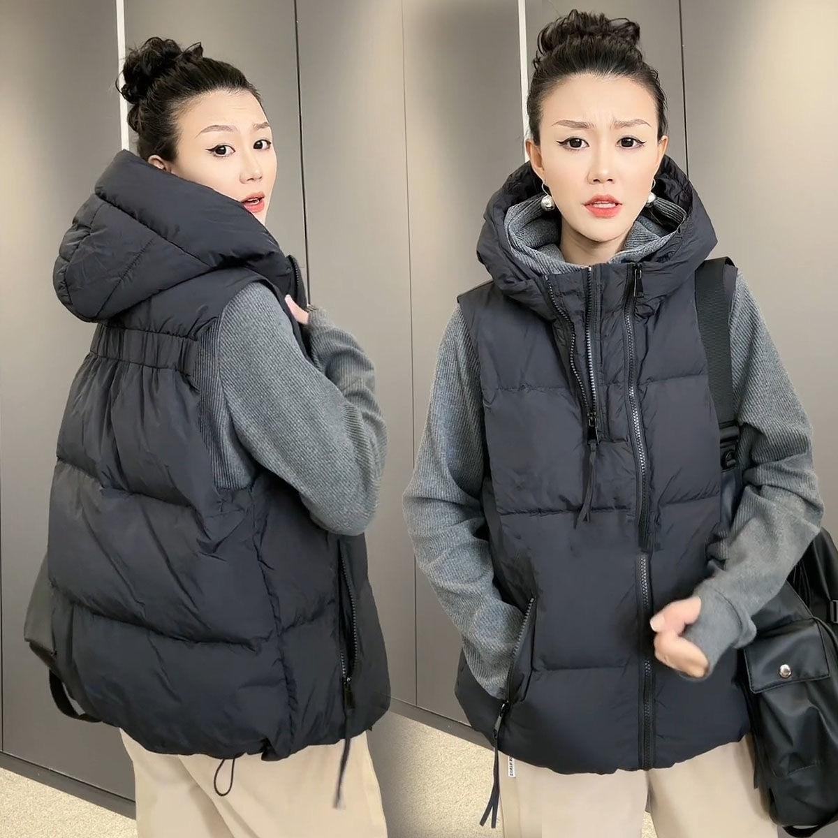 Chaqueta de algodón con capucha y doble cremallera para otoño e invierno de 2023, chaleco de plumón de algodón, chaleco informal de moda para mujer.